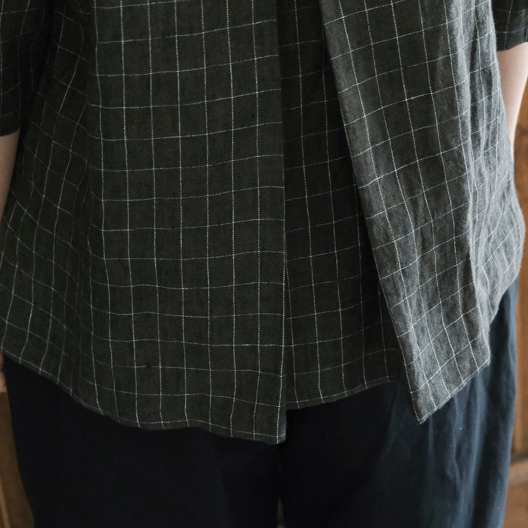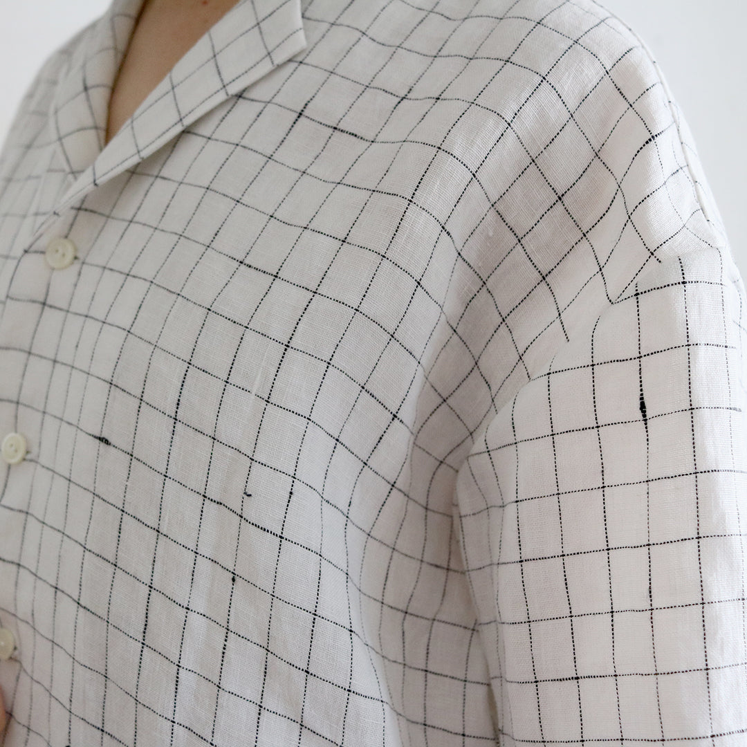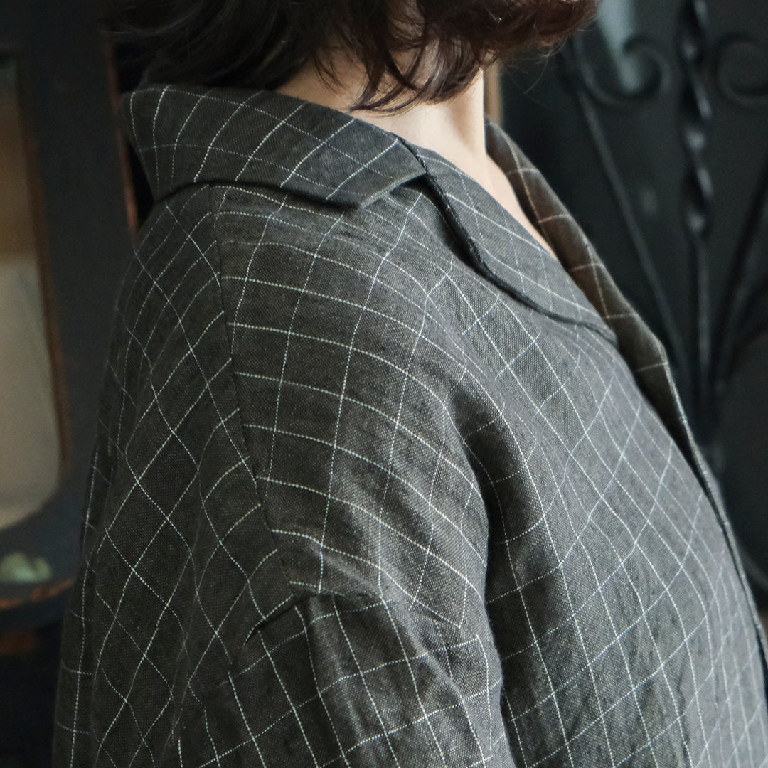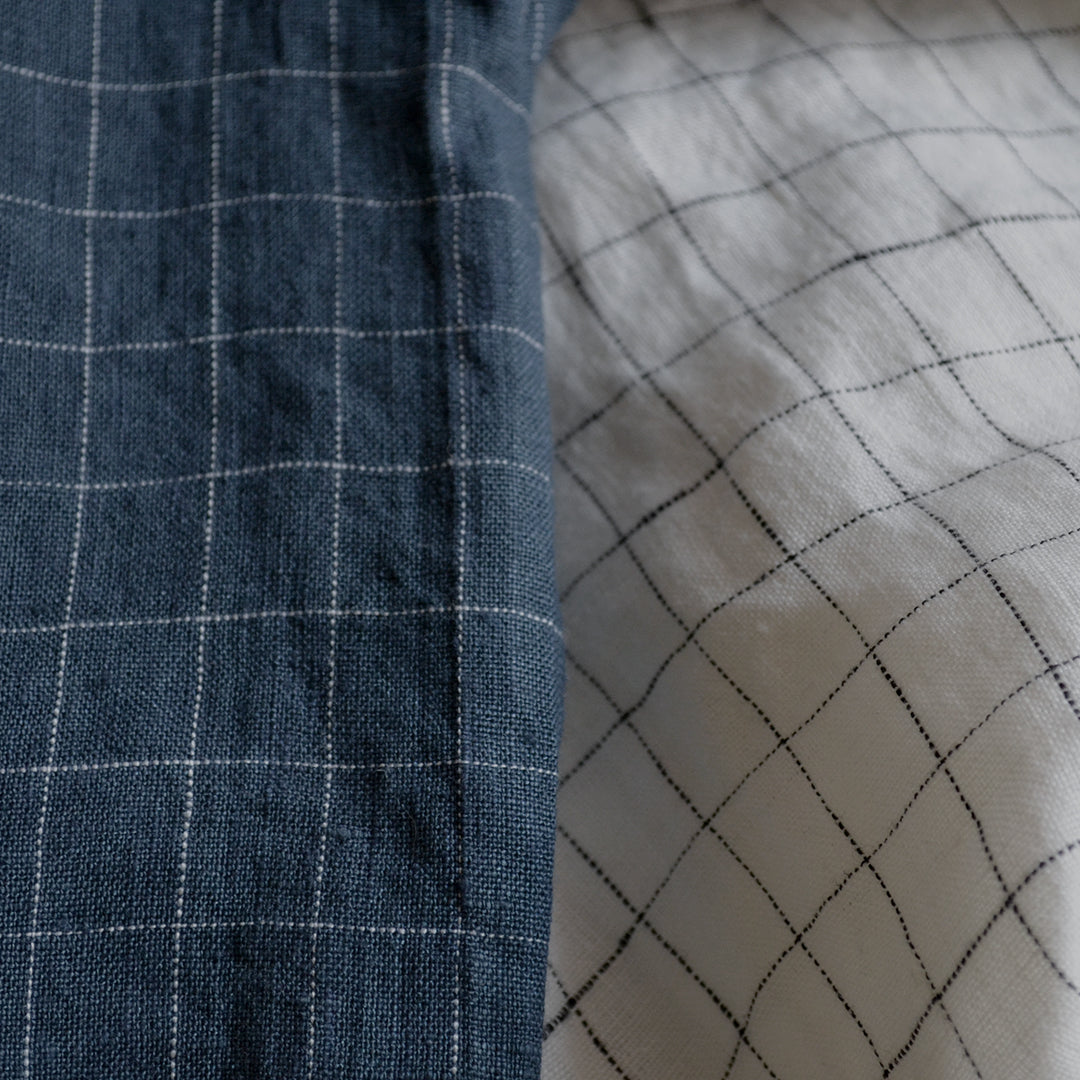 SALUÉオリジナルのリトアニアリネンに、万年筆で引いたような揺らぎのある線が美しいウィンドウチェック。大きすぎず、細かすぎないチェックは年齢を問わずどなたにも馴染む世界観です。