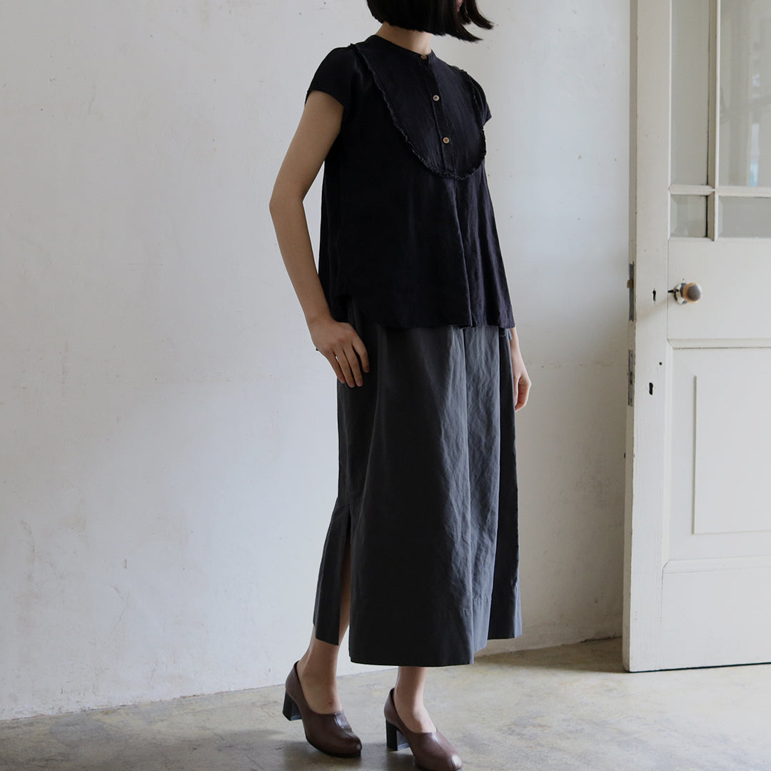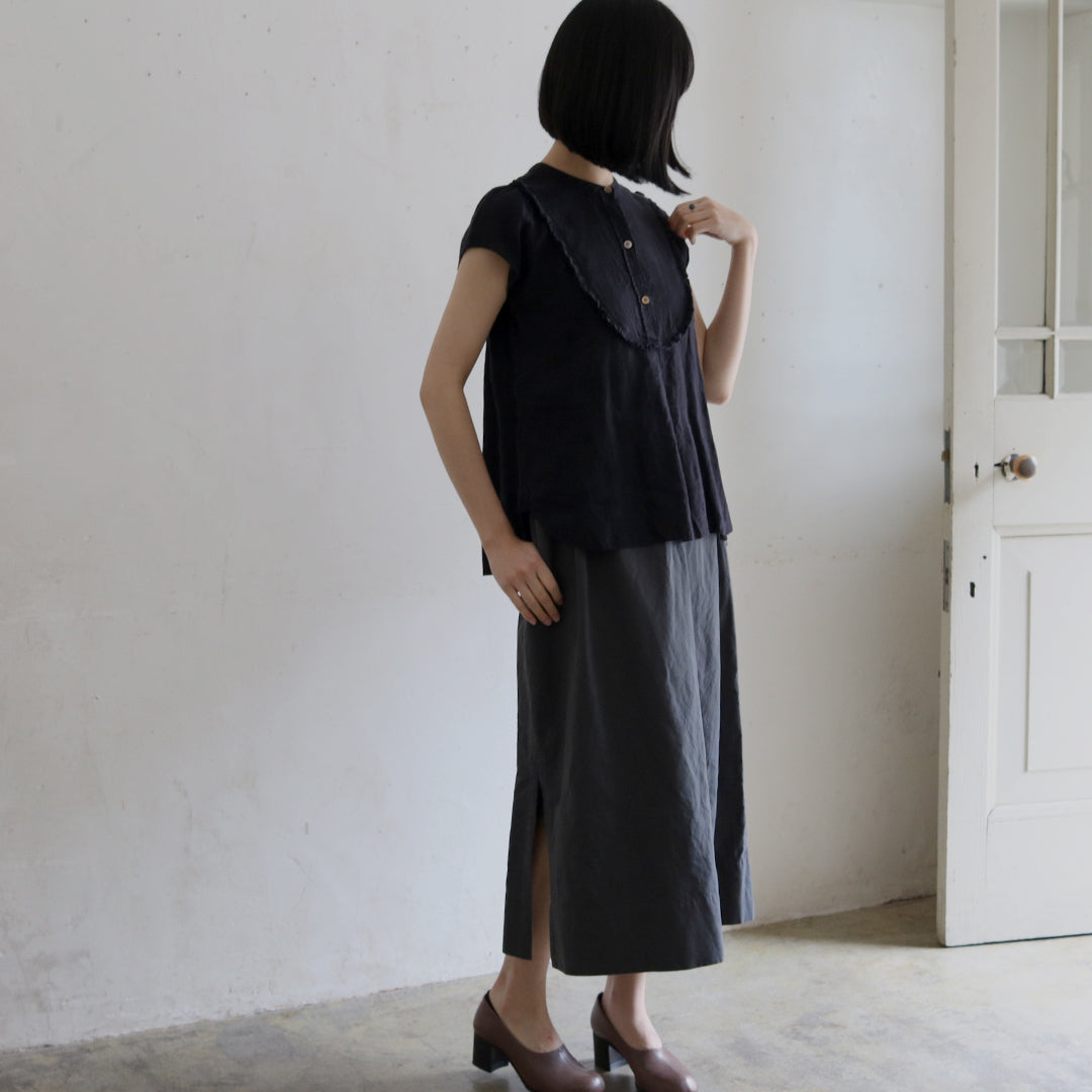 ▲インクブラック、モデル身長166cm、スカート:ワンサイドスリットロングスカート/コットンリネン
