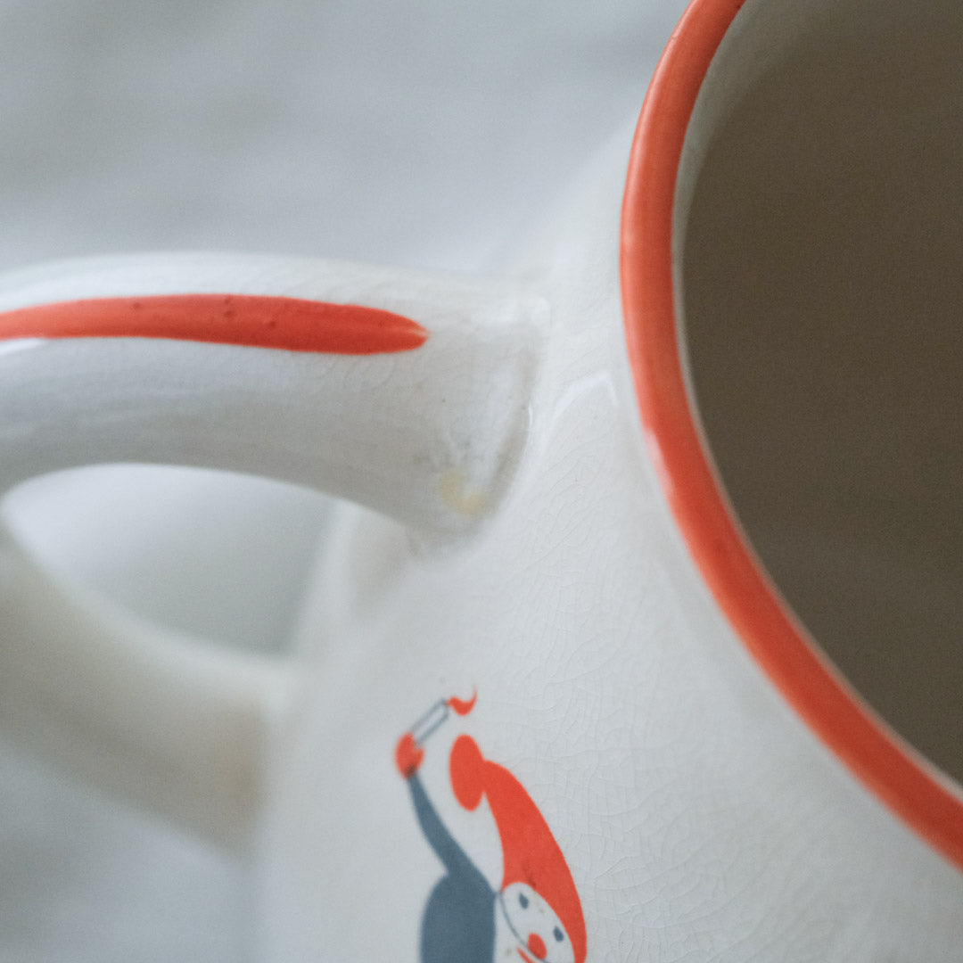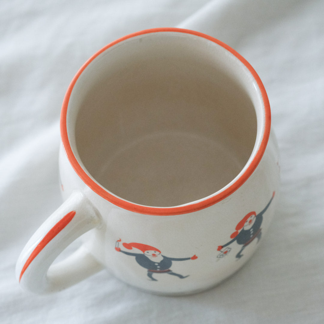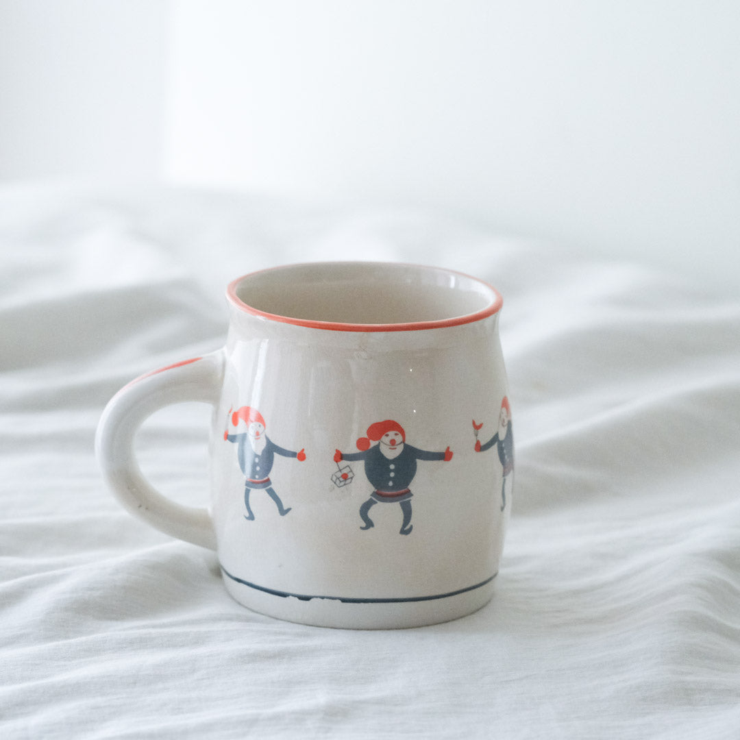 スウェーデンの陶磁器メーカーのゲフレ ウプサラエクビー。1960年代のクリスマスジョッキです。「hej tomtegubbar(こんにちはサンタさん)」と題されたシリーズで、描かれたサンタの愉快な様子に、当時の食卓の笑顔が思い浮かびます。