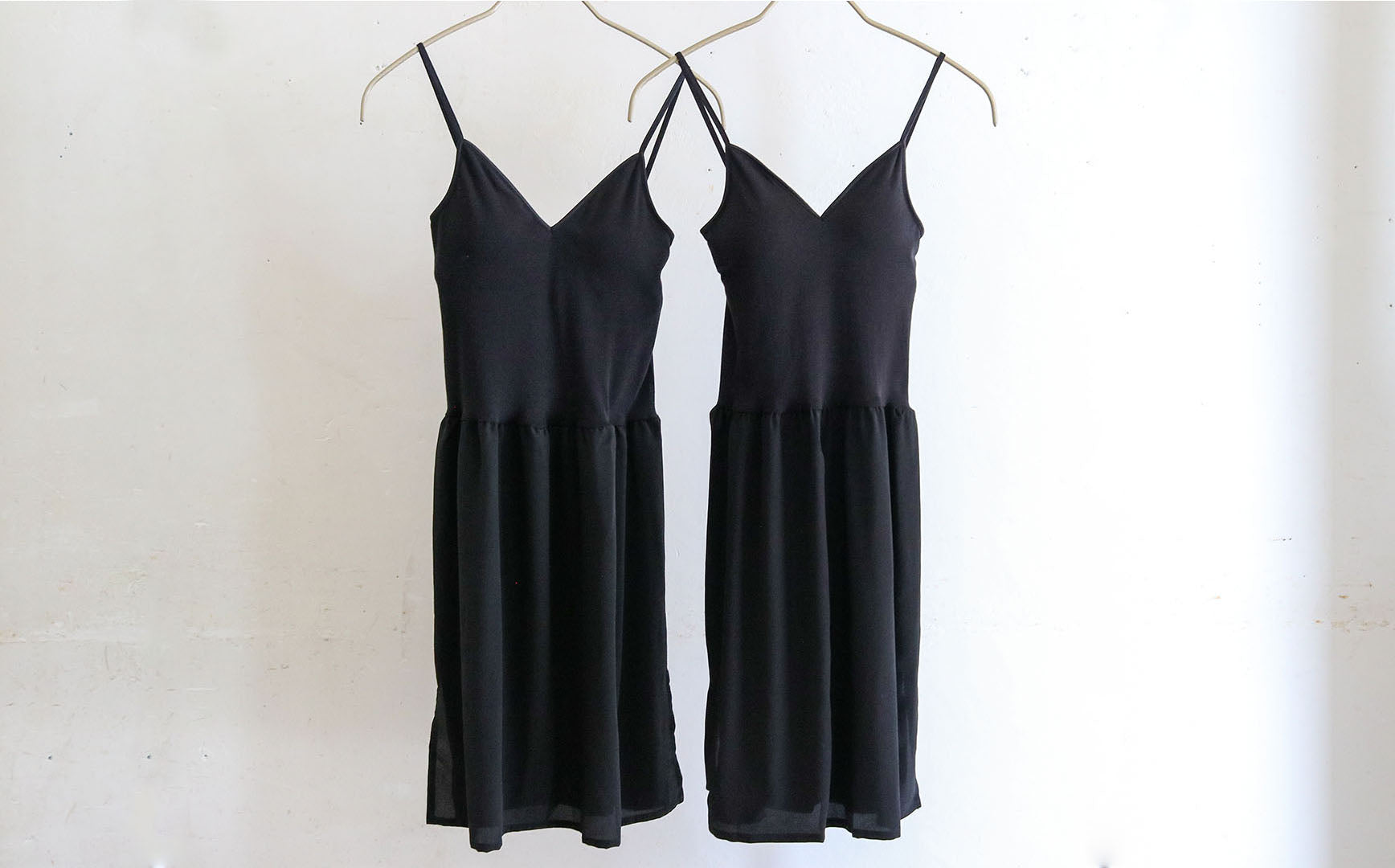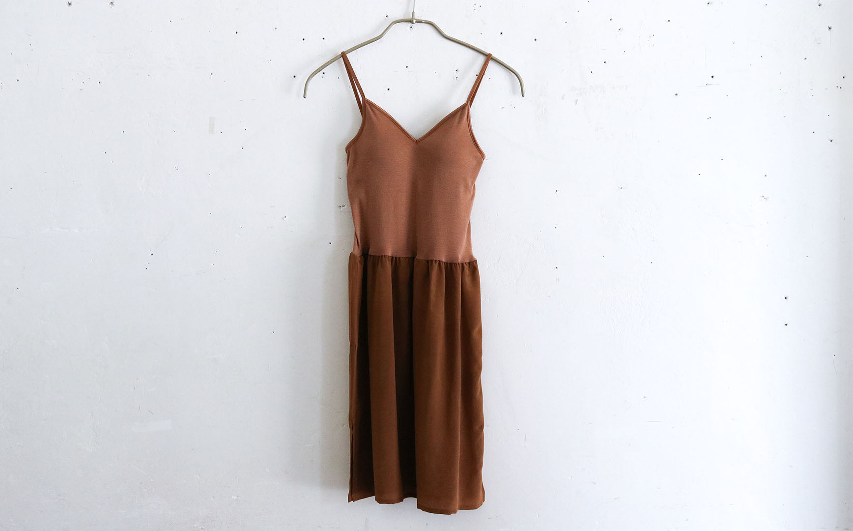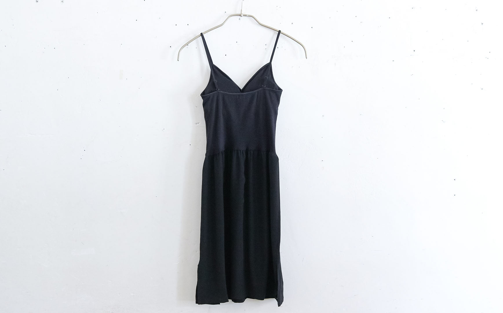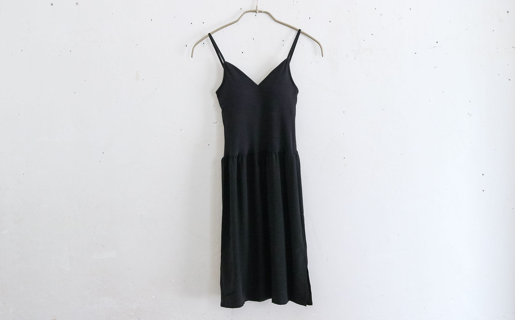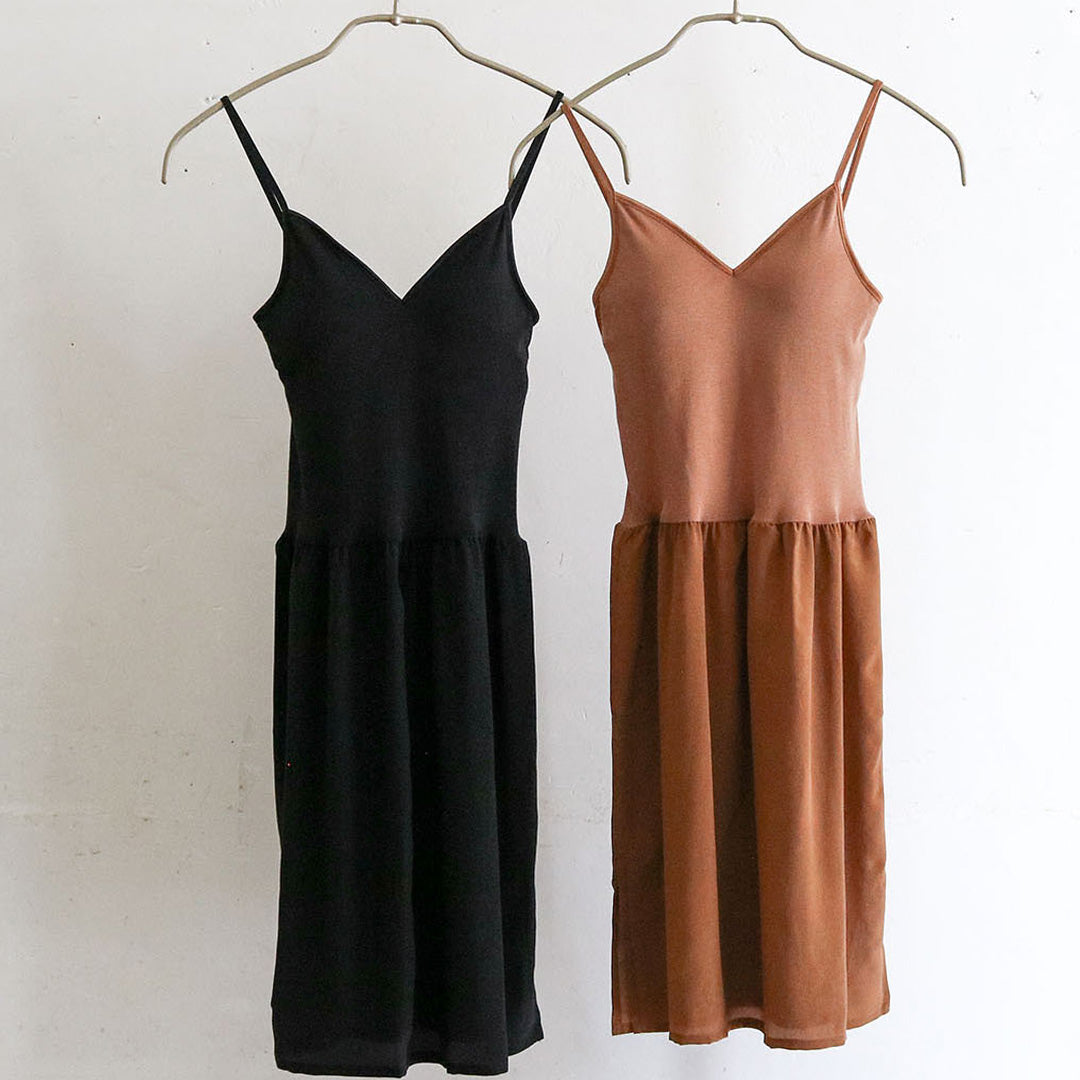 嬉しいのは、パッドつきキャミソールだからワンピースのインナーとして一枚で完結する手軽さ。ワンピースの下に何枚もインナーを重ねる必要がありません。