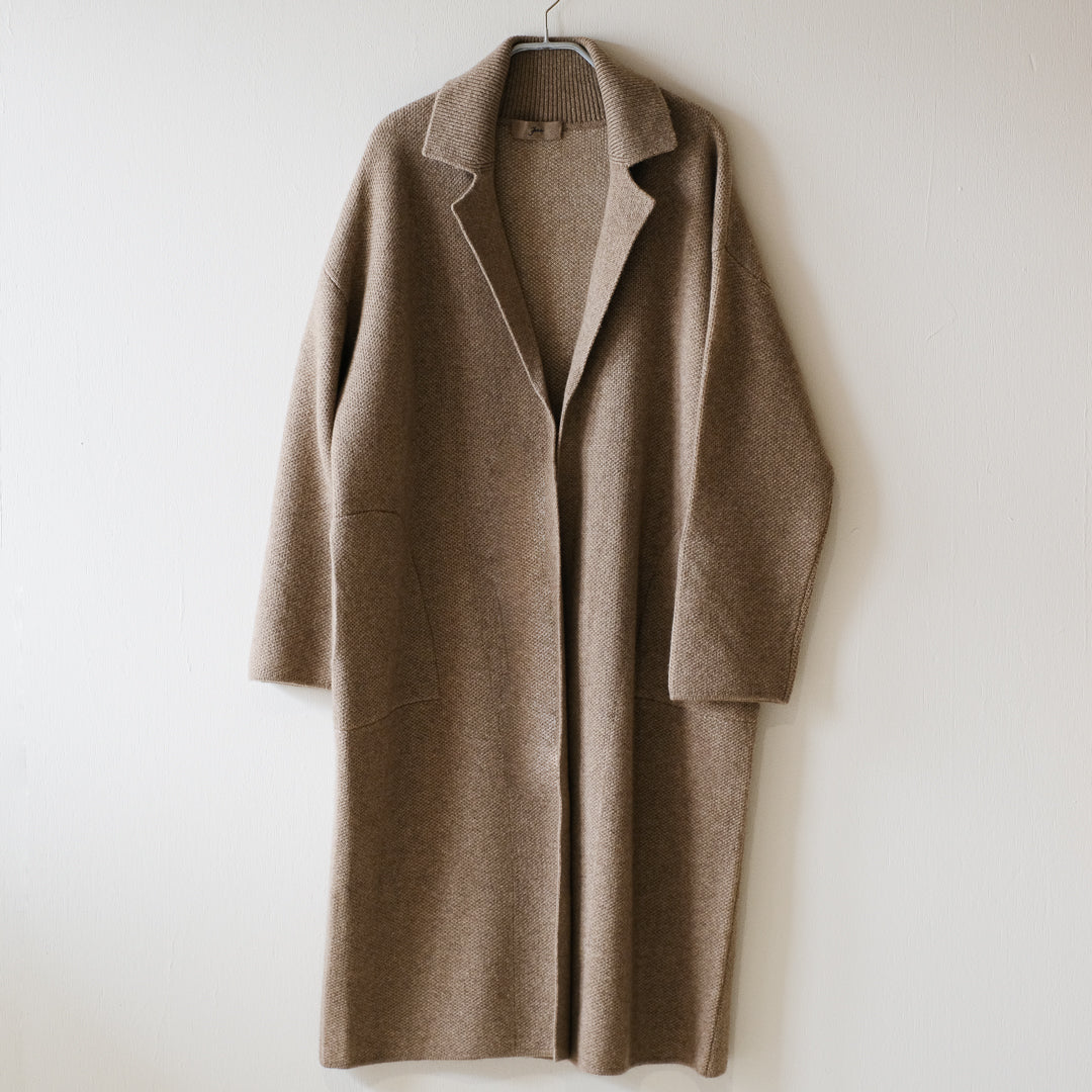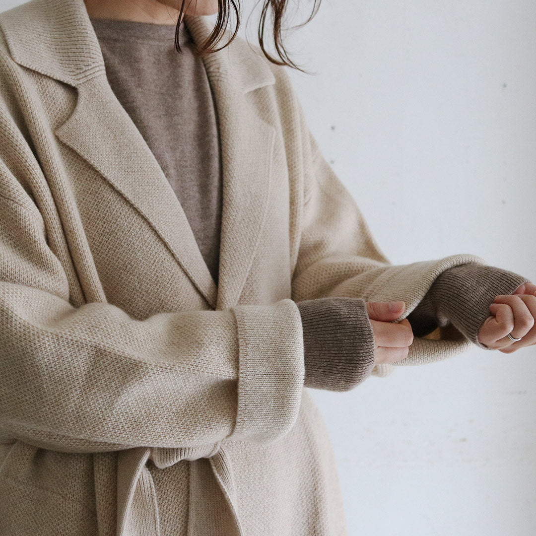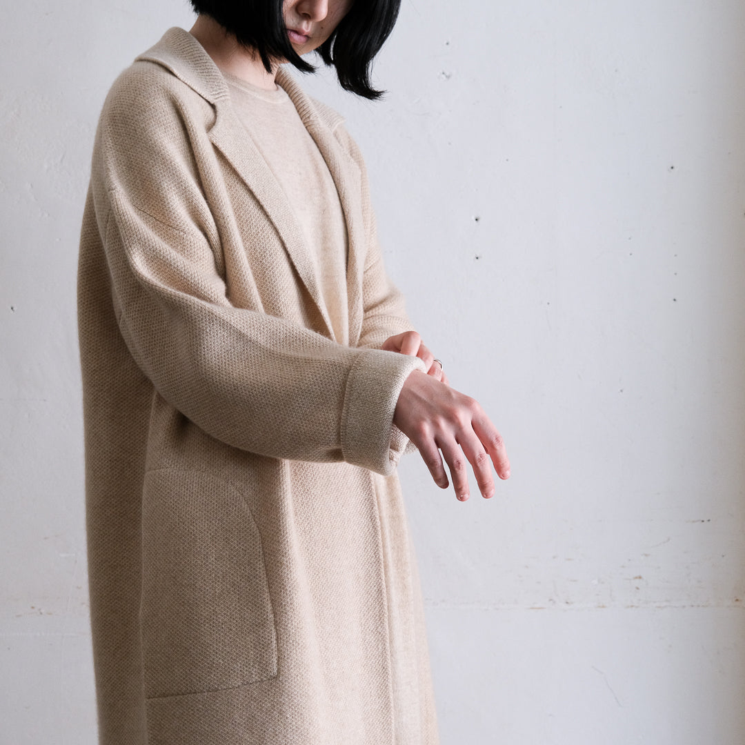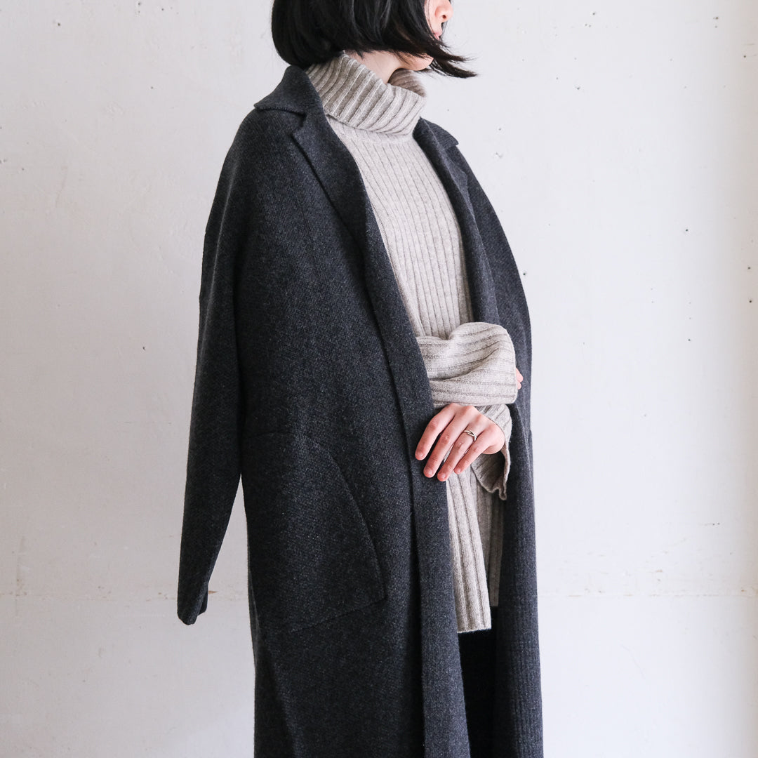 メンズライクな印象を持つチェスターコート。その凛とした表情をカシミヤで表現したニットコートです。