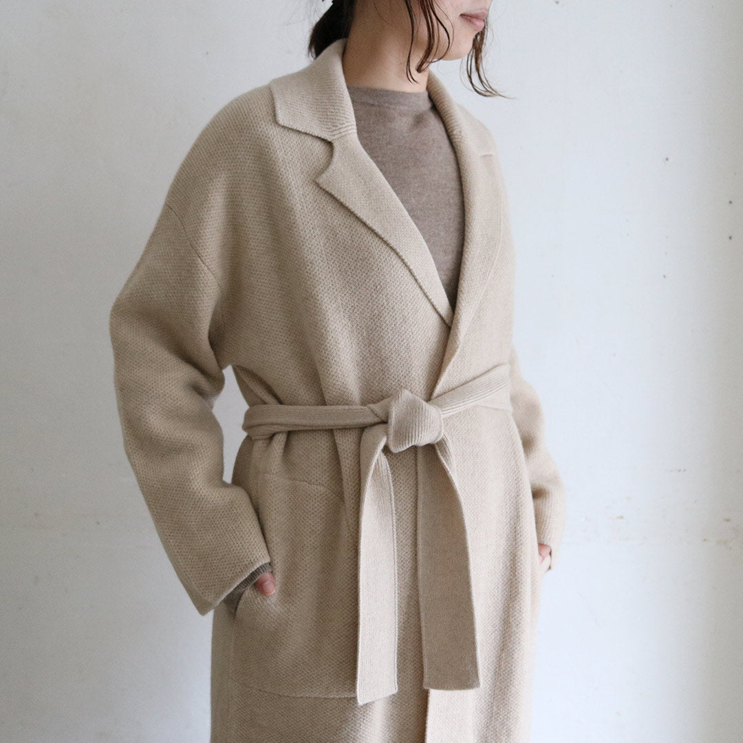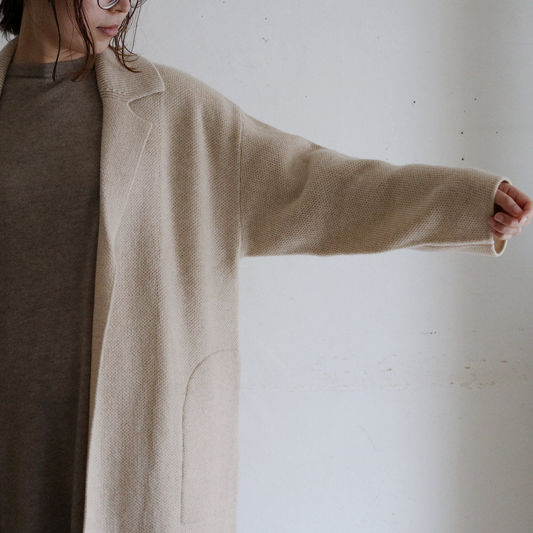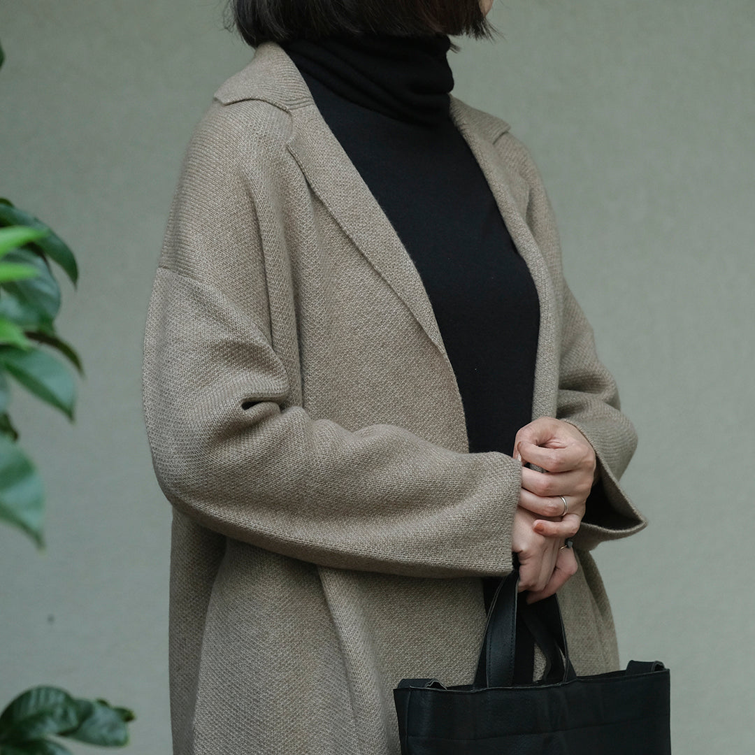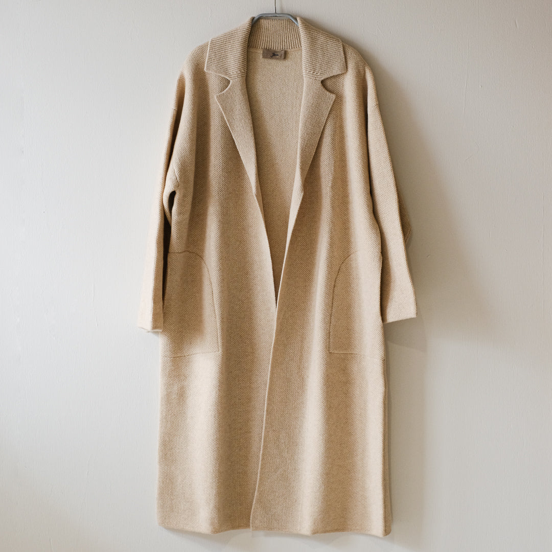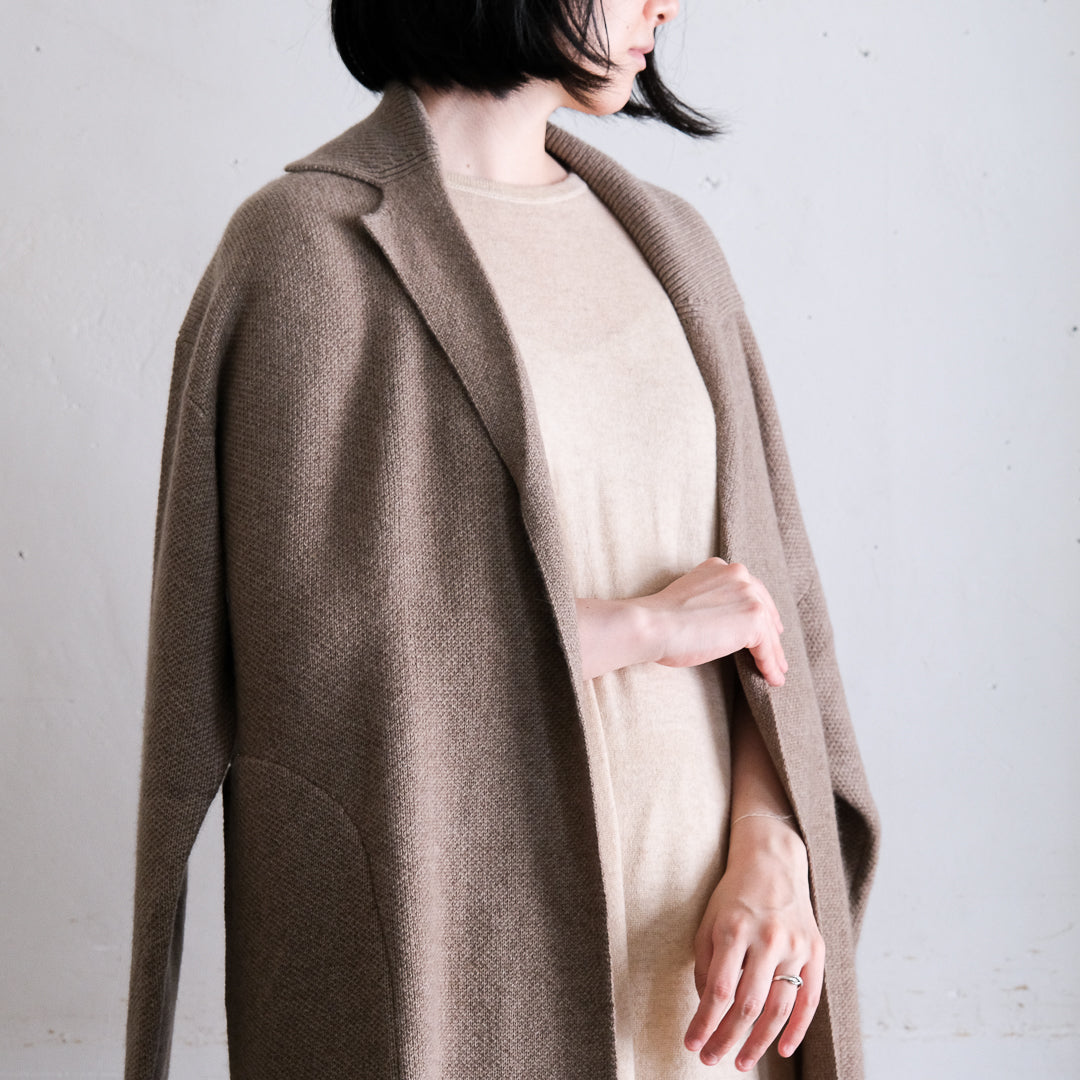 メンズライクな印象を持つチェスターコート。その凛とした表情をカシミヤで表現したニットコートです。