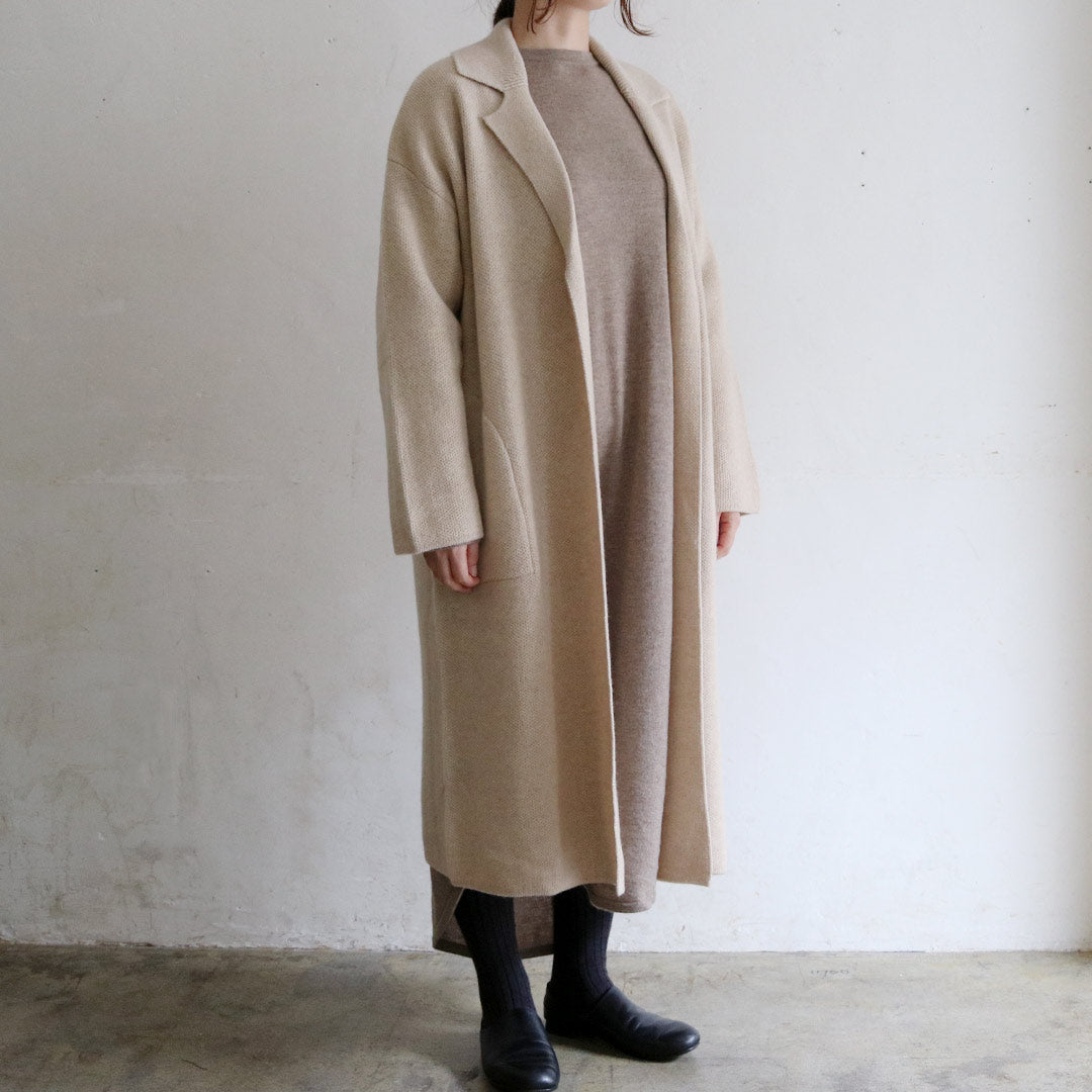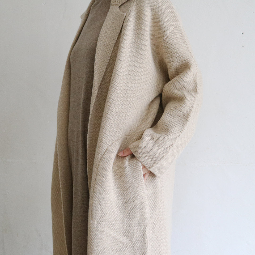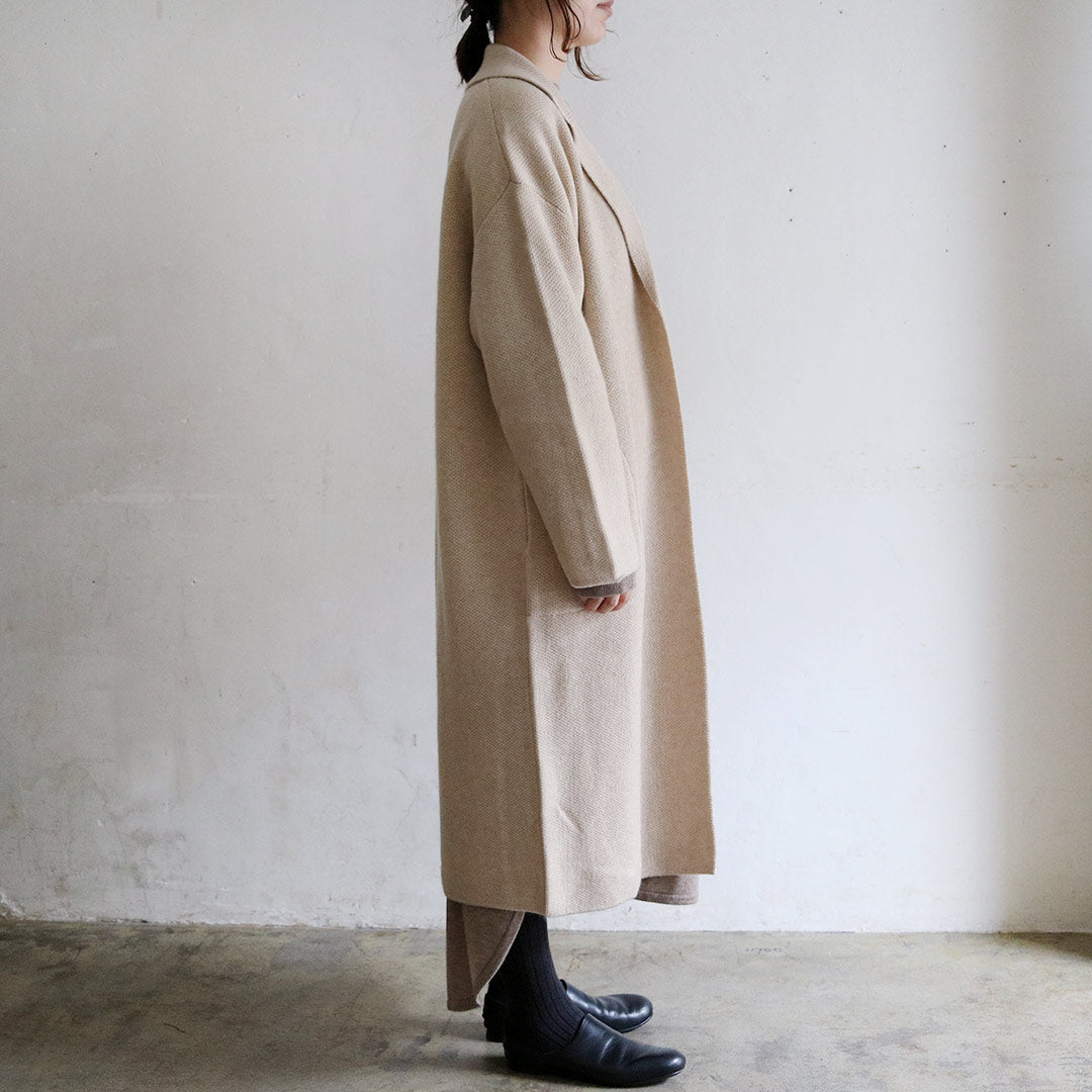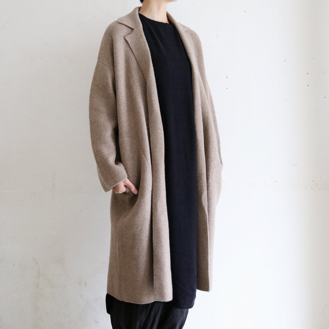 メンズライクな印象を持つチェスターコート。その凛とした表情をカシミヤで表現したニットコートです。