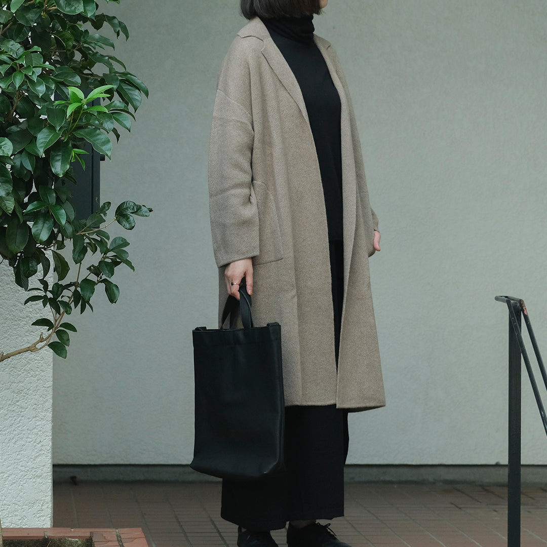 試着するとスタッフそれぞれが似合い、素敵ね…と言い合うフリーマンの服。その人の上品な素顔を引き出し、自然体を包み込んでくれます。着る人を選ばないゆったりとしたサイズ感の「チェスターニットコート」は、真冬に心強い上質なあたたかさです。