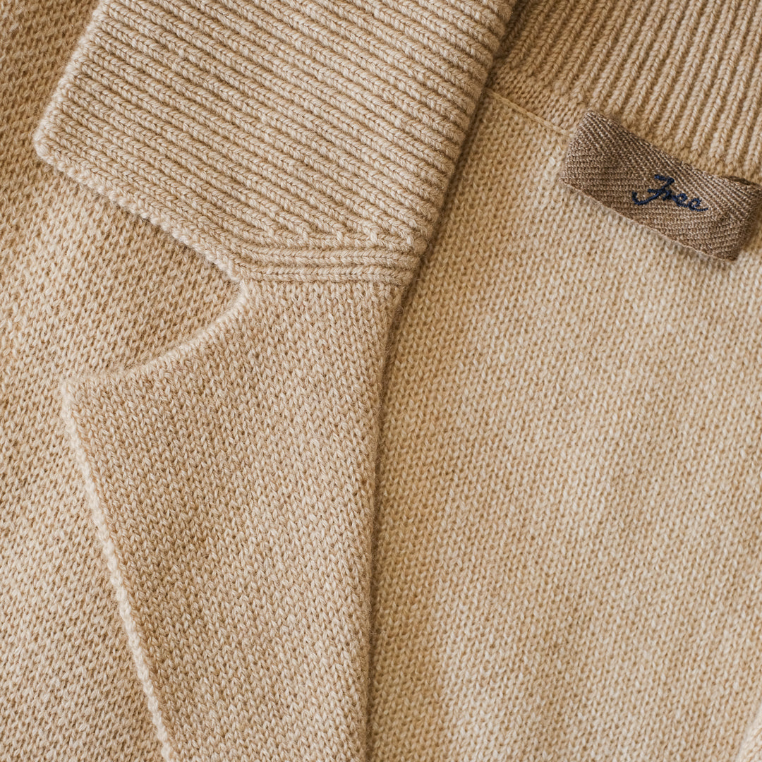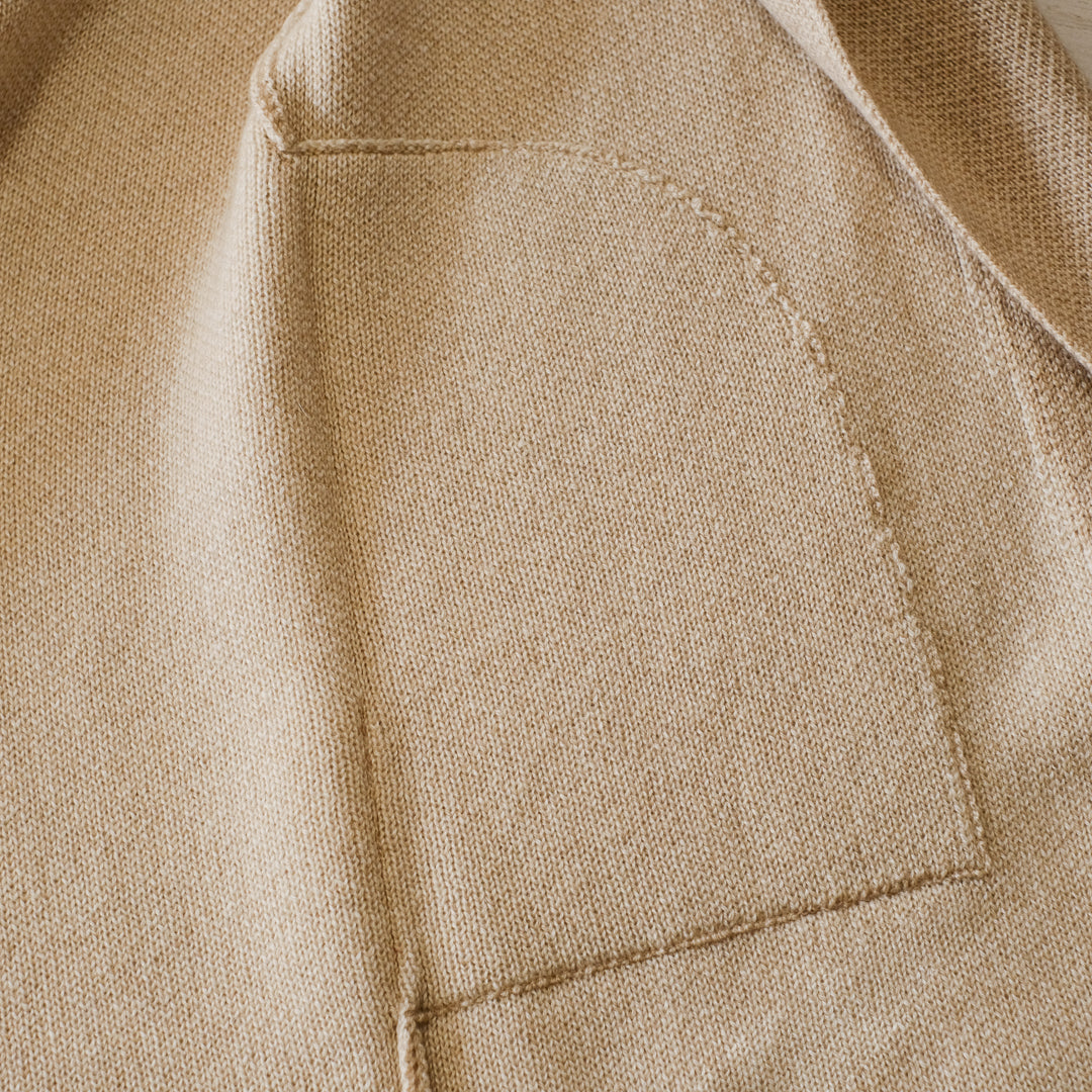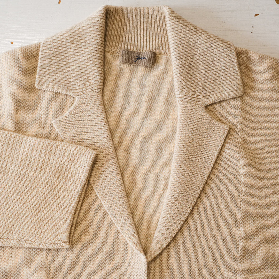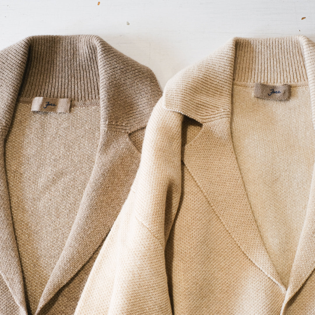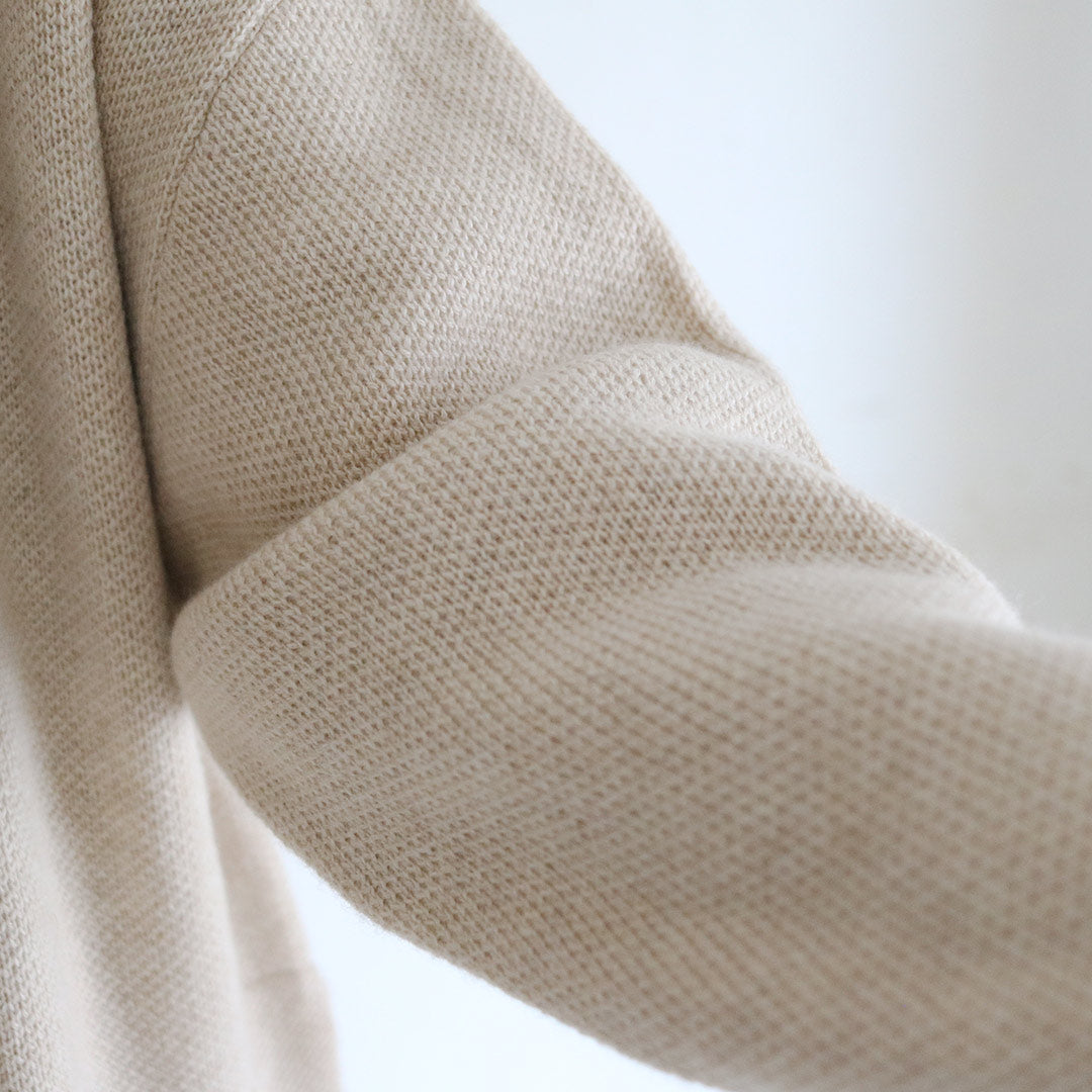 ニッティング技法を凝らし、袖をまくったときに見える裏面、襟部分の縫合の美しさを大切につくられています。