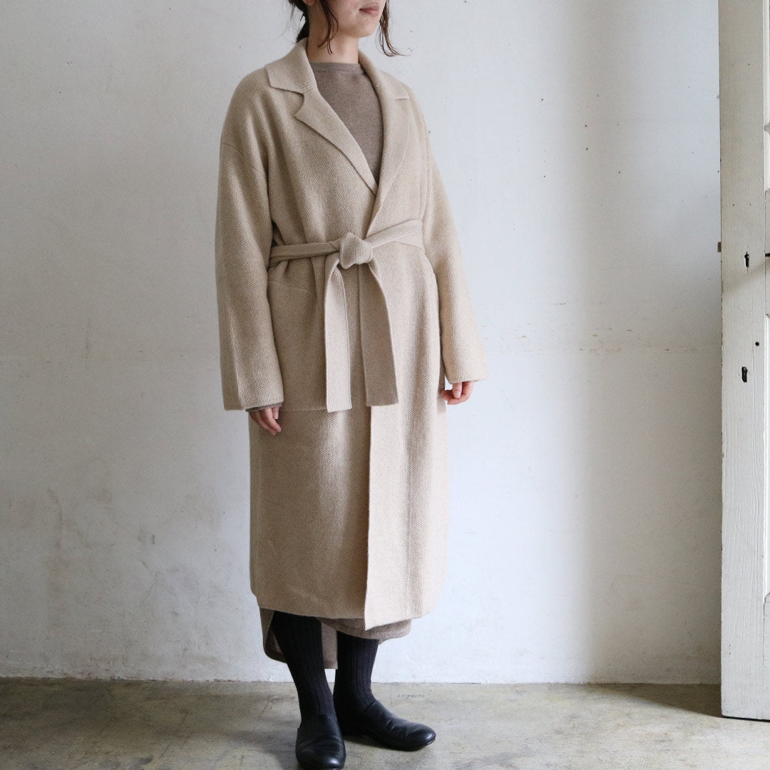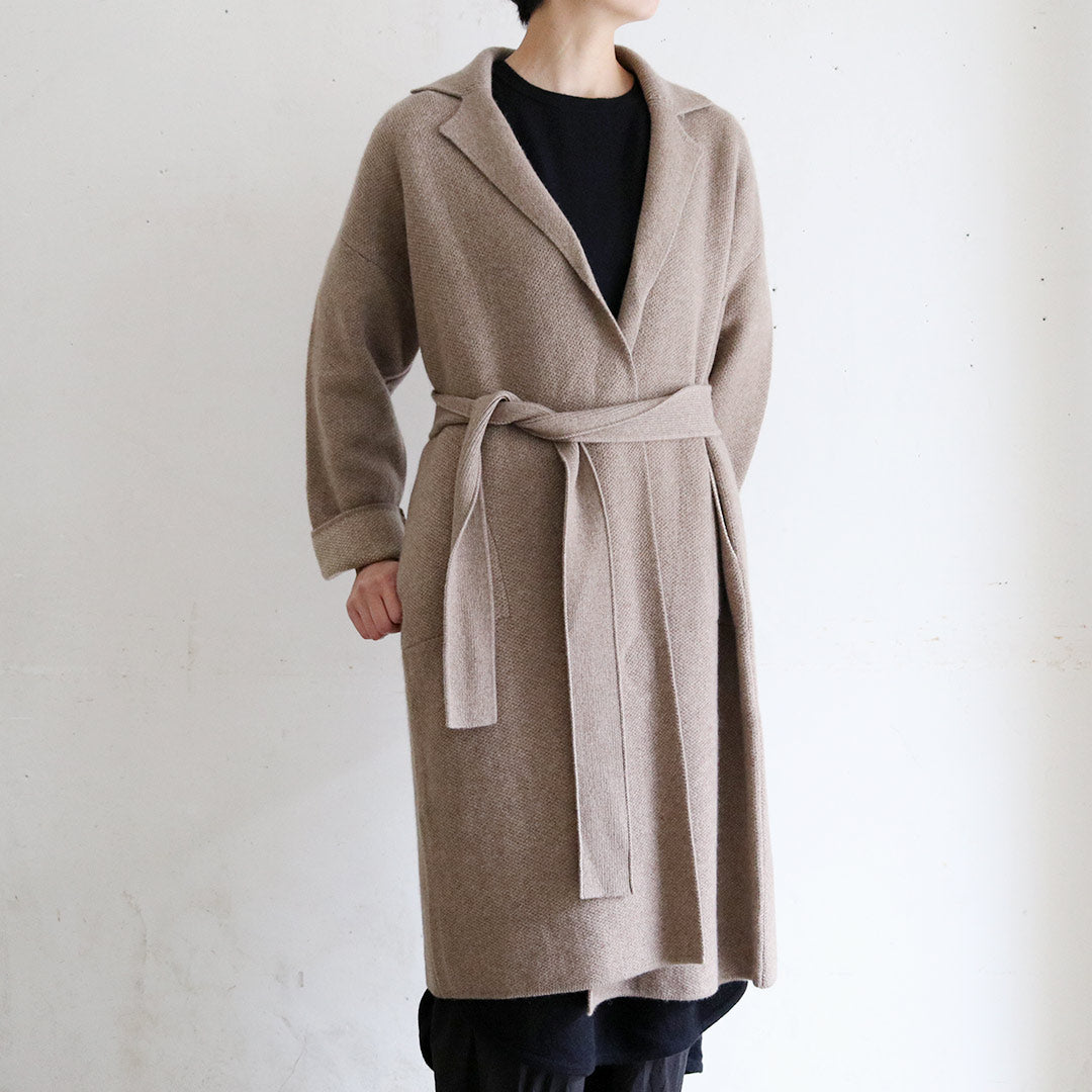 襟の凛々しさと上質なカシミヤが調和し、さらりと羽織る着こなしはもちろん、付属のベルトで前を閉じて着ても素敵です。
