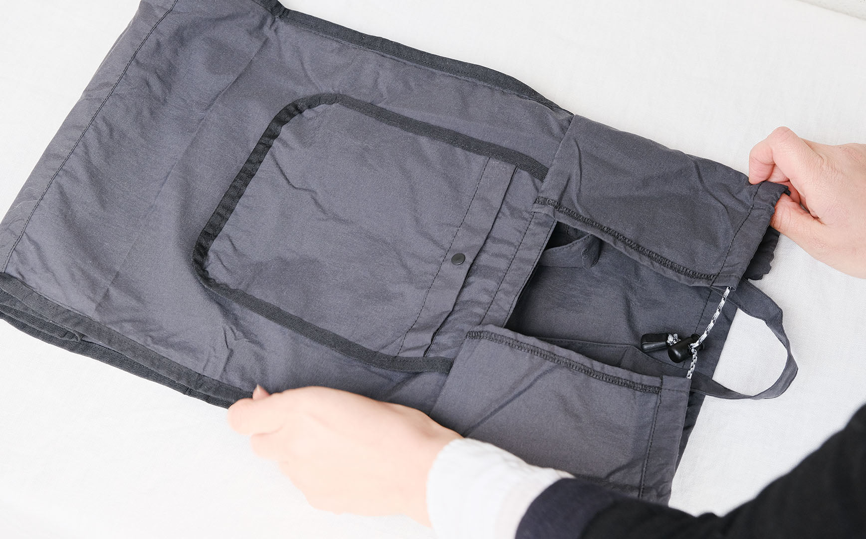 バッグ自体も軽く、持ち運びもポケットに入るくらいの大きさにまとめられるのでバッグの中をきれいに整理できます。