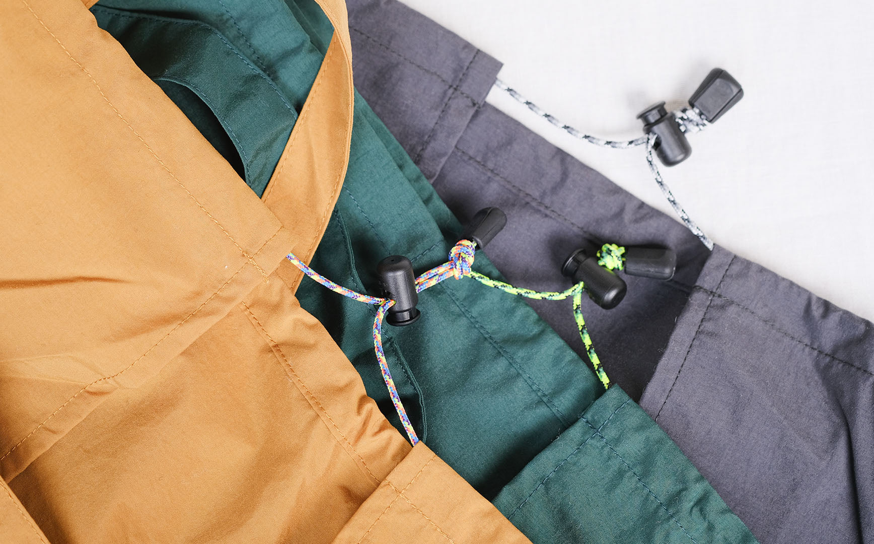 ▲巾着部のコードはアウトドアで使用される丈夫なコードを使用。コードの色は、バッグの生産のロットによって写真と別のカラーの紐になることがあります