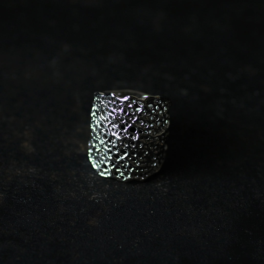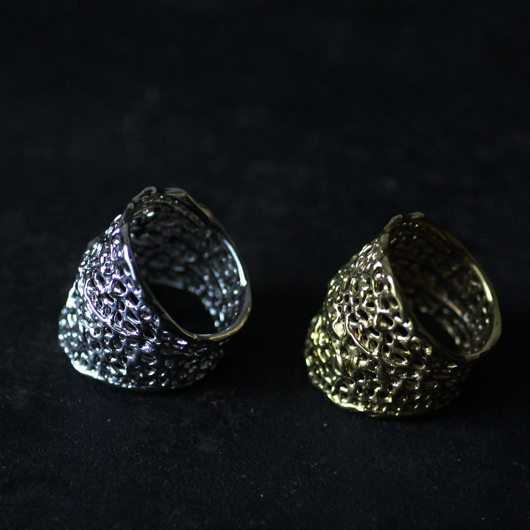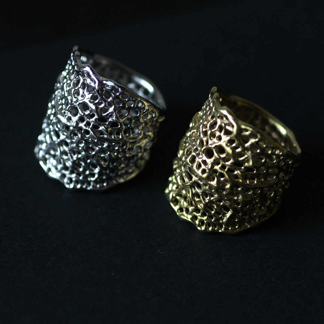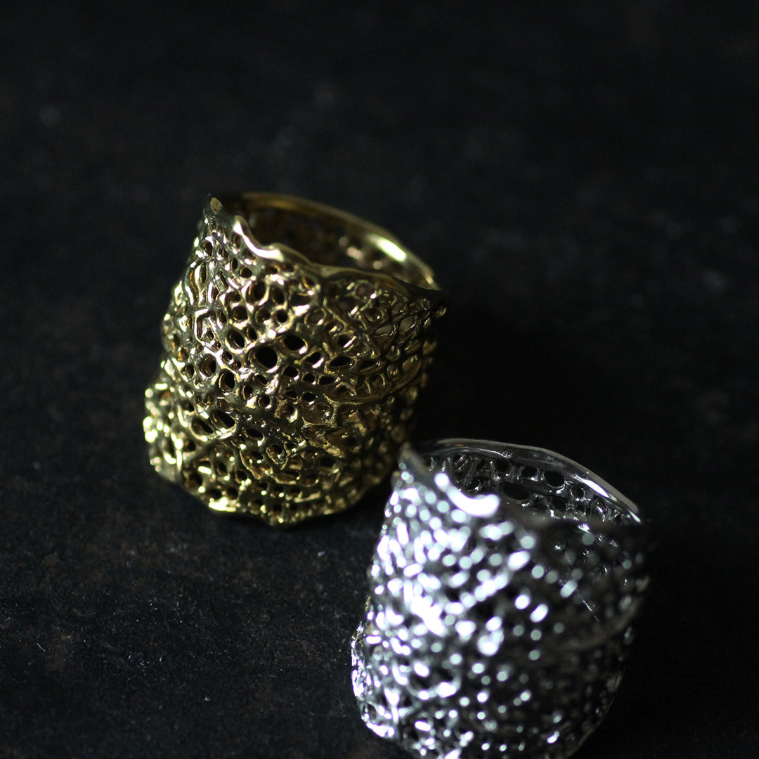 華やかで繊細。細かい模様で彩られた、レース作品を思わせる金属の指輪です。ご注文を受けてからひとつひとつおつくりします。
