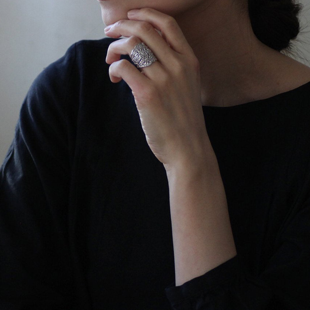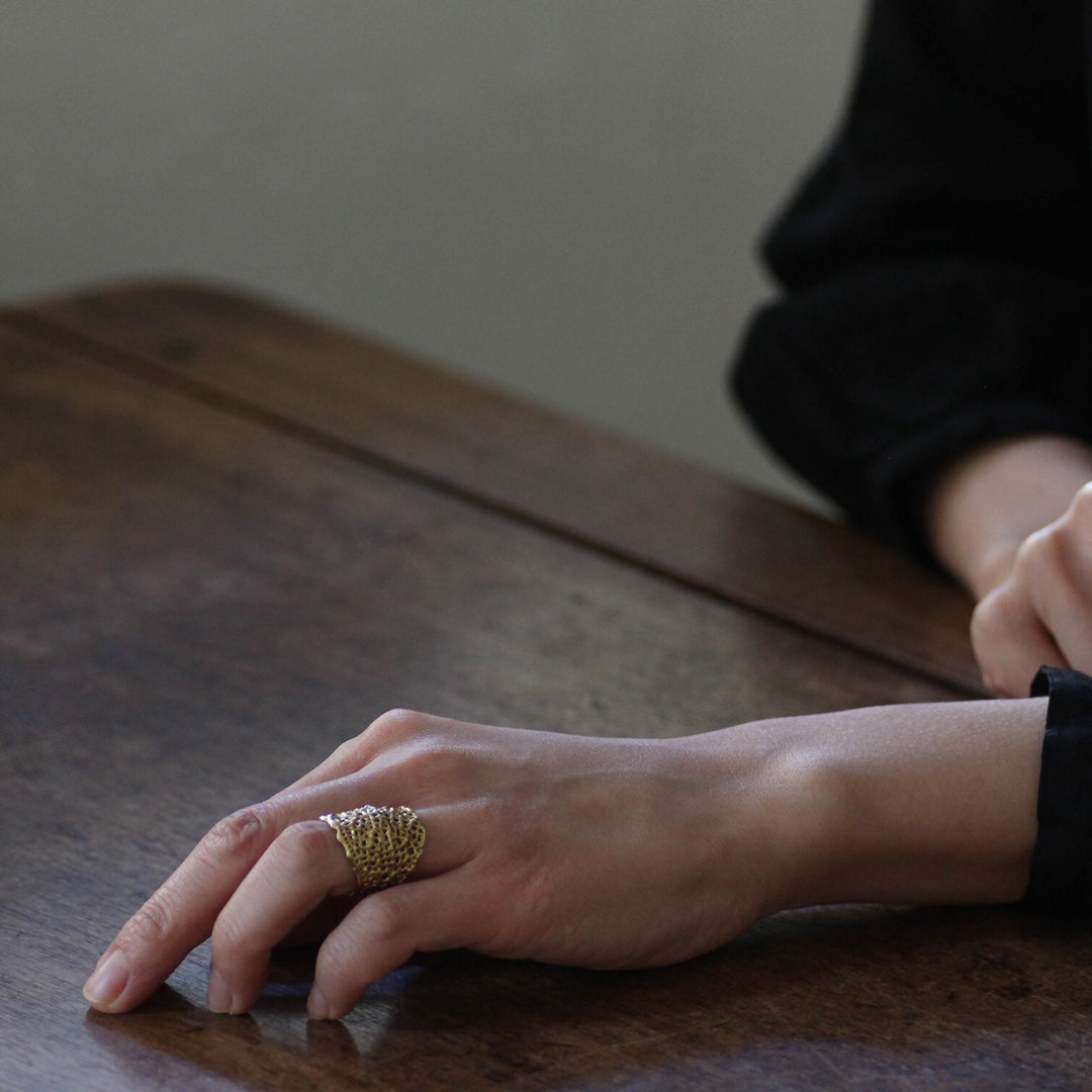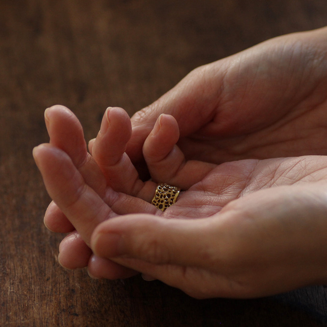 華やかで繊細。細かい模様で彩られた、レース作品を思わせる金属の指輪です。ご注文を受けてからひとつひとつおつくりします。