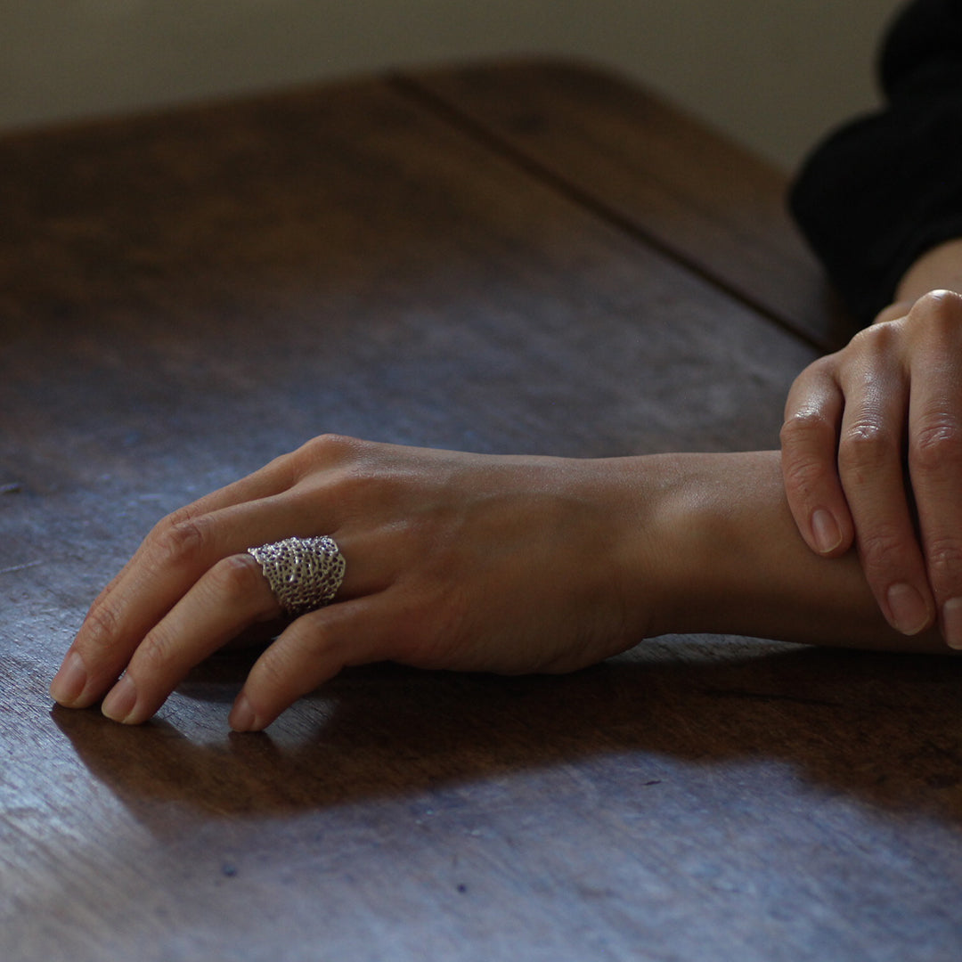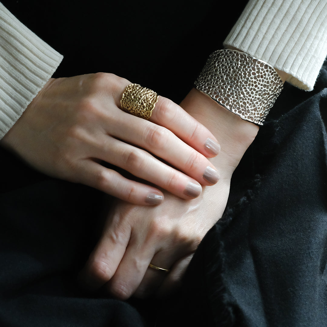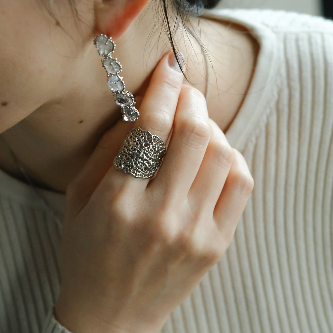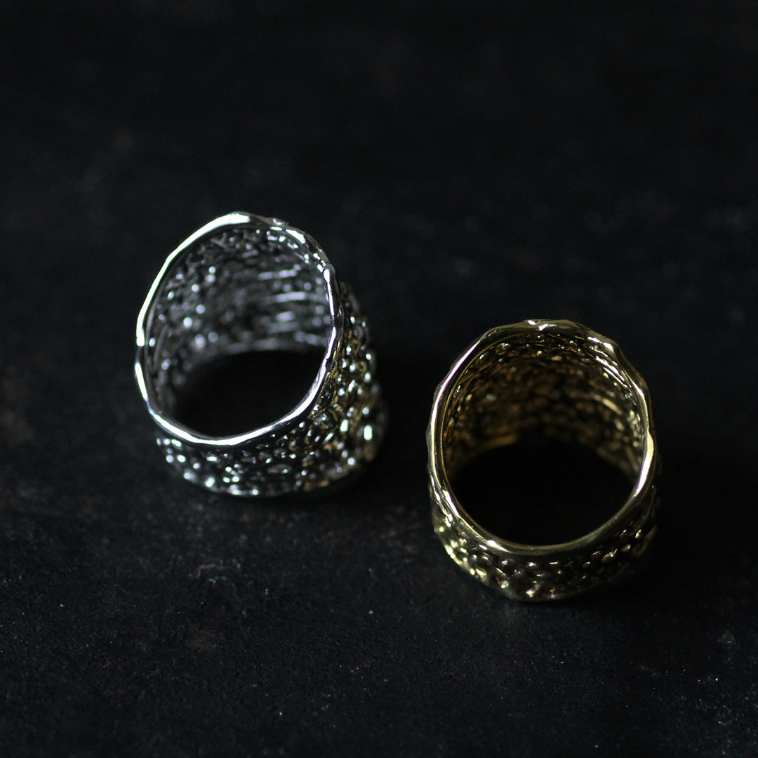 華やかで繊細。細かい模様で彩られた、レース作品を思わせる金属の指輪です。ご注文を受けてからひとつひとつおつくりします。