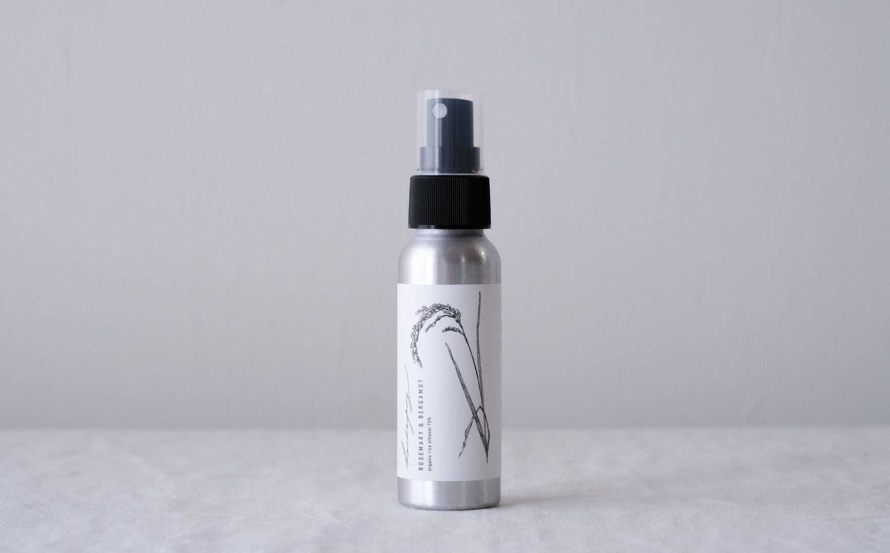 全成分:エタノール(米発酵)、水(スギ水)、ベルガモット果皮油、ローズマリー葉油、グリセリン