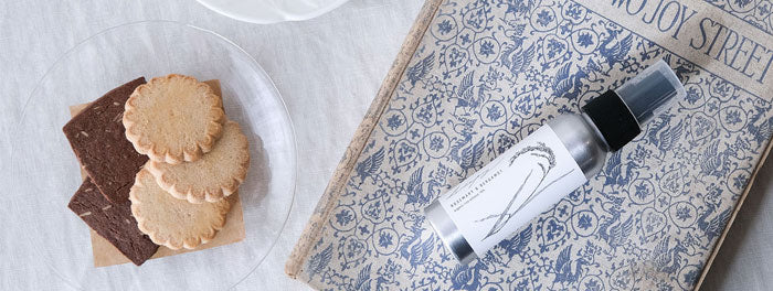 とくに「料理を邪魔しないこと」を考えて、ムスク系の華やかな香りではない、すっきりとしたローズマリーとベルガモットの精油をえらびました。
