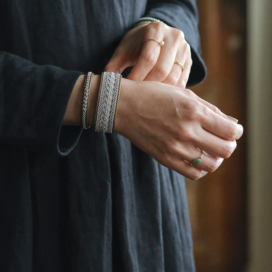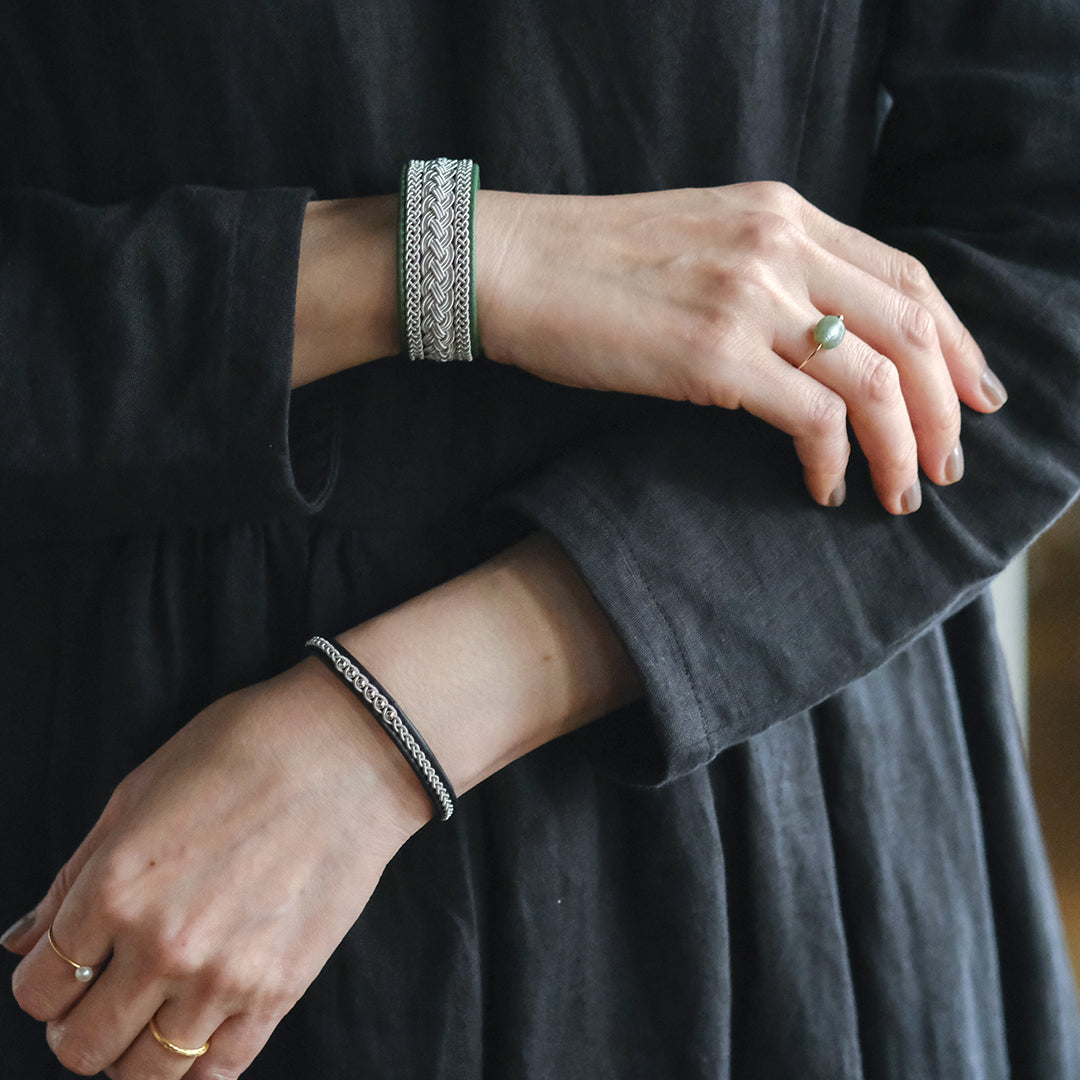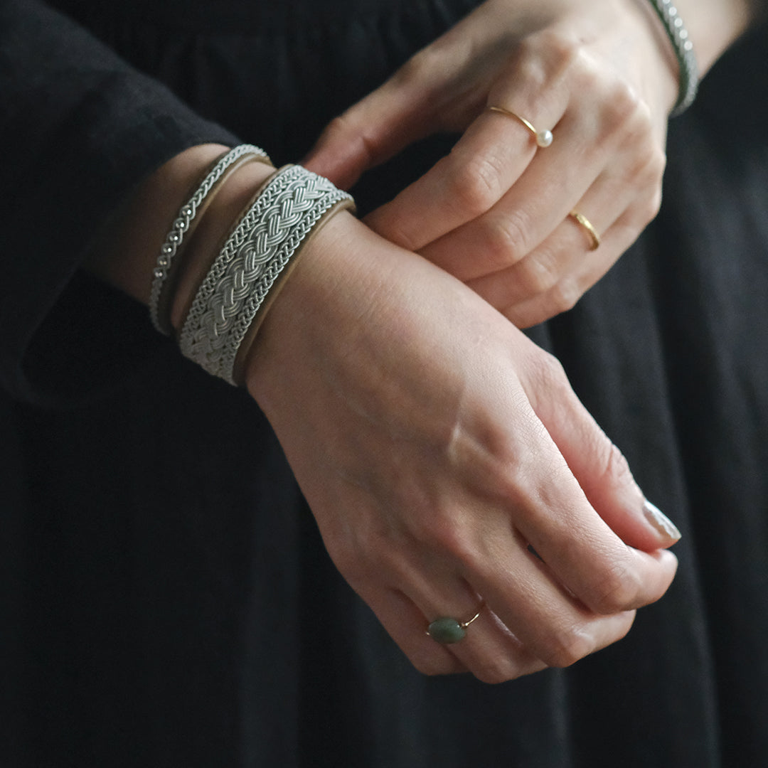 北欧の先住民サーミ族による伝統を取り入れた、YOHEI NOGUCHIのサーミブレスレットをご紹介します。こちらでご紹介するのはピューターワイヤーの四つ編みを3本重ねたデザイン。