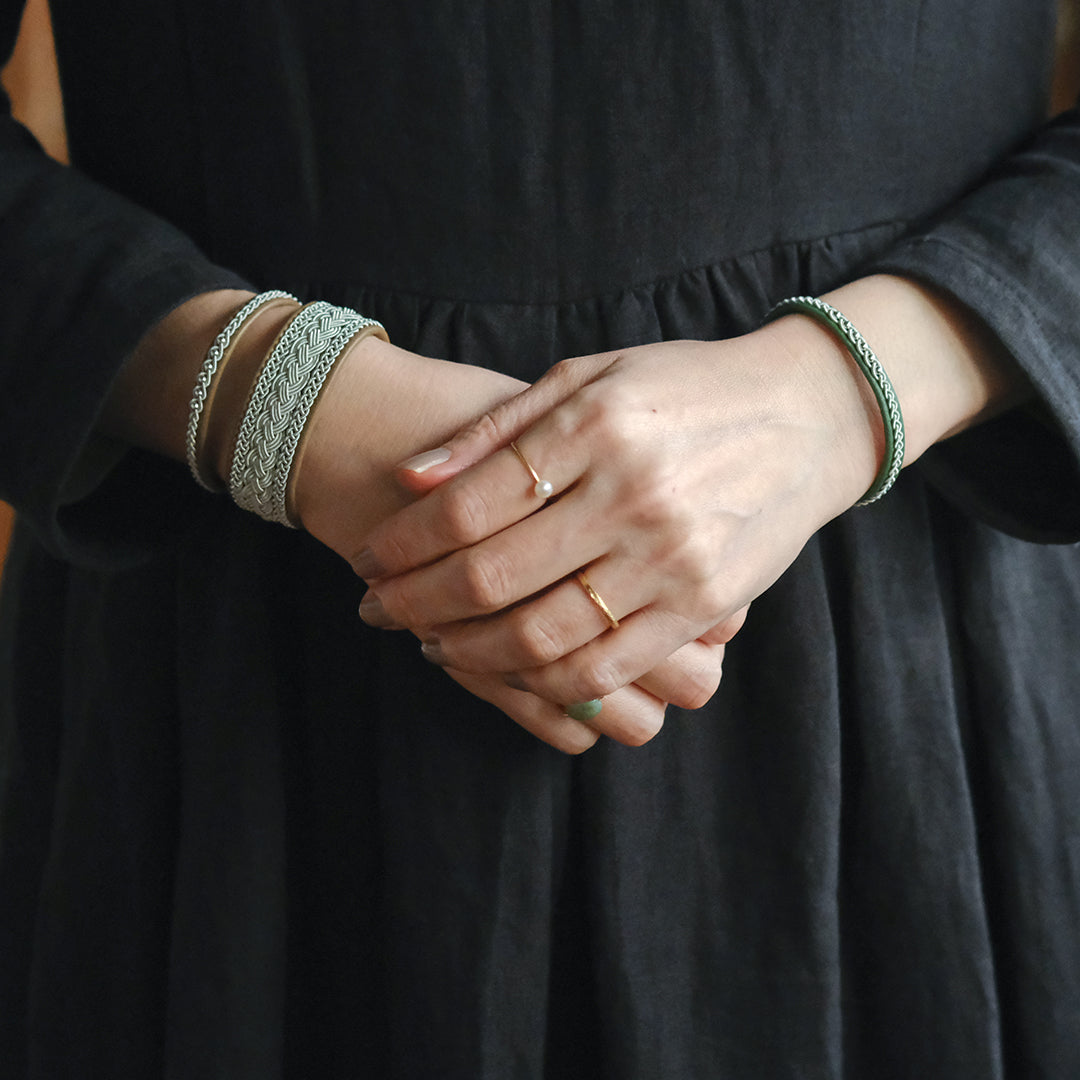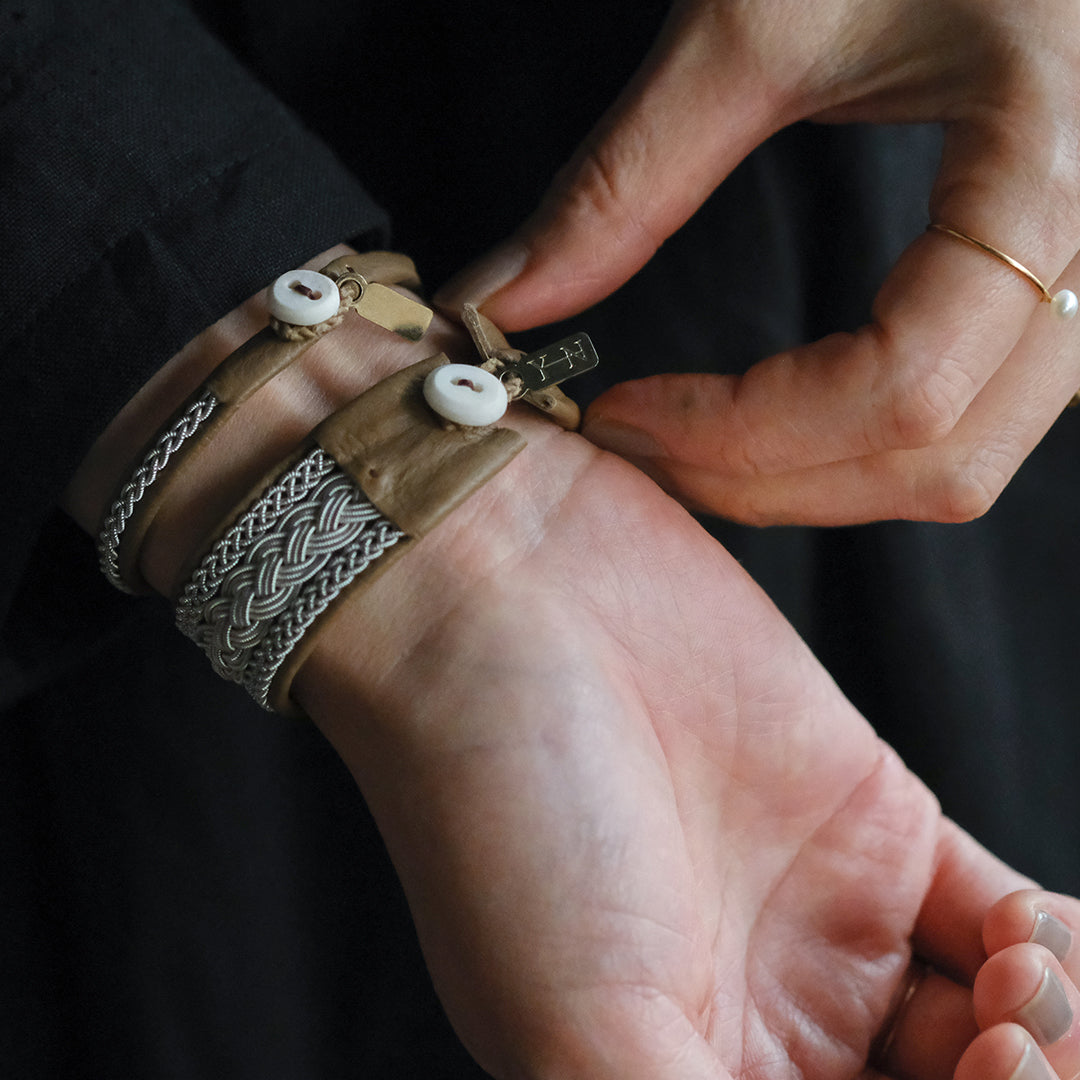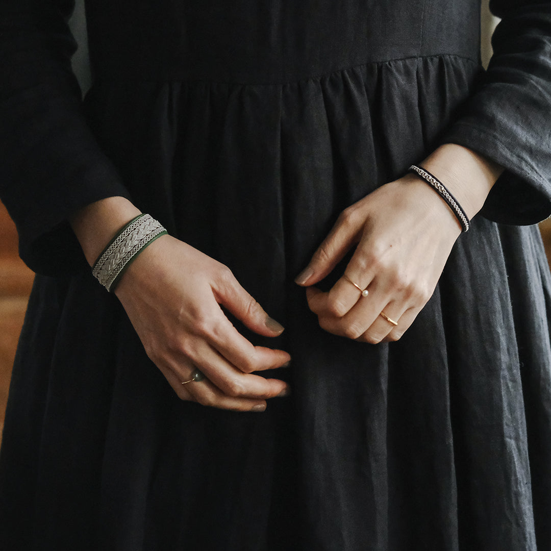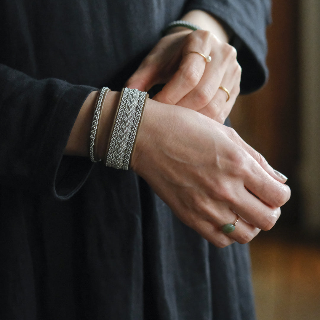 北欧の先住民サーミ族による伝統を取り入れた、YOHEI NOGUCHIのサーミブレスレットをご紹介します。こちらでご紹介するのはピューターワイヤーの四つ編みを3本重ねたデザイン。