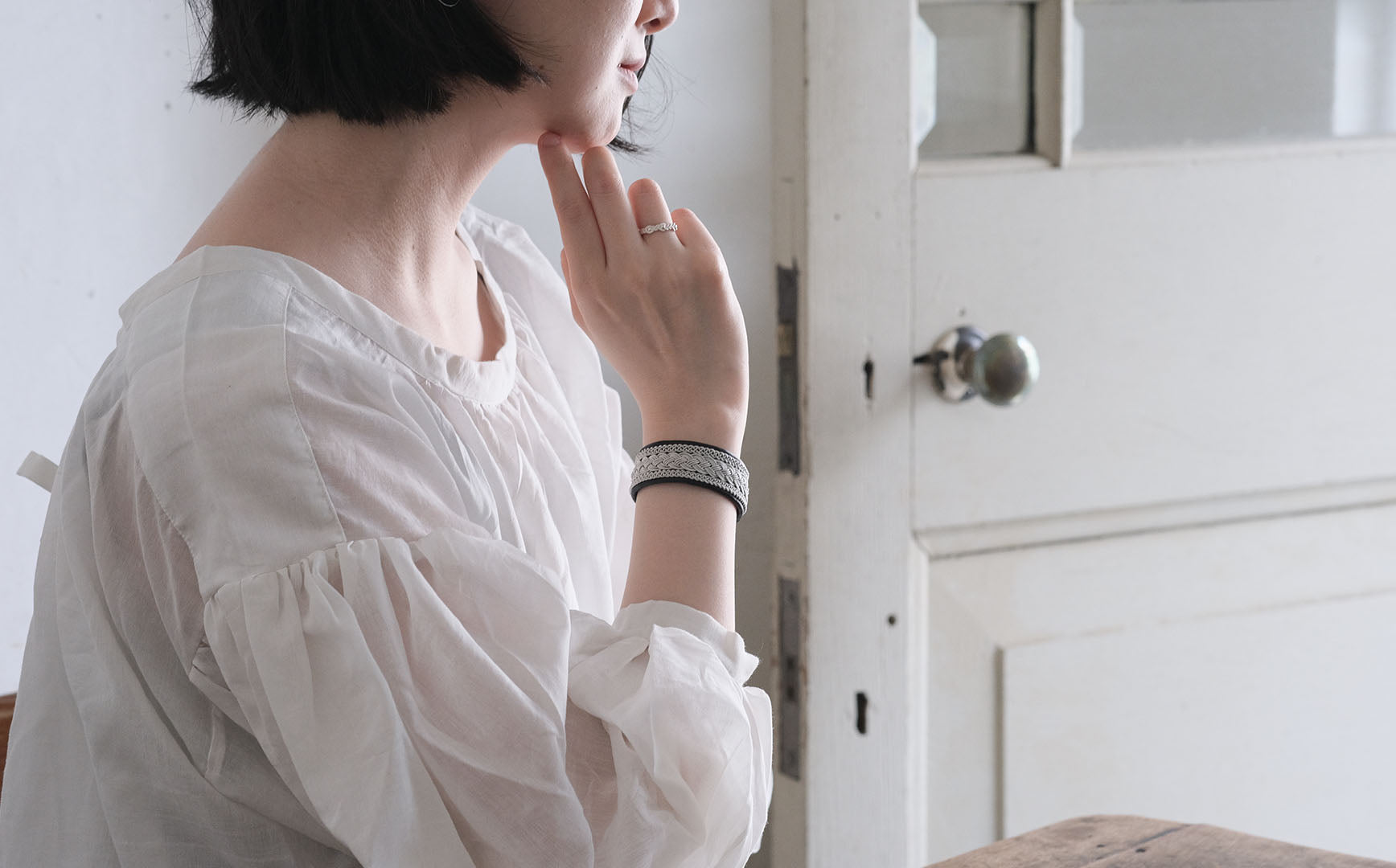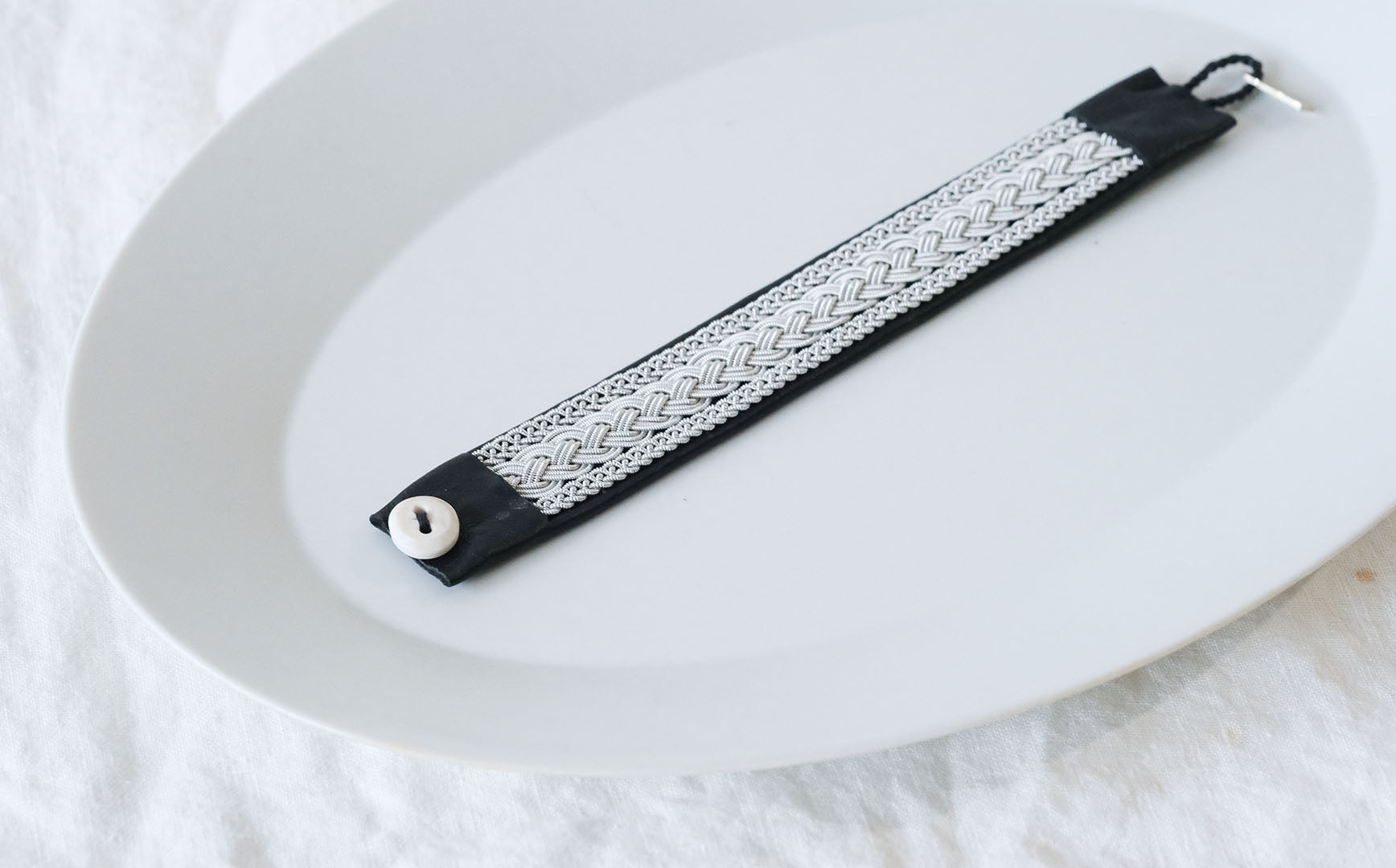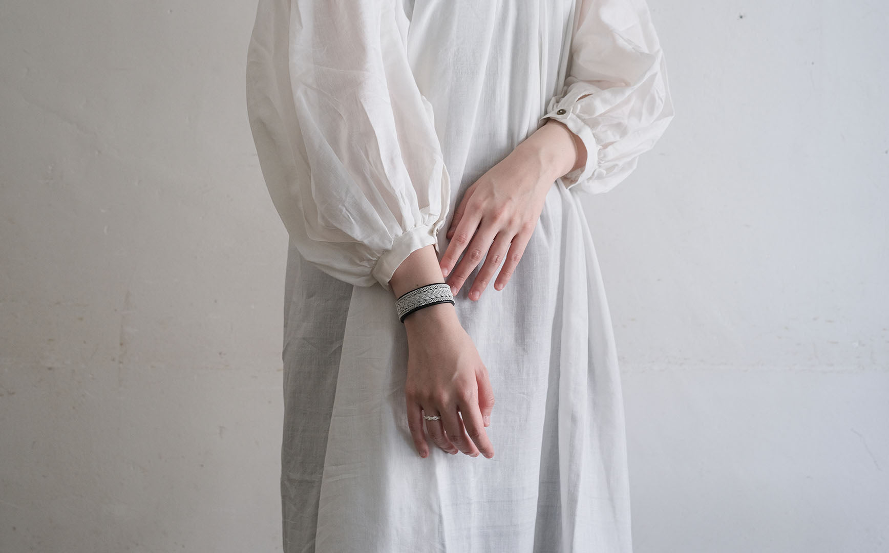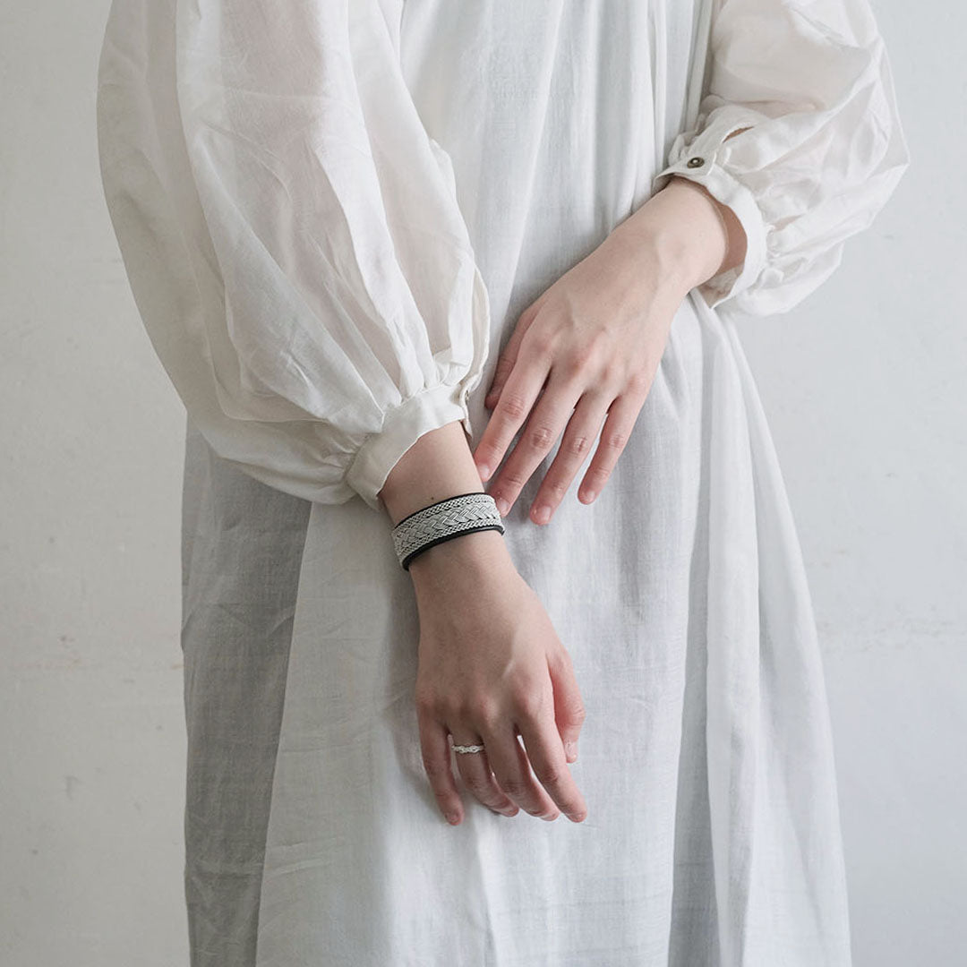 その伝統を取り入れつつ、あえてゆるく編むことでレースのような繊細さを表現。トライバルモードになりすぎず、普段の装いになじみます。