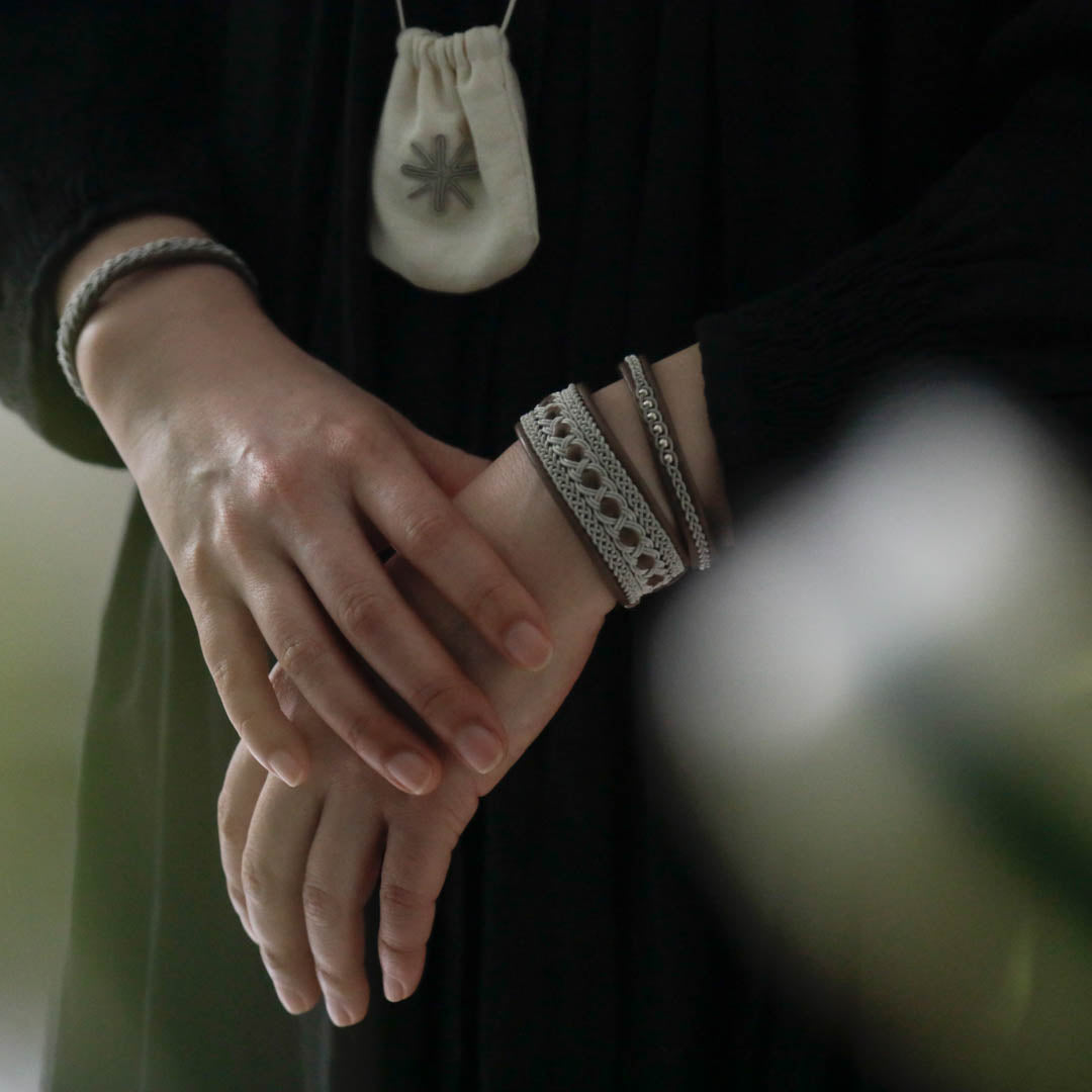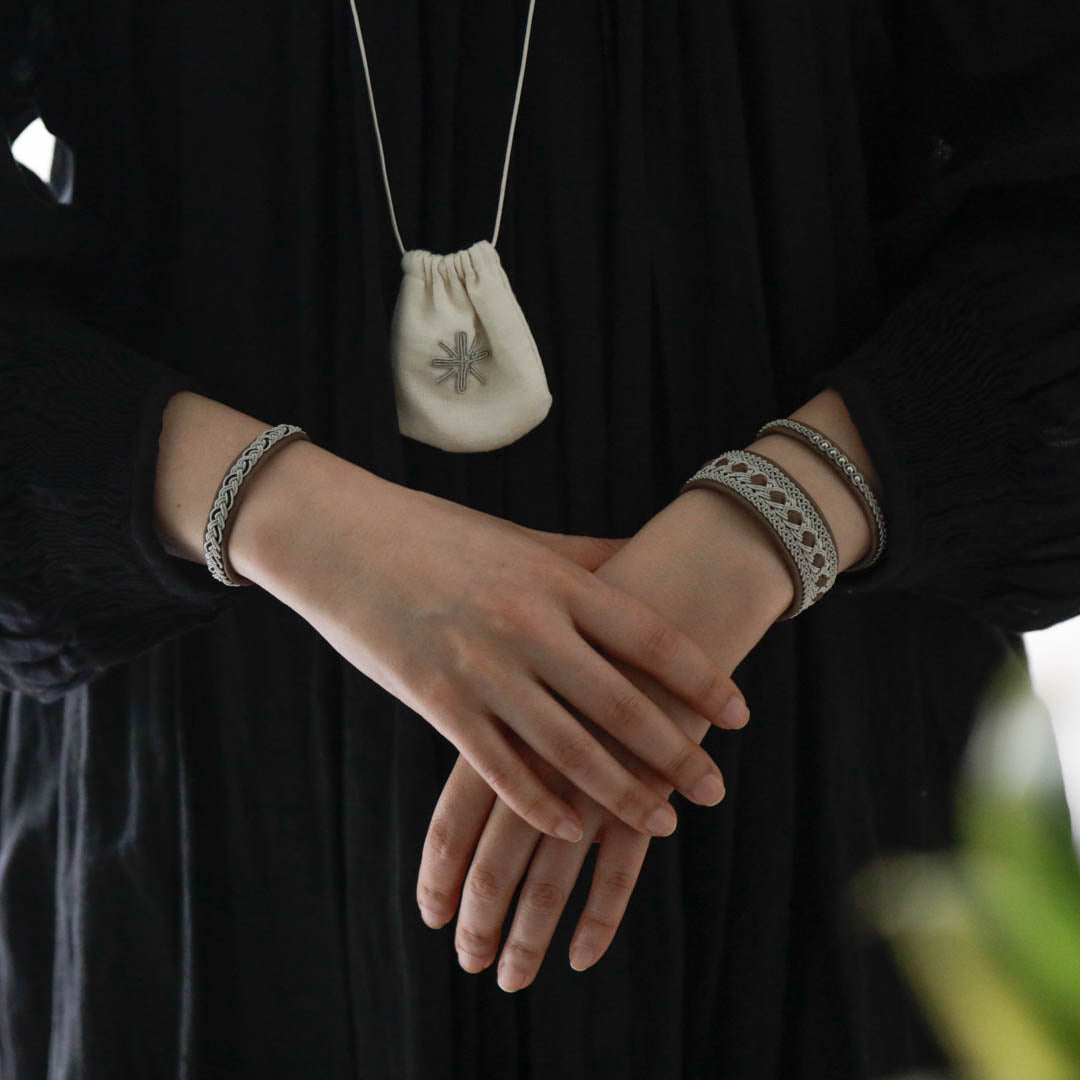 北欧の先住民サーミ族による伝統を取り入れた、YOHEI NOGUCHIのサーミブレスレットをご紹介します。こちらでご紹介するのは四つ編みを組み合わせたデザインです。