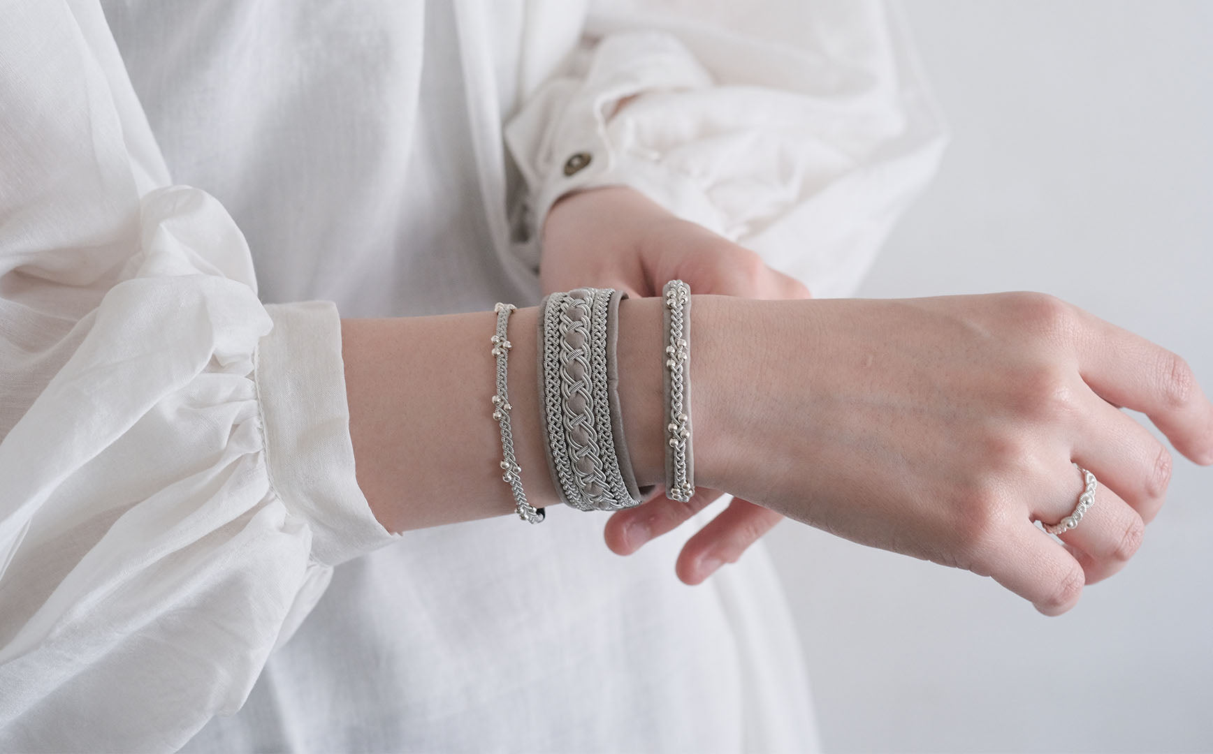 一つでもさまになるブレスレットですが、複数使いしても。