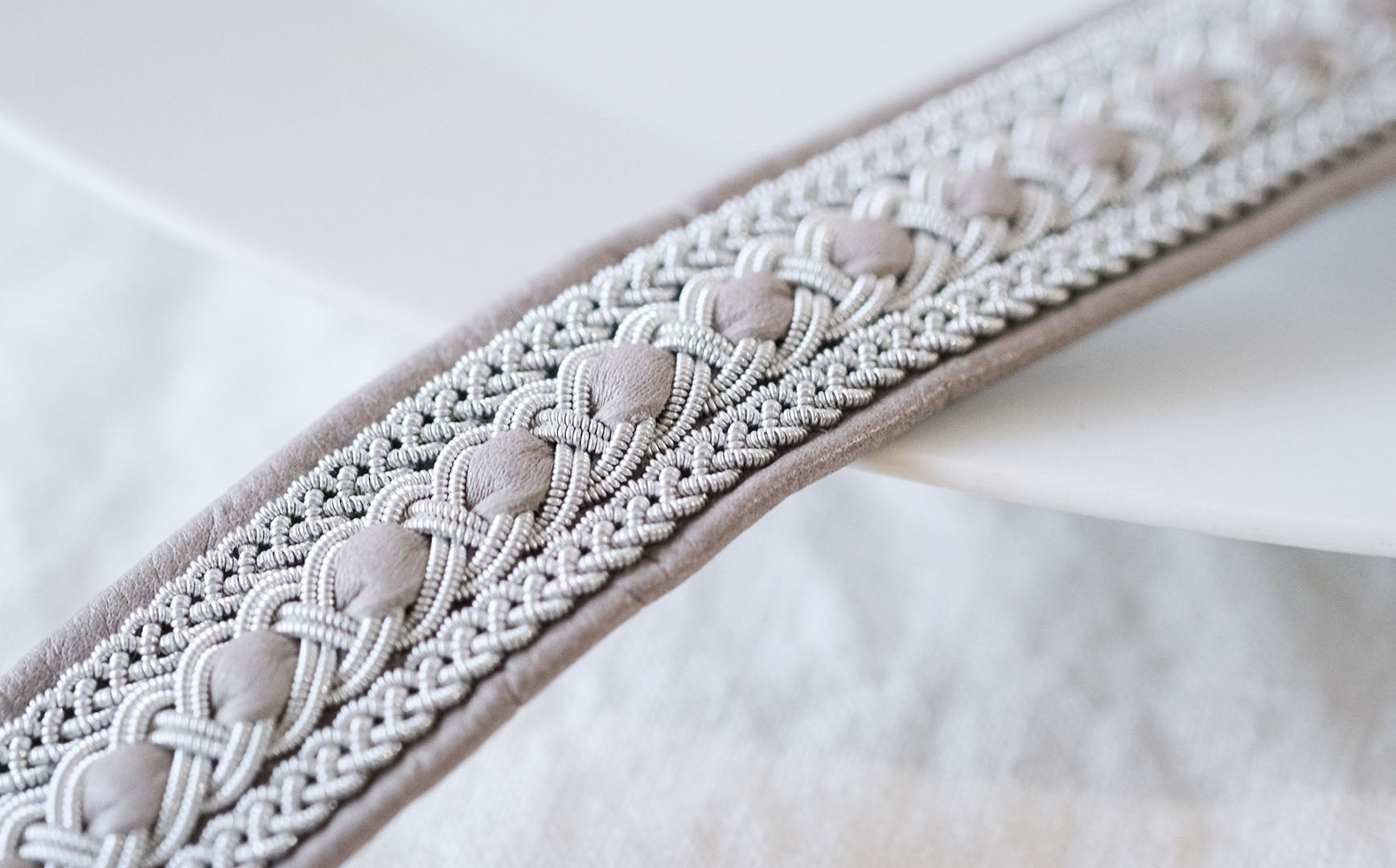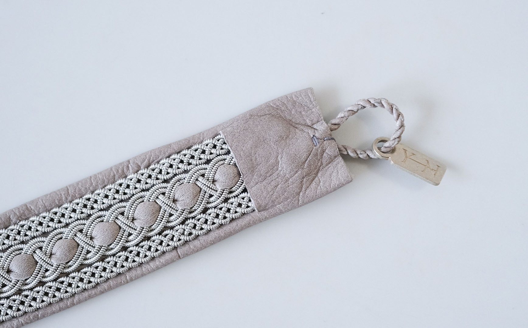 このページでご紹介している「BRC028」は四つ編みが3列並んだデザインです。上下はシンプルに、中心は革を織り交ぜています。
