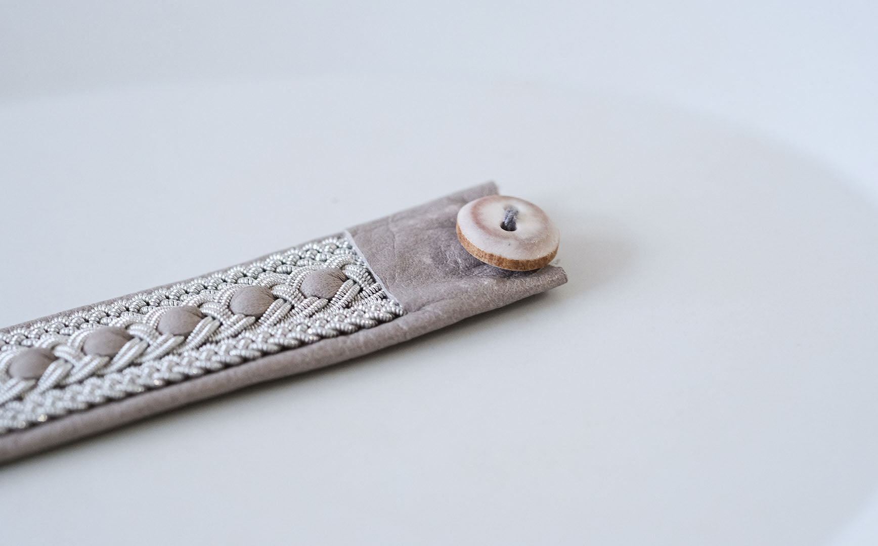 ▲ボタンを留める紐もトナカイの革を編んでつくられています
