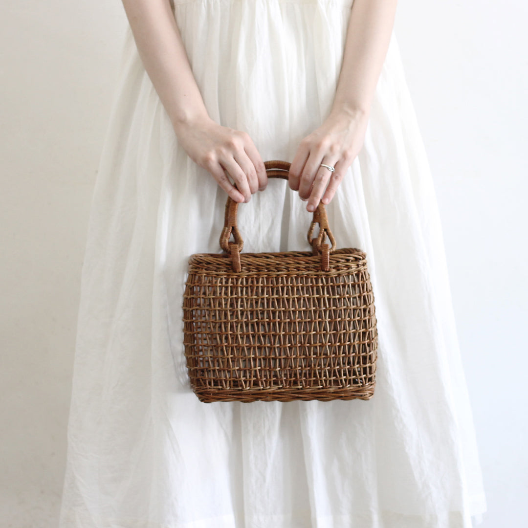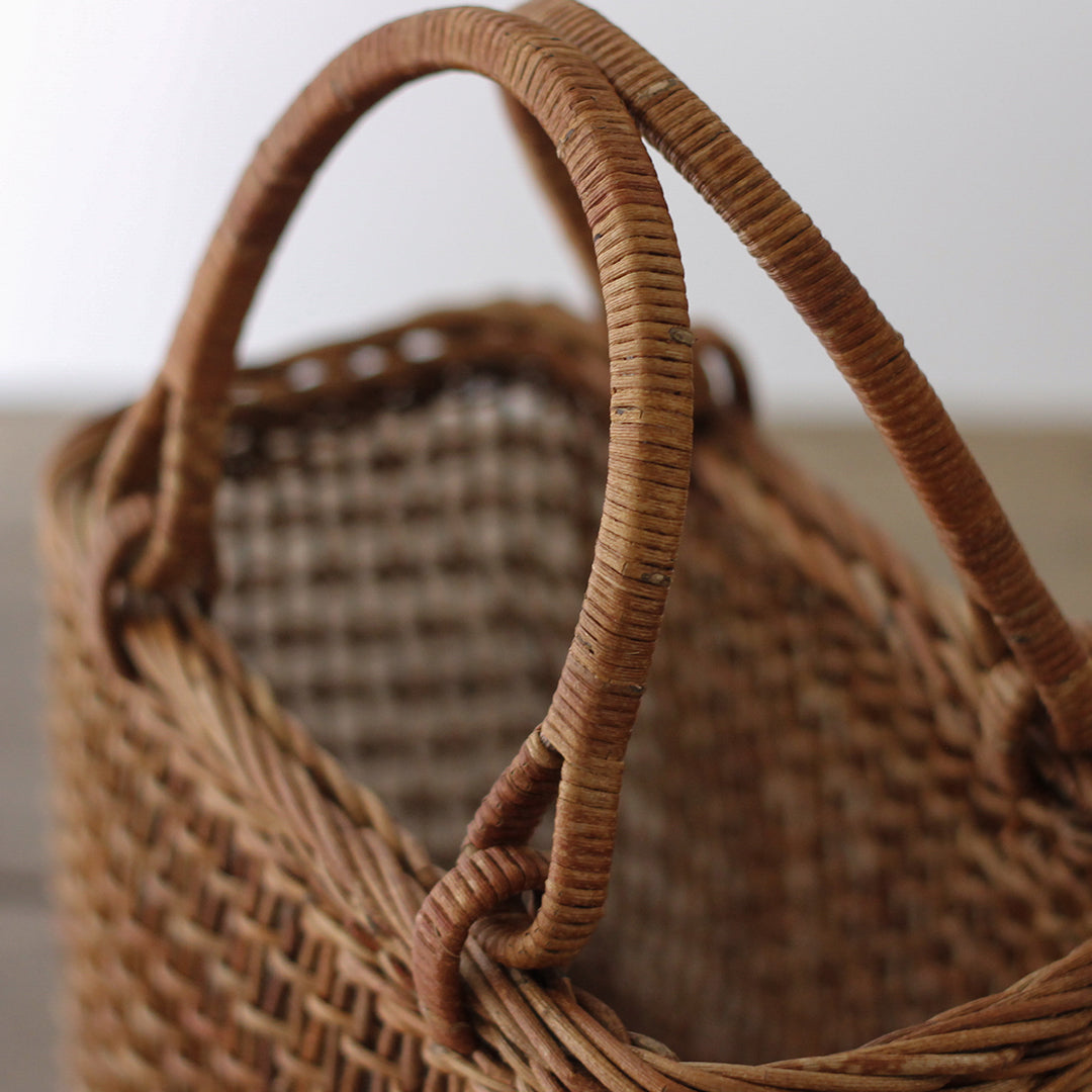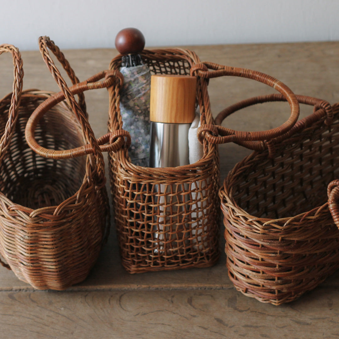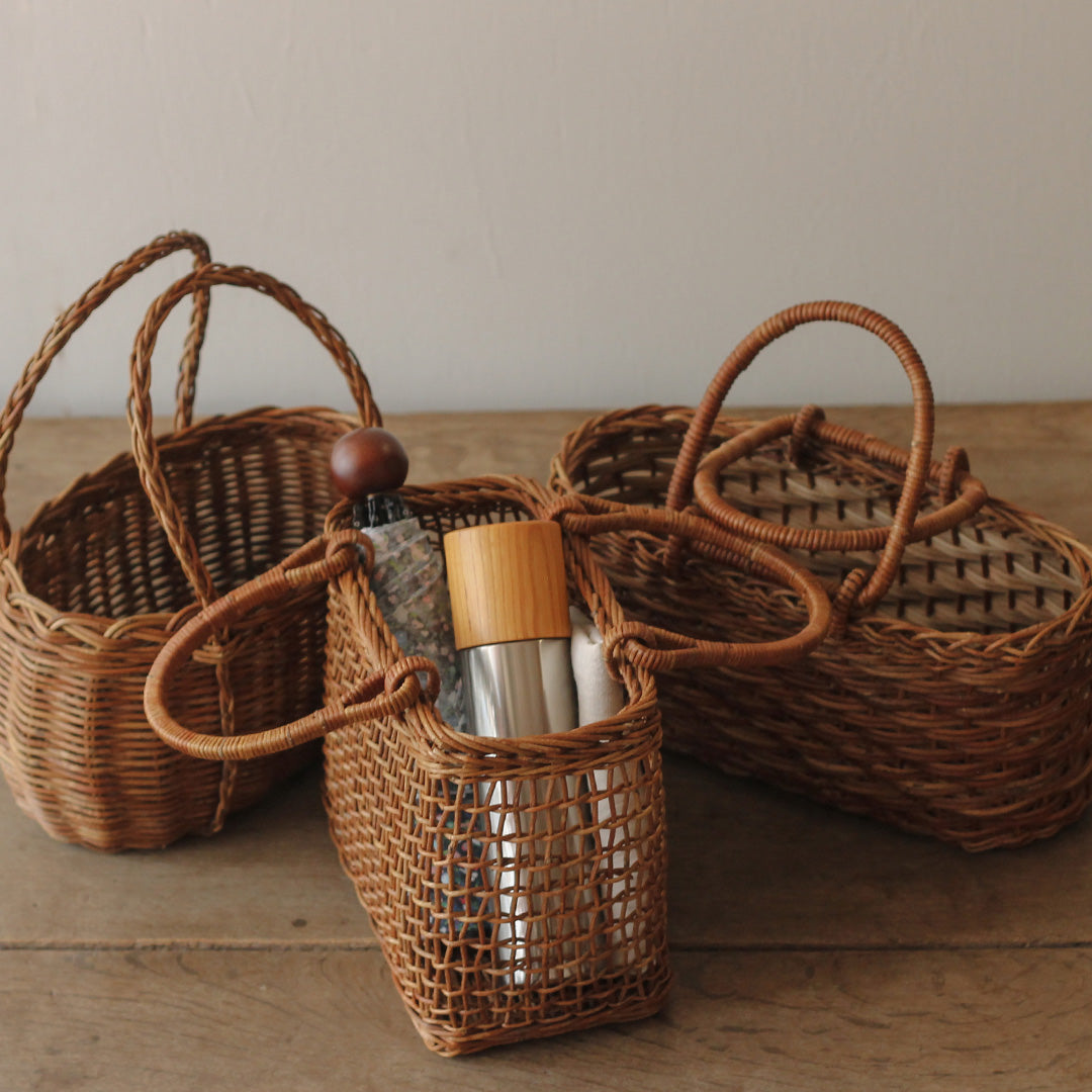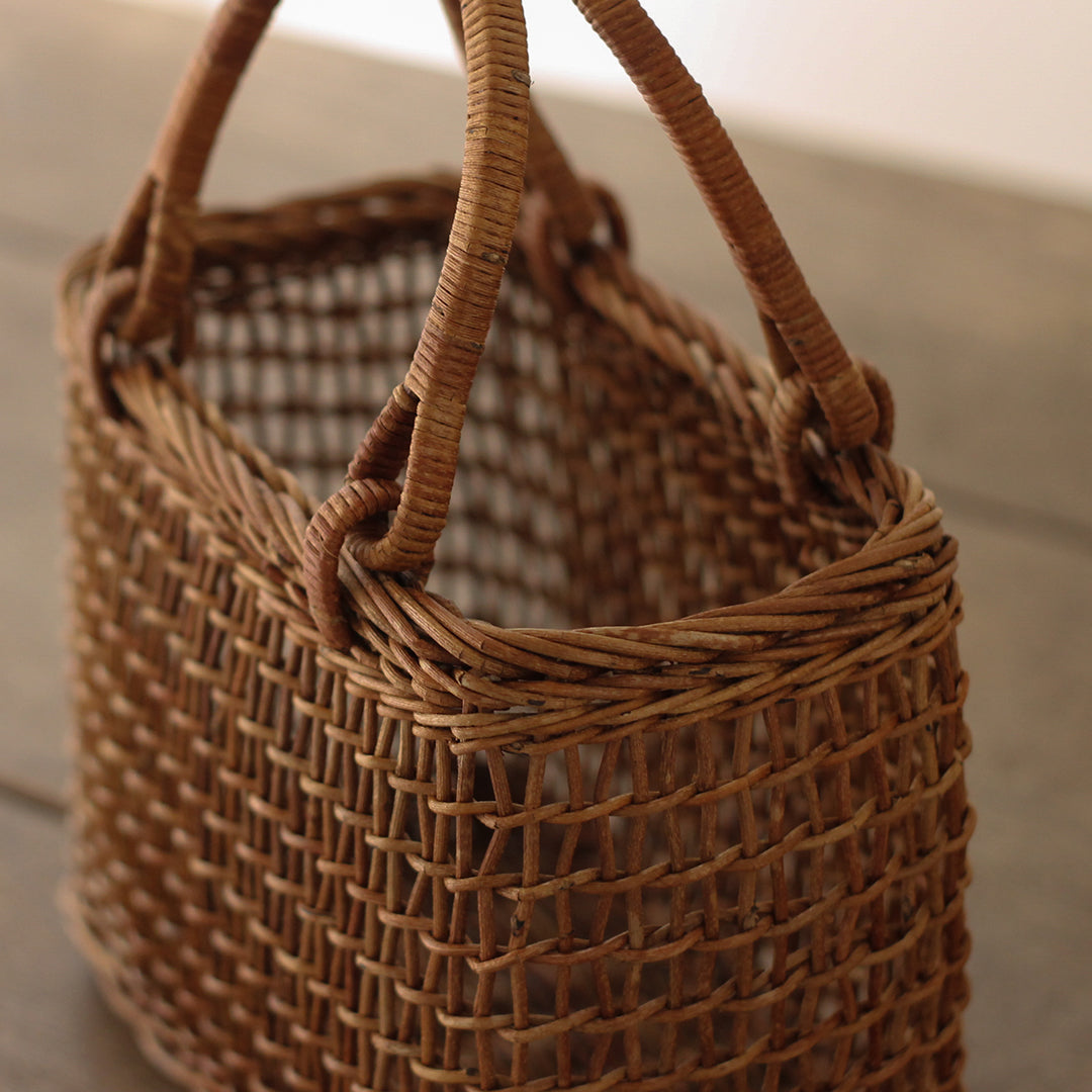 「駒型細目こだし編み 小」はハンドバッグのような持ちやすいサイズ。コンパクトながらに収納力のあるかごです。
