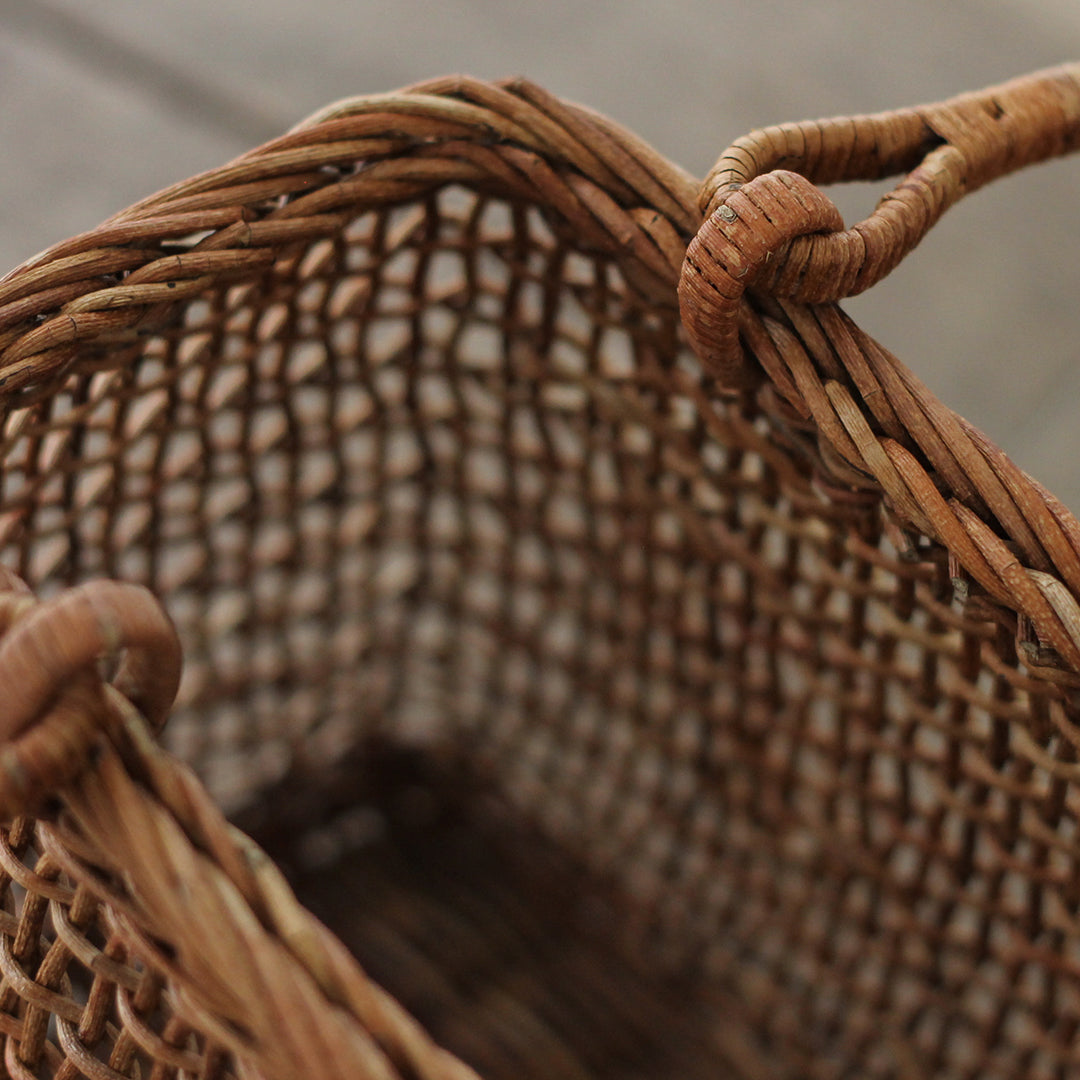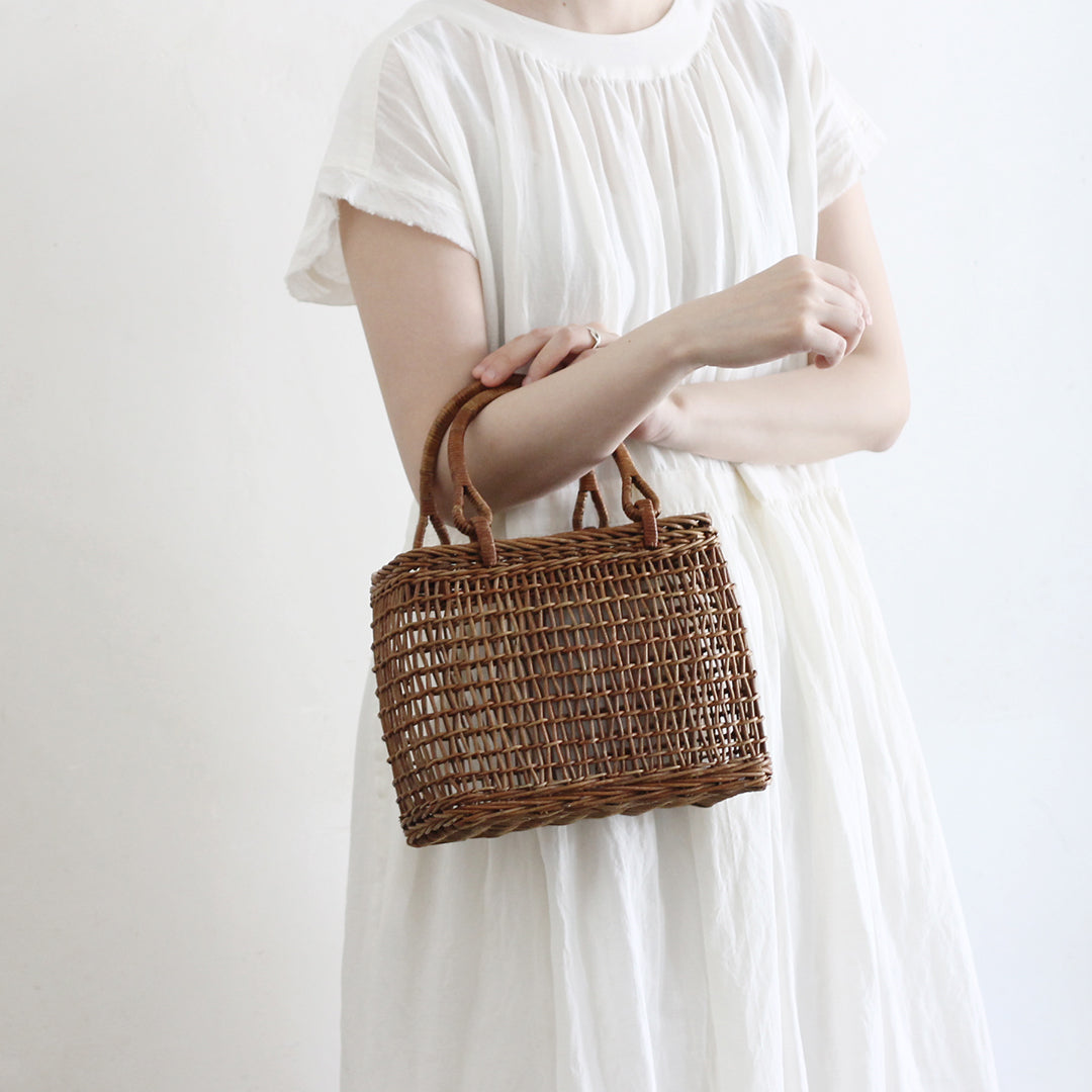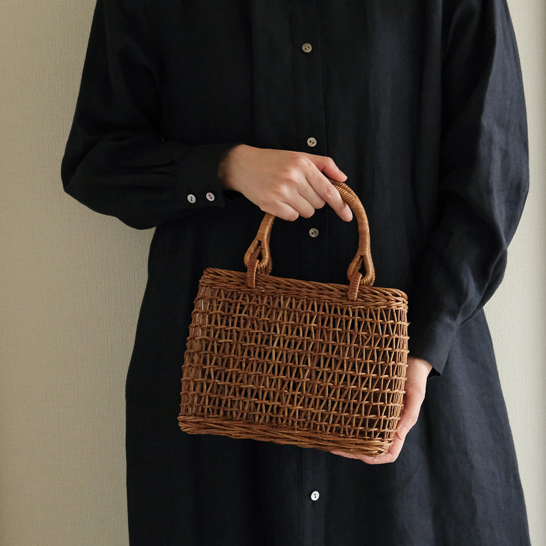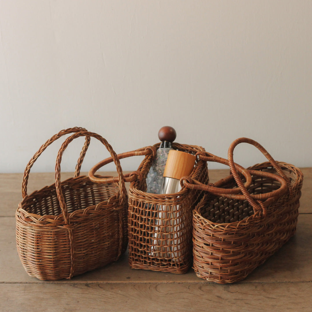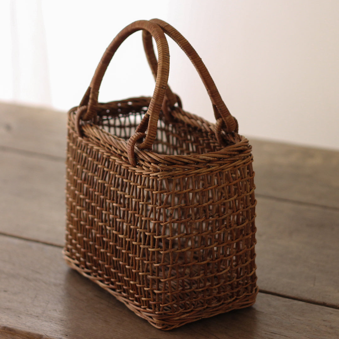 「駒型細目こだし編み 小」はハンドバッグのような持ちやすいサイズ。コンパクトながらに収納力のあるかごです。