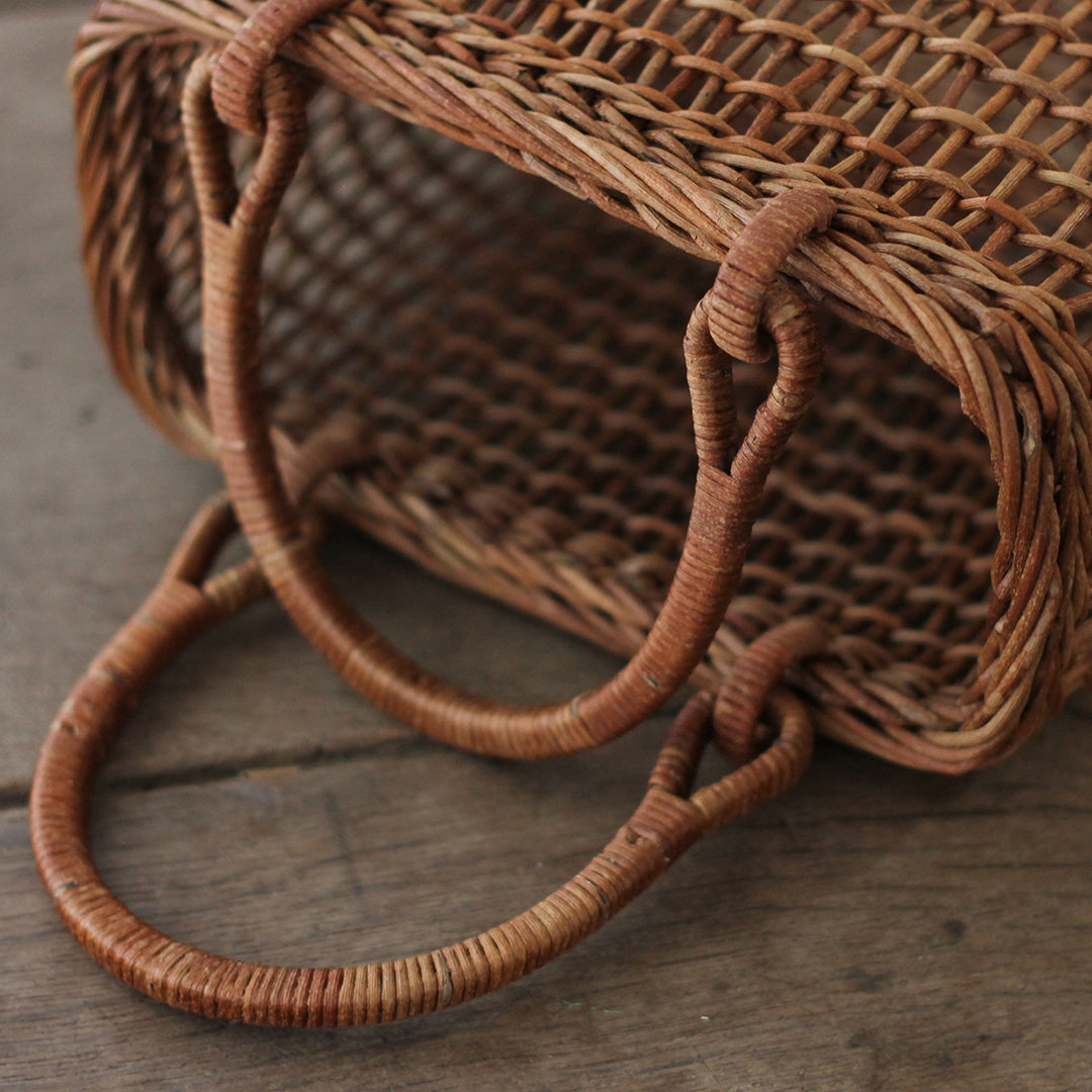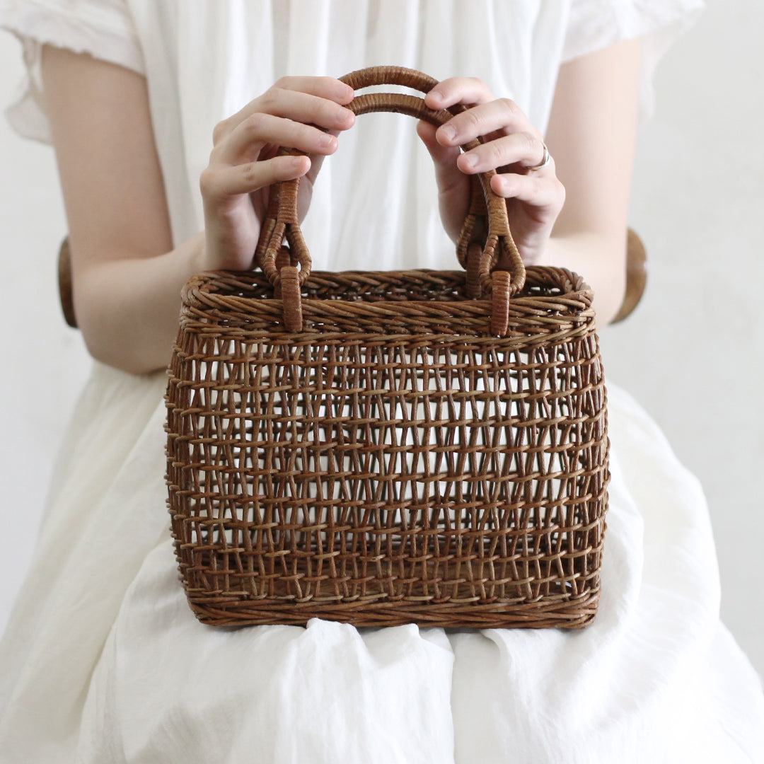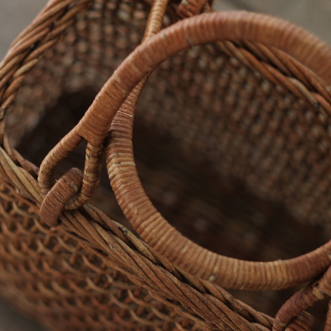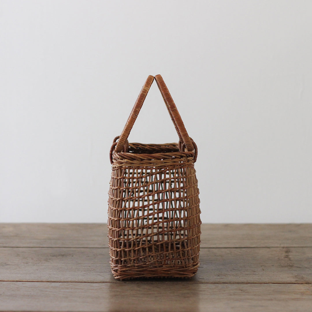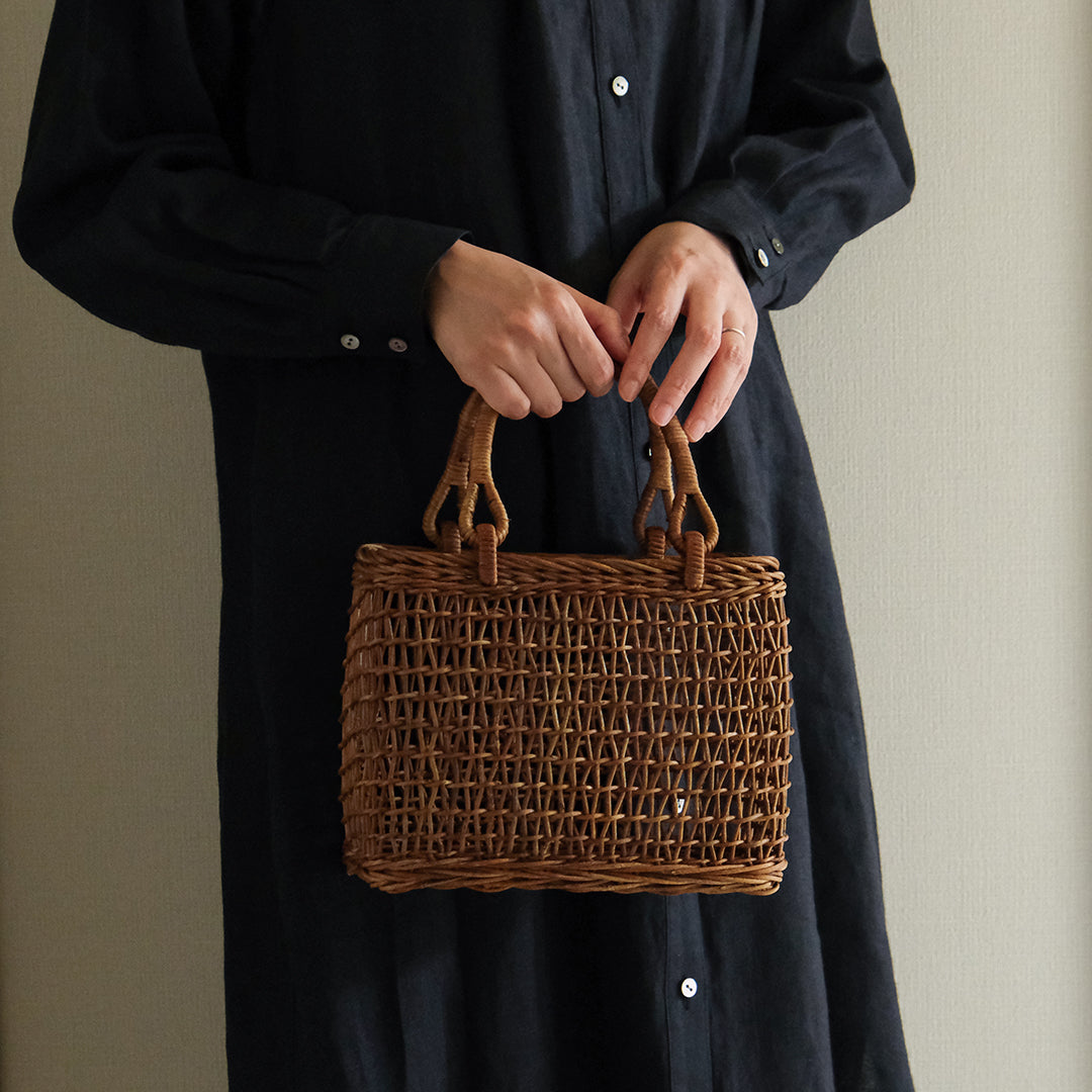 「駒型細目こだし編み 小」はハンドバッグのような持ちやすいサイズ。コンパクトながらに収納力のあるかごです。