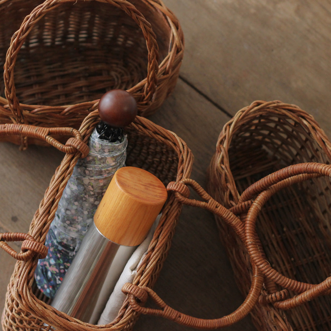 コンパクトなサイズのかごの中では高さのあるデザイン。貴重品に水筒、日傘など、普段の持ち物はしっかり入ります。
