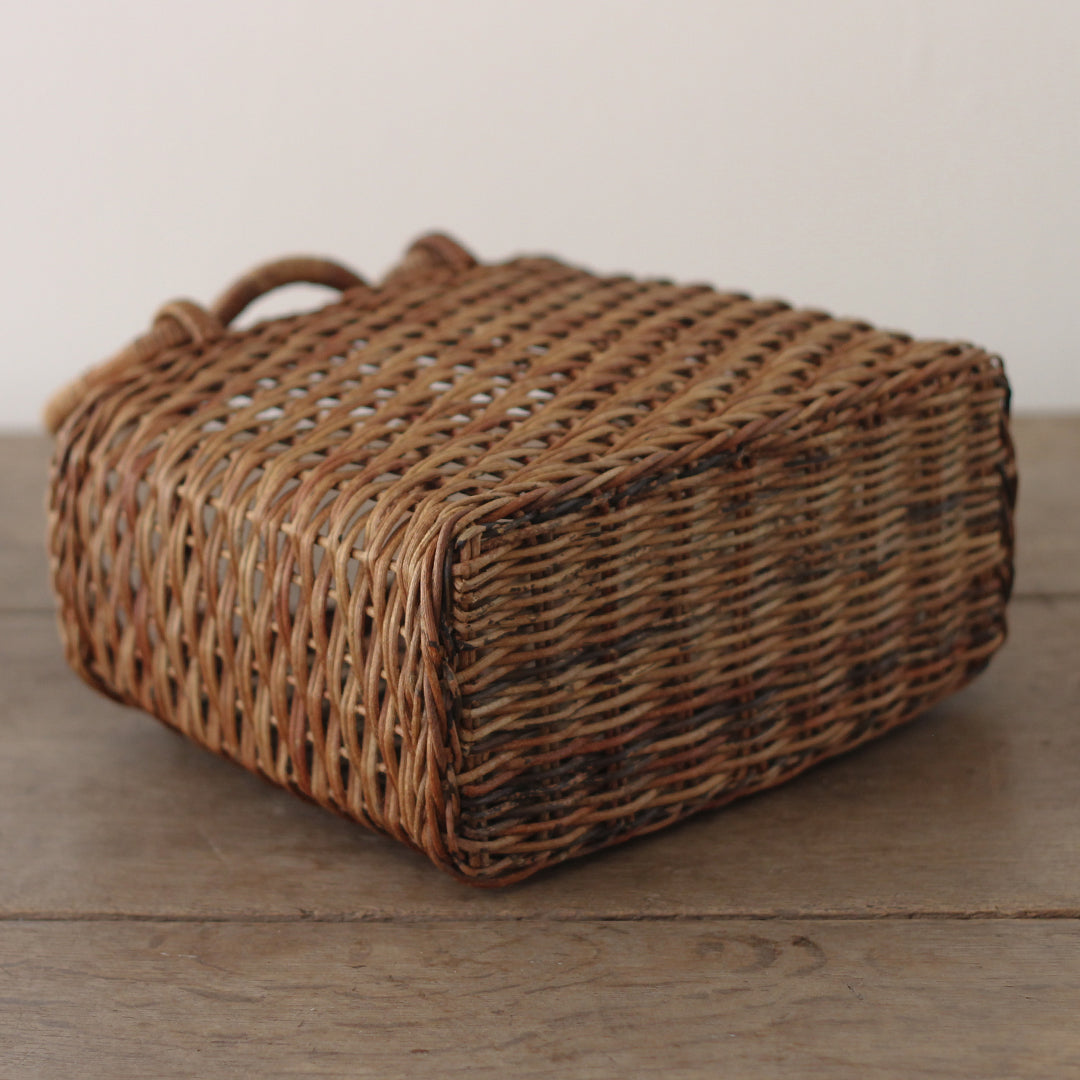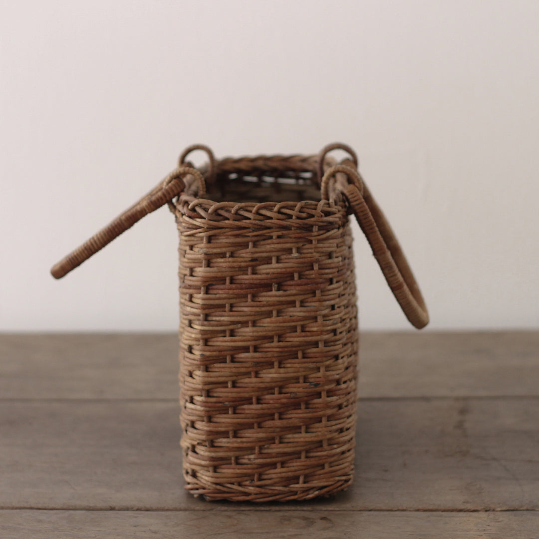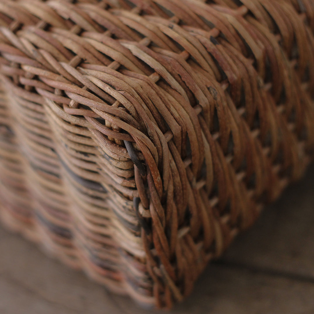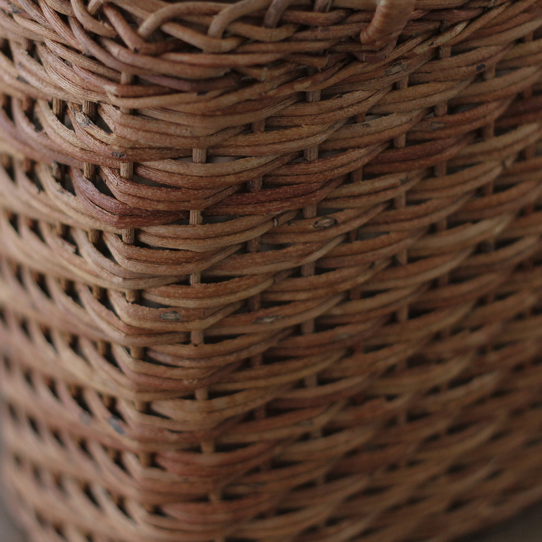 「駒型ホラ編み 中」はシンプルなスクエア型のハンドバッグサイズ。季節を選ばず使いやすいかごです。