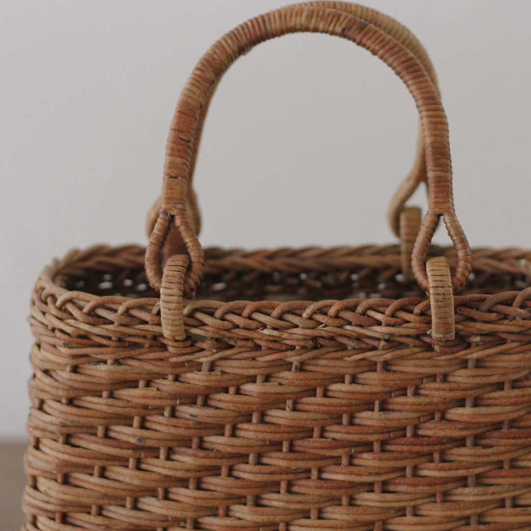 ずっと眺めていられる美しい編み目は、見る角度や照明によって表情を変えます。かごの置き場所を変えて、いつもと違う表情を探してみてください。