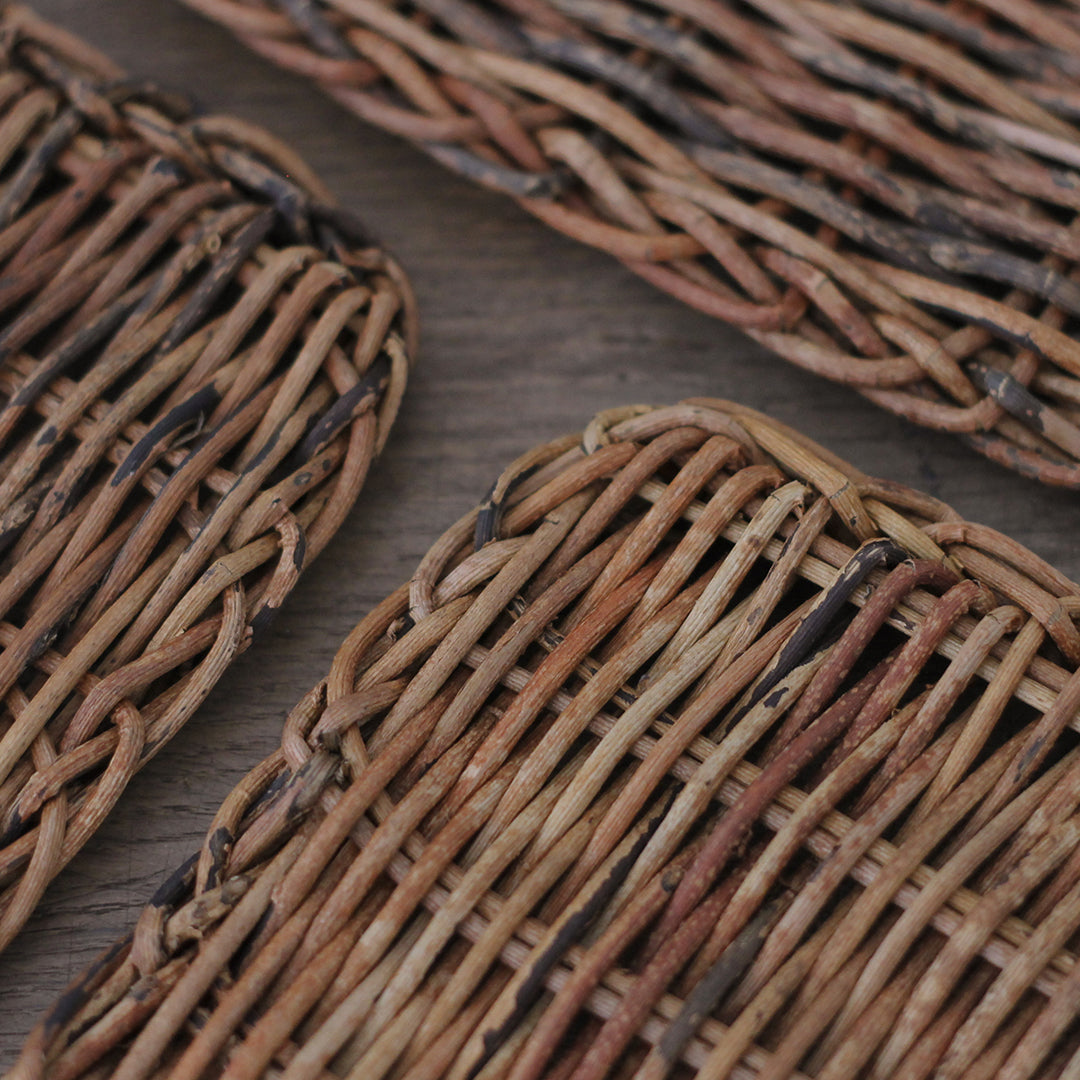 良質なあけびと確かな技術で編まれているのでとても丈夫なグラタン皿敷き。収納場所もかさばらない、さっと取り出して使いやすいアイテムです。