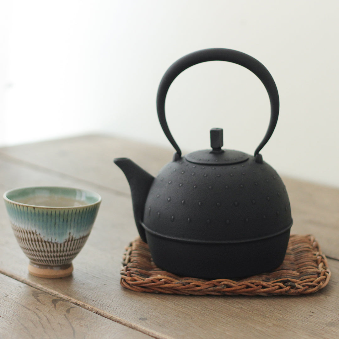 ▲[空間鋳造]南部鉄瓶 Sayu を乗せて