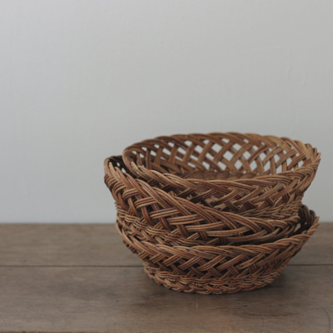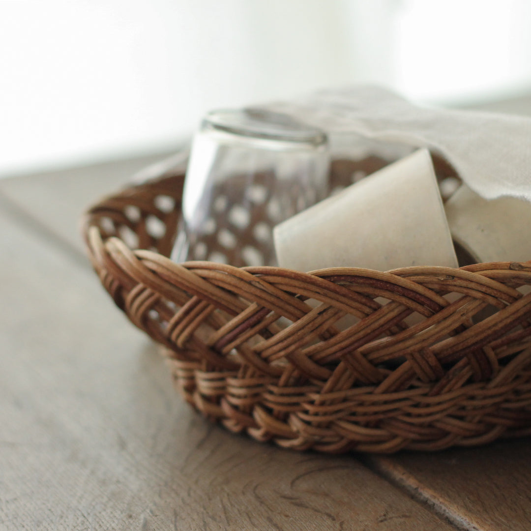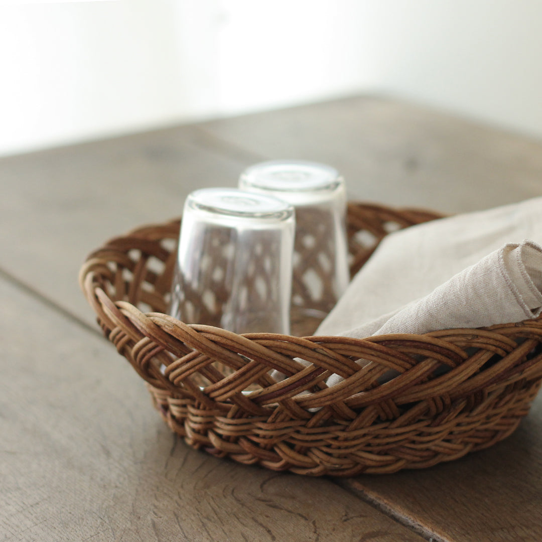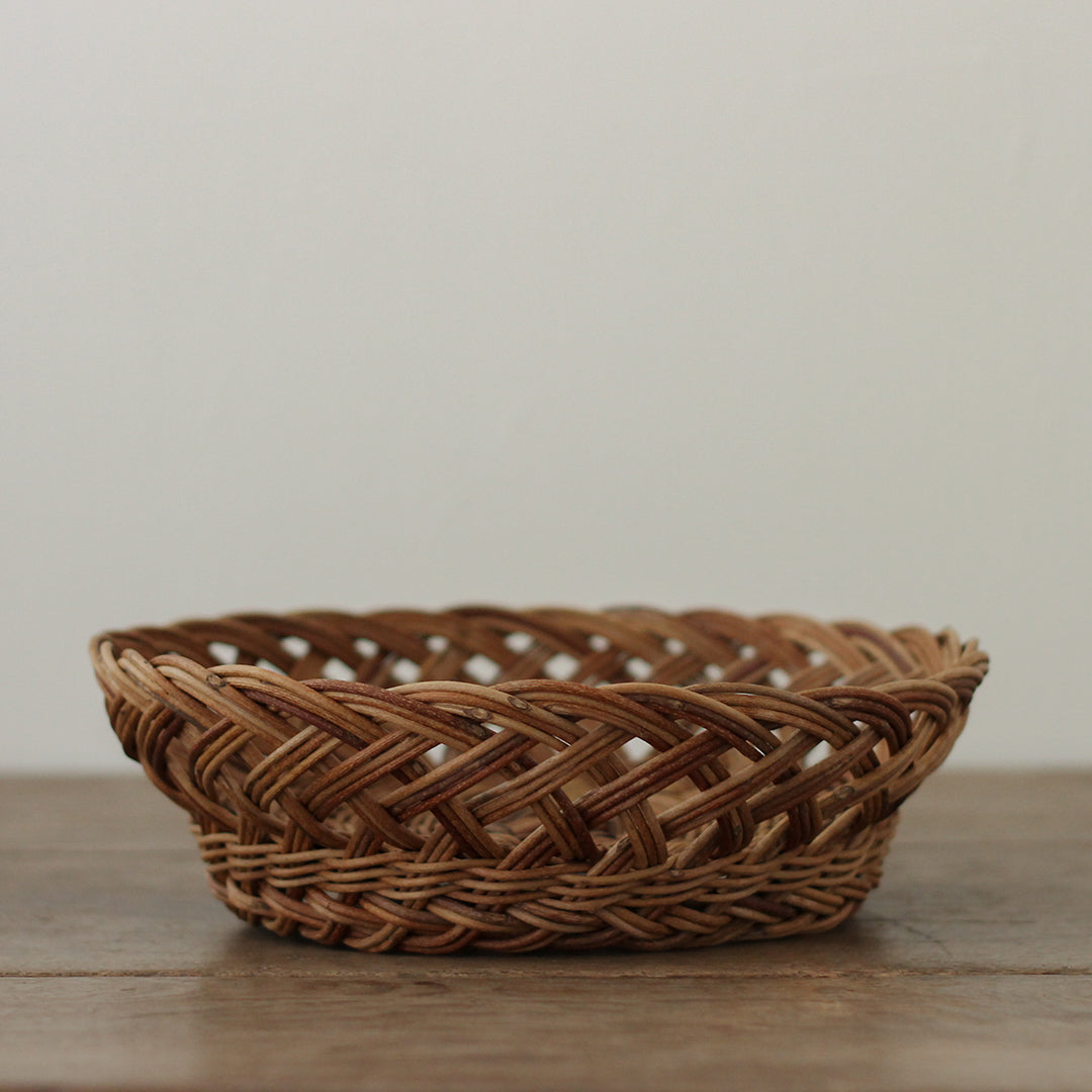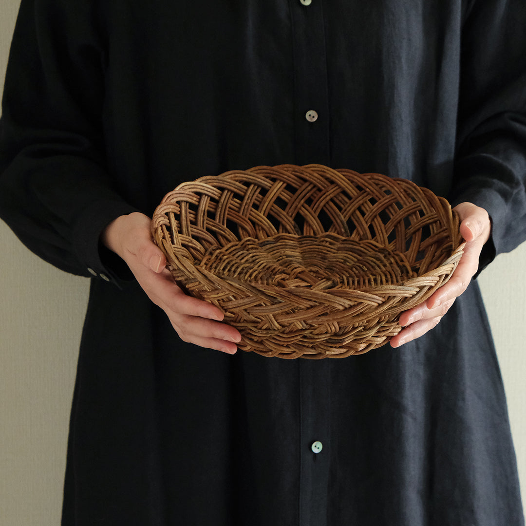あけびの「新波型皿 大」は台所、食卓、リビング、どこにでもお置いておきたたくなるかご。軽くて丈夫なかごはどんな場所でも大活躍。