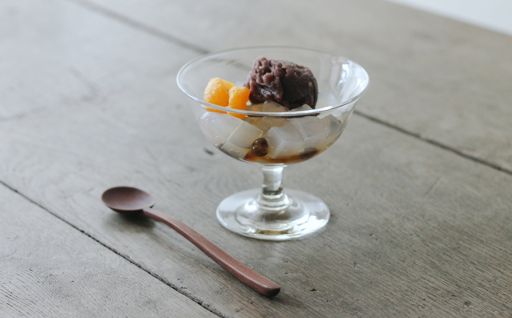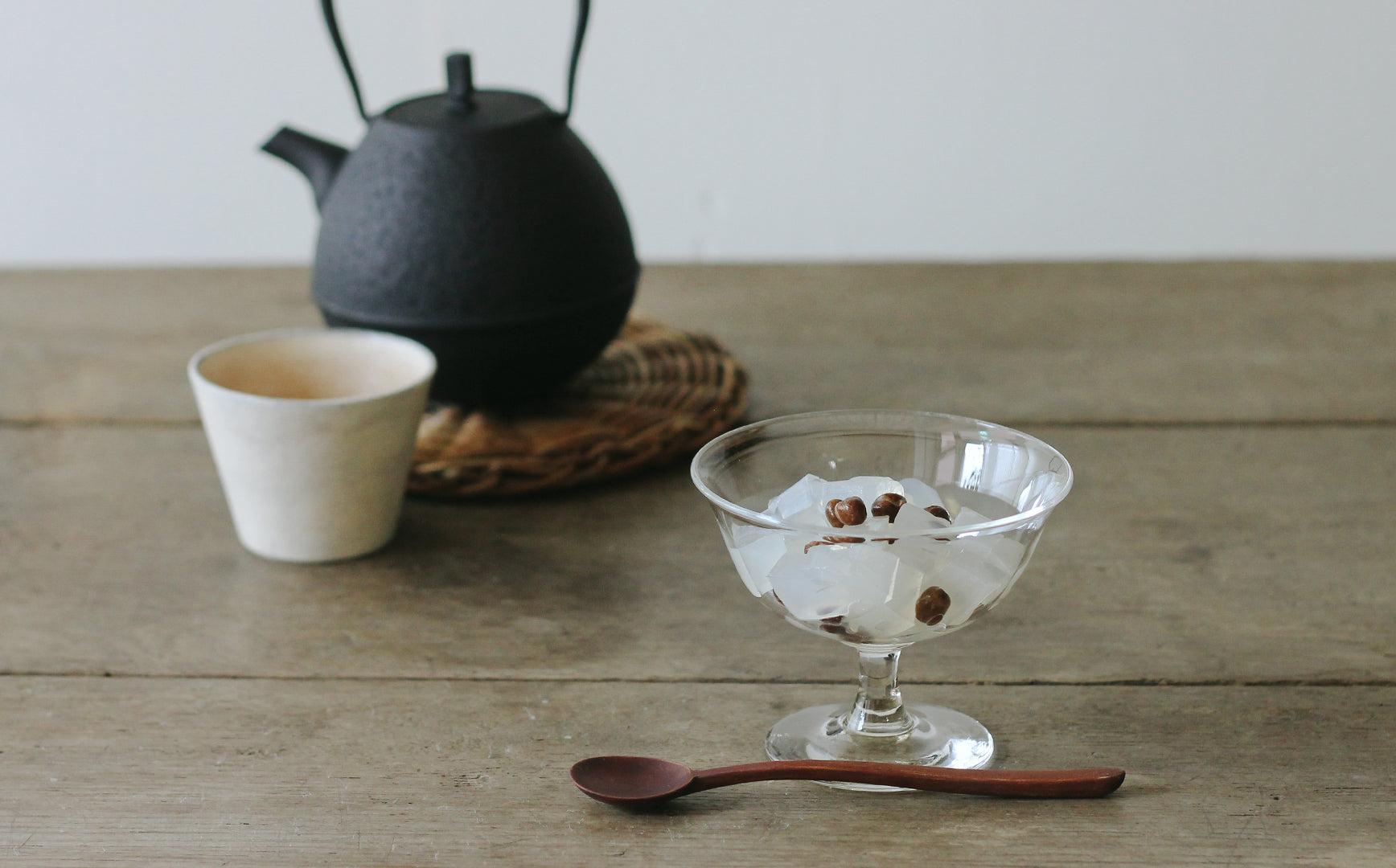 かき氷をイメージした「dessrt glass long」は、たっぷりと削り氷をいれても安心なように深さのあるボウルに。背も少し高くして、食卓で凛とした佇まいになるようにデザインしてもらいました。