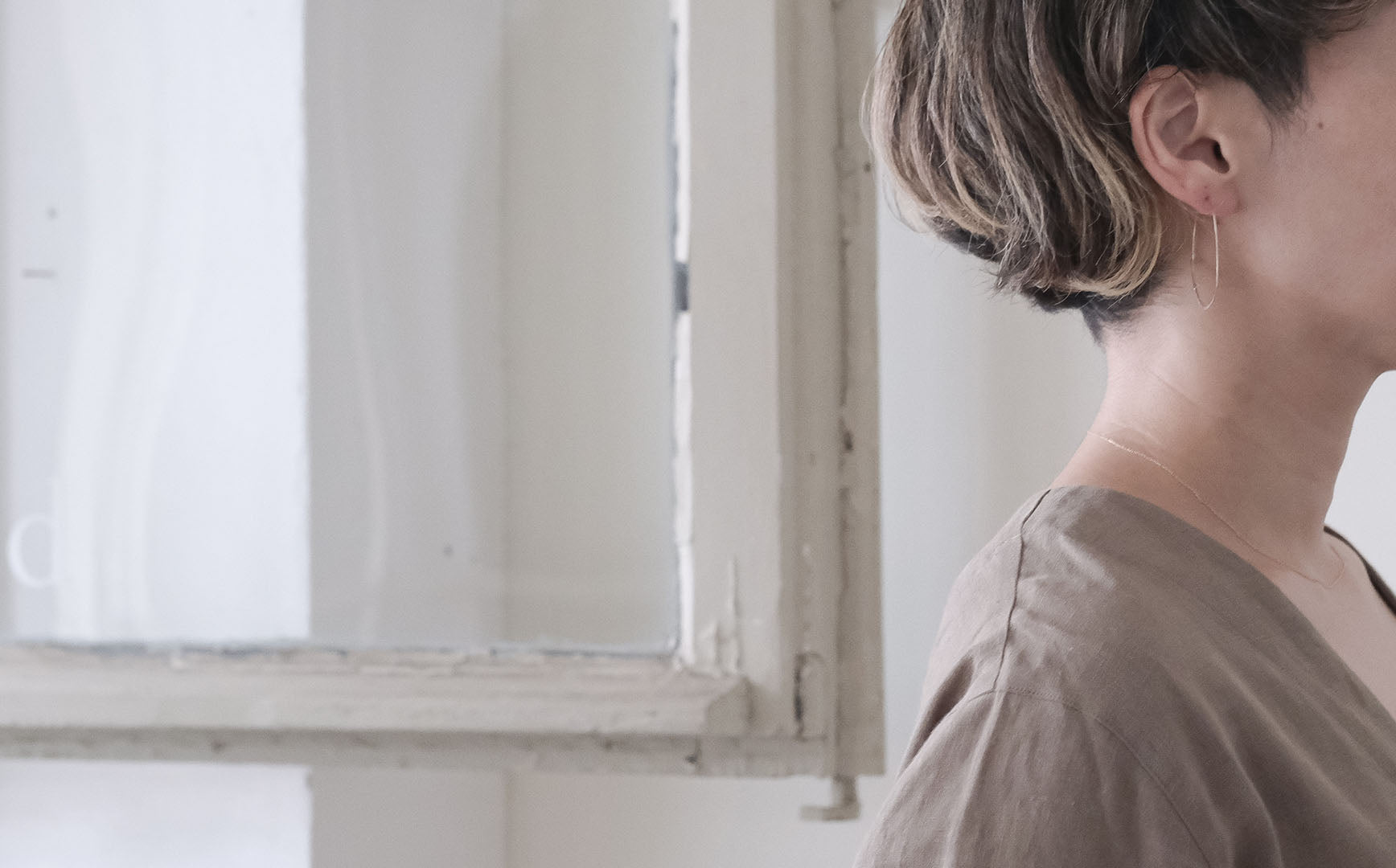 身につけると、華奢な輪がゆらゆらと耳元で揺れるピアス。動きによってくるくると変化する表情はとても豊かです。