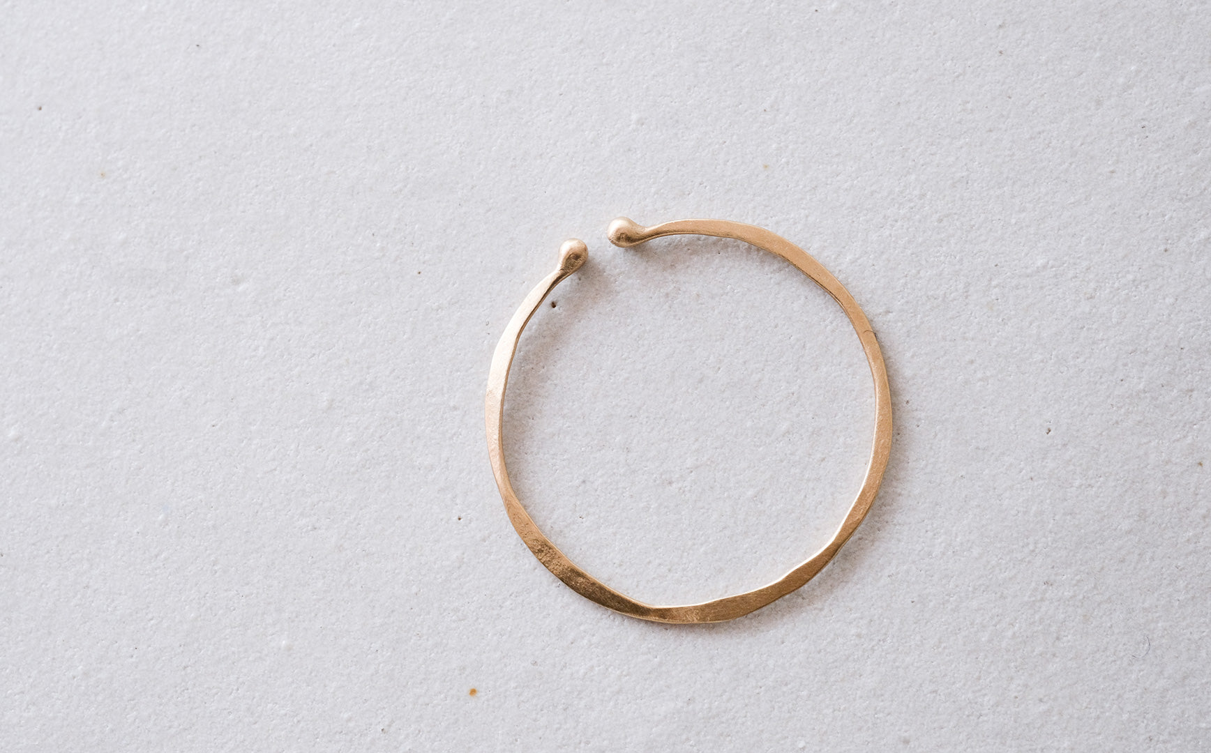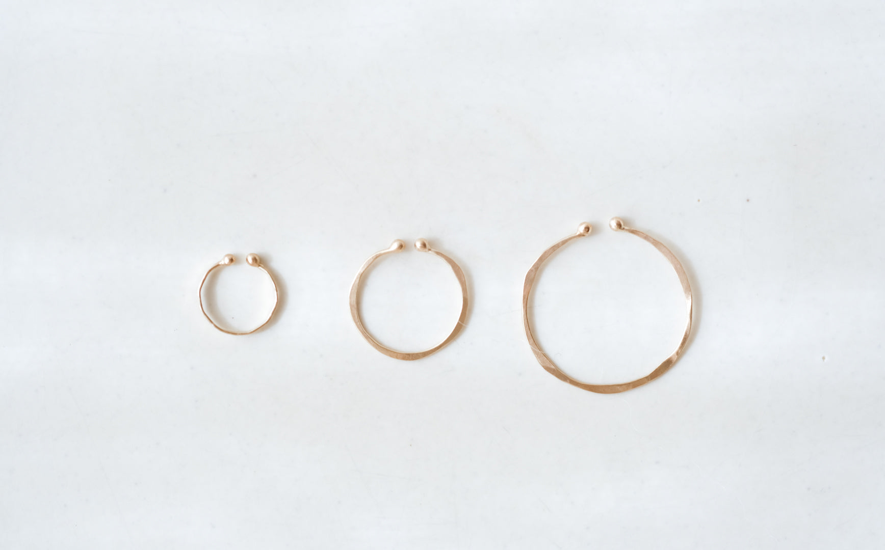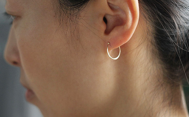 10金で輪っかをつくり、トントントンと金槌で槌目を残しながら形づくられた耳飾りです。