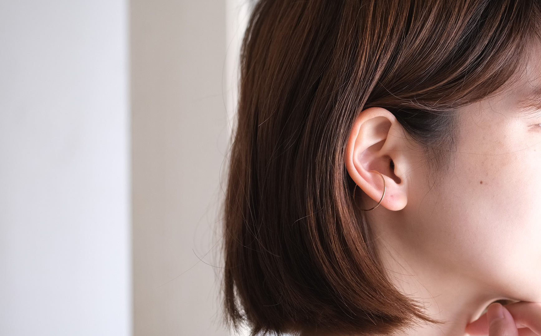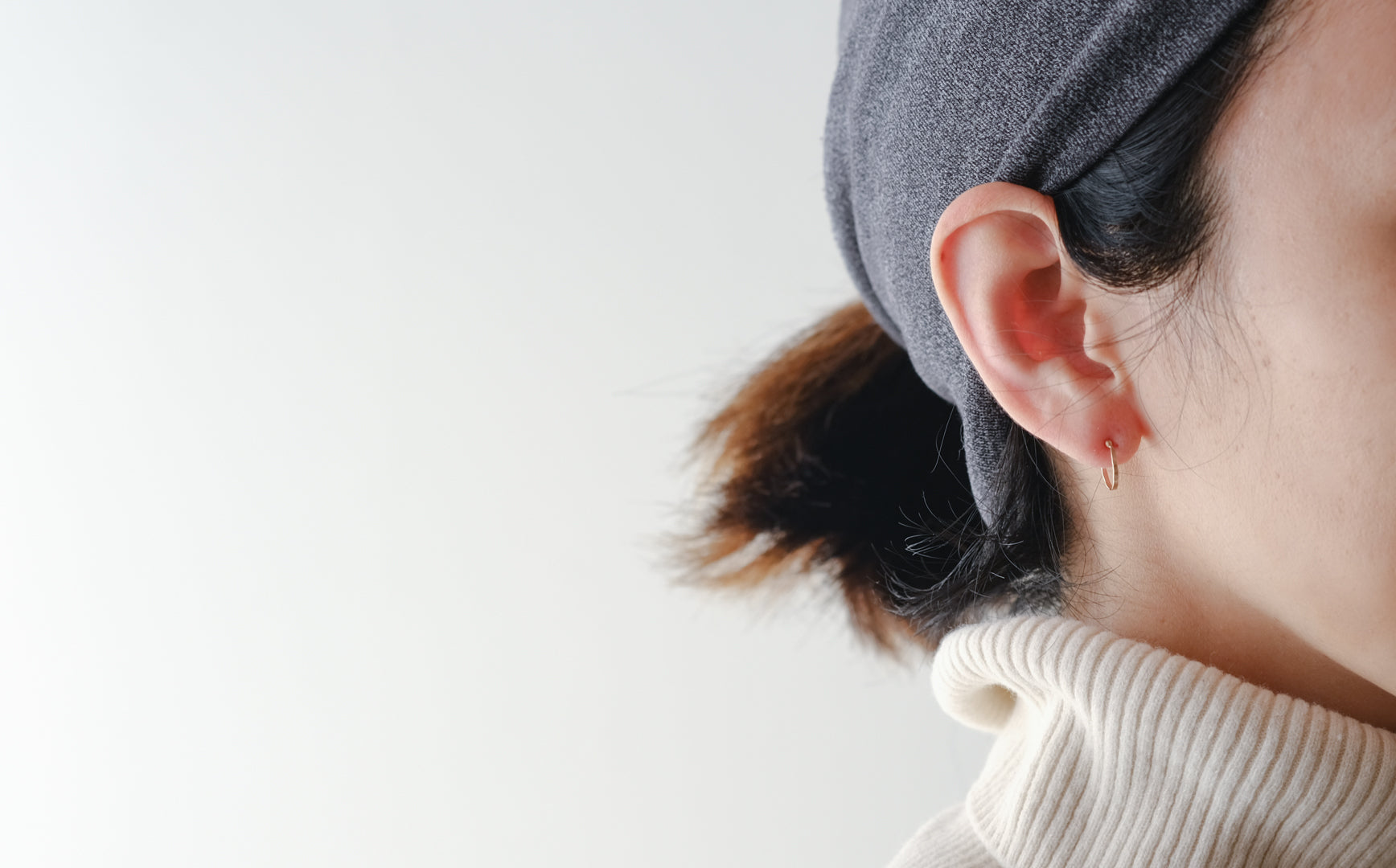 Atelier elのイヤリングのつけ方は、2通り。一つは耳たぶをひっぱって薄くしてつける方法。
