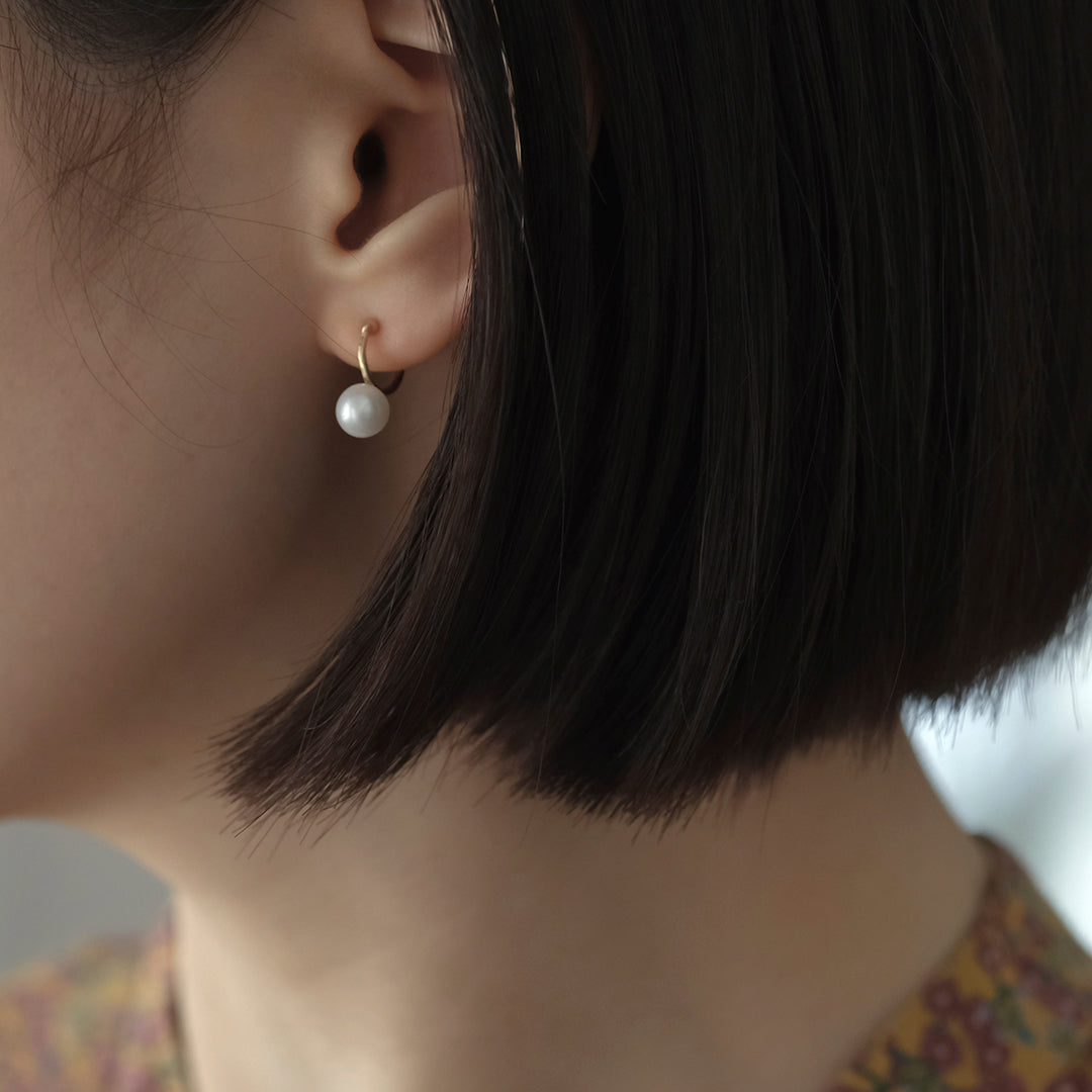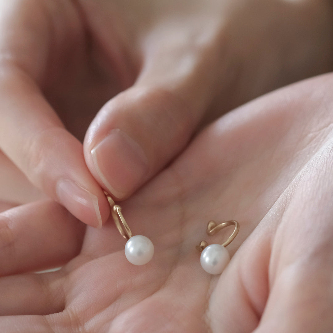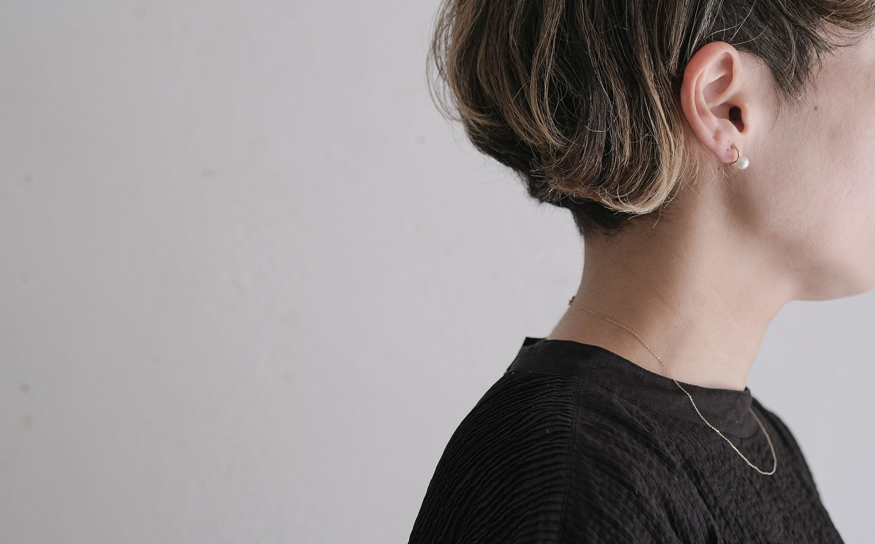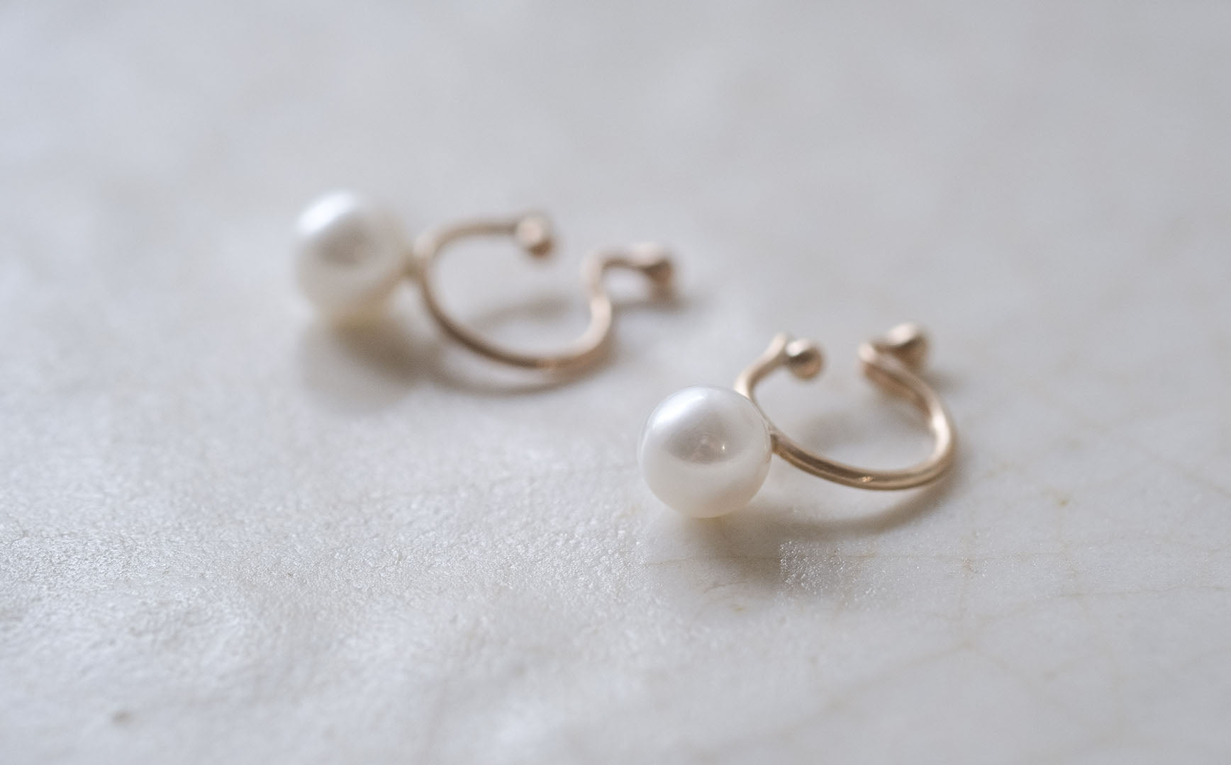 パールというとあらたまったシーンをイメージさせますが、このイヤリングの柔らかな佇まいは普段の装いにもなじみ、気負いなく身につけられます。