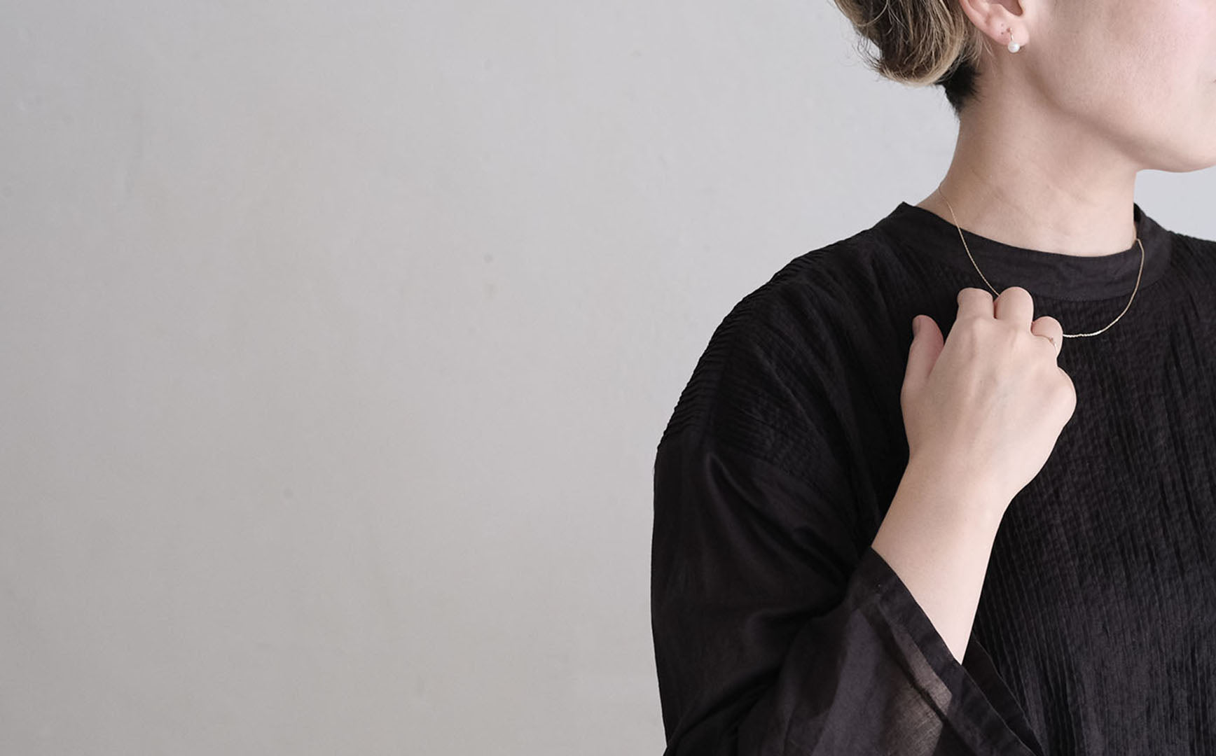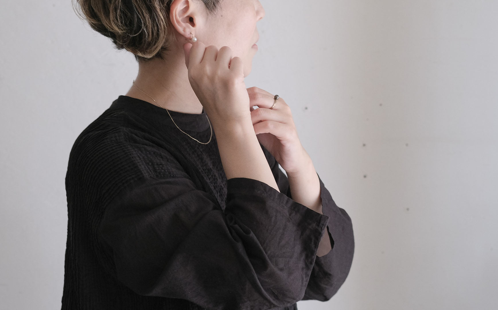 身支度を整えて耳元に添えると、その日一日を優しくつややかな雰囲気で包みこんでくれます。どこにも出かけない日にも自分自身を彩るために。装いにプラスしてはいかがでしょうか。