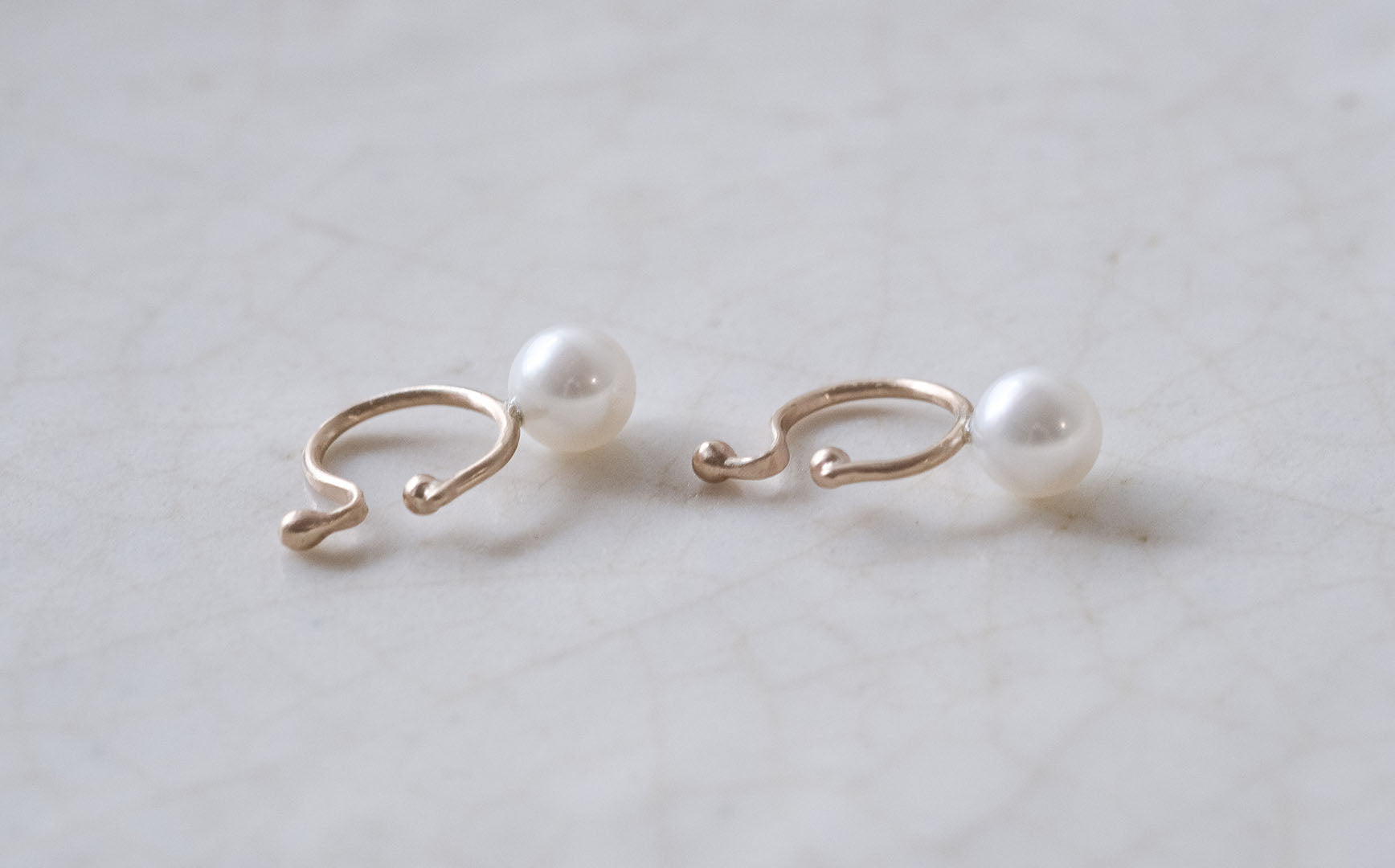 その点、Atelier elのイヤリングの留め具から手づくり。耳に挟むつくりで締めつけ感がないので、つけていることを忘れるほどなのです。