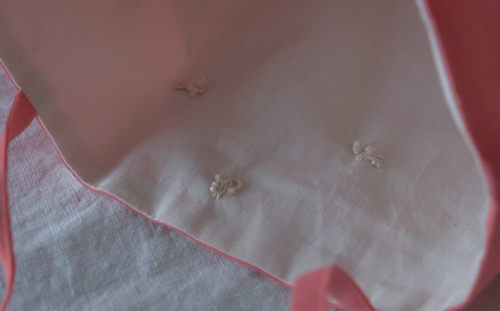 ivoryは無地ですがgreenとpinkには植物模様の生地が使われています。