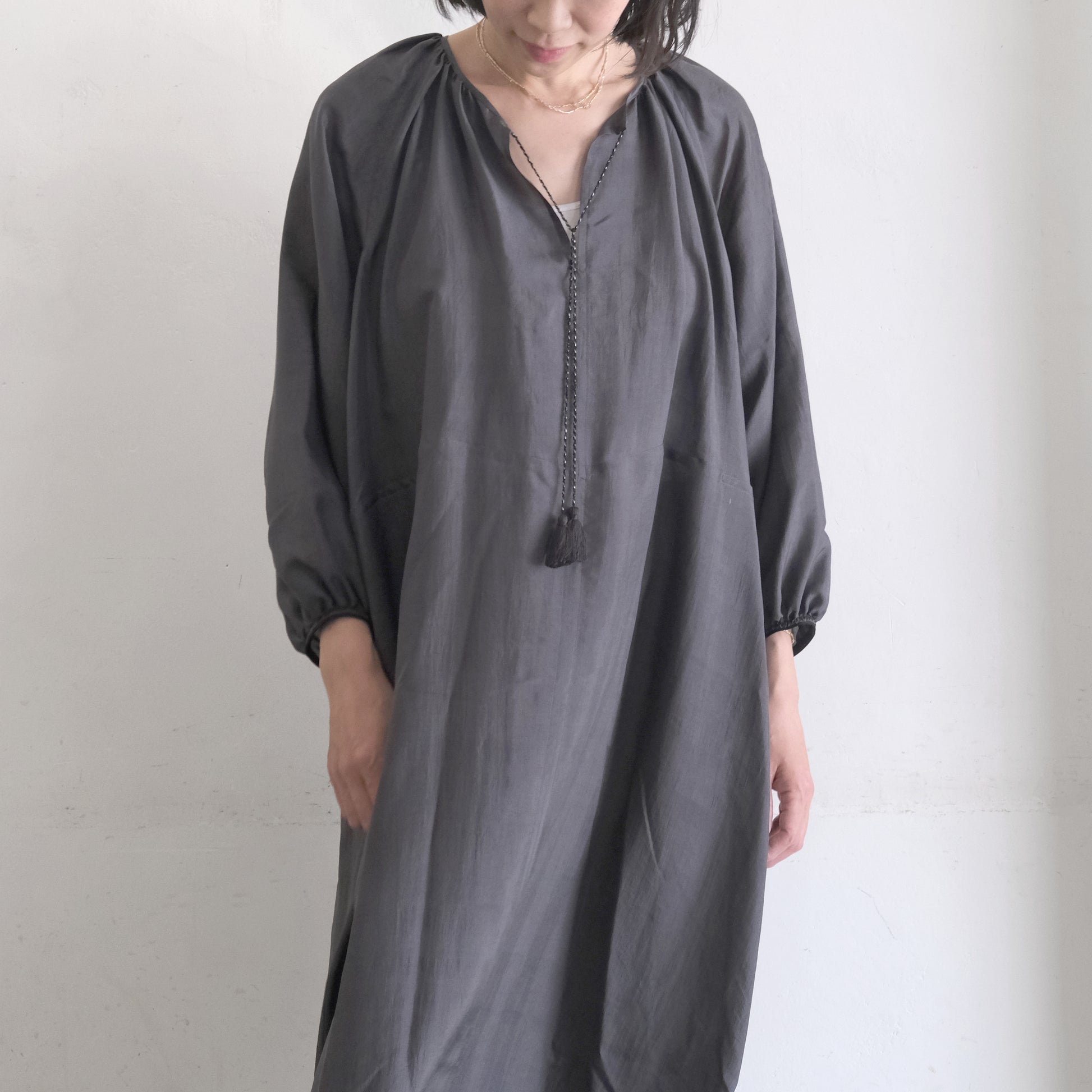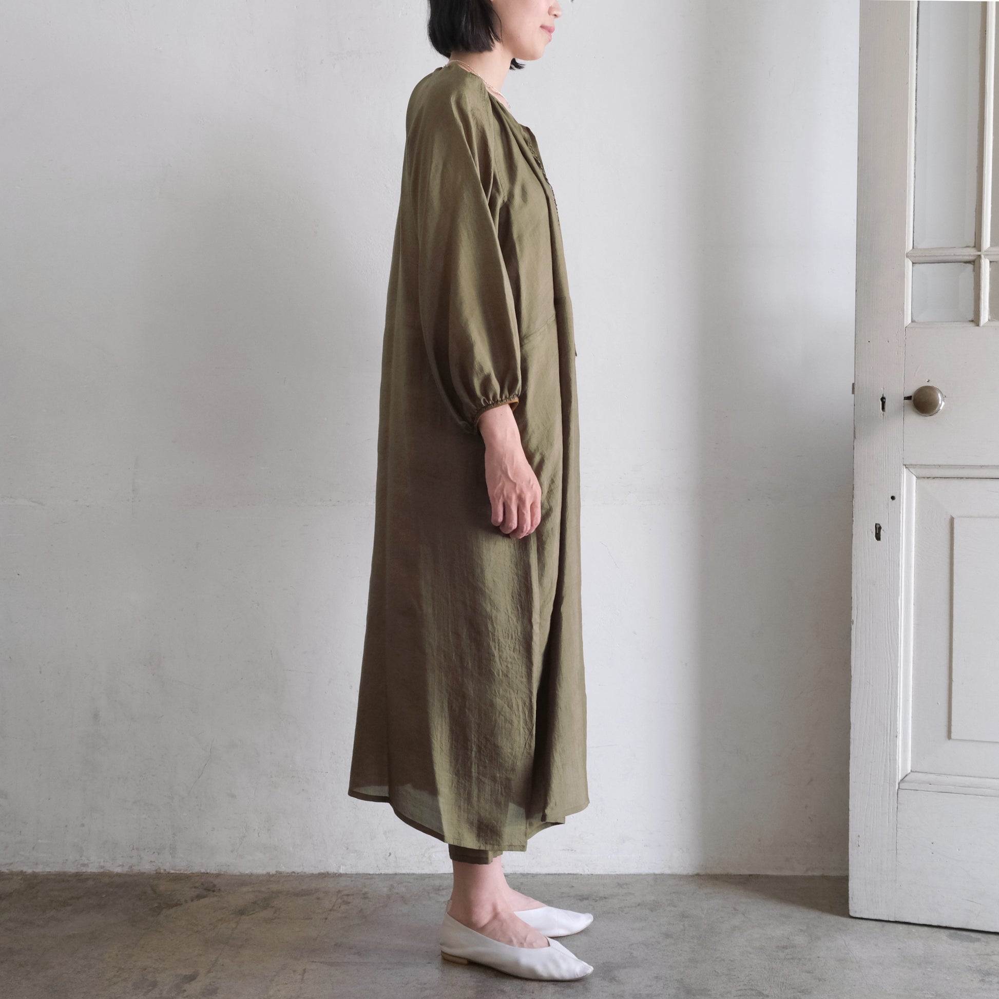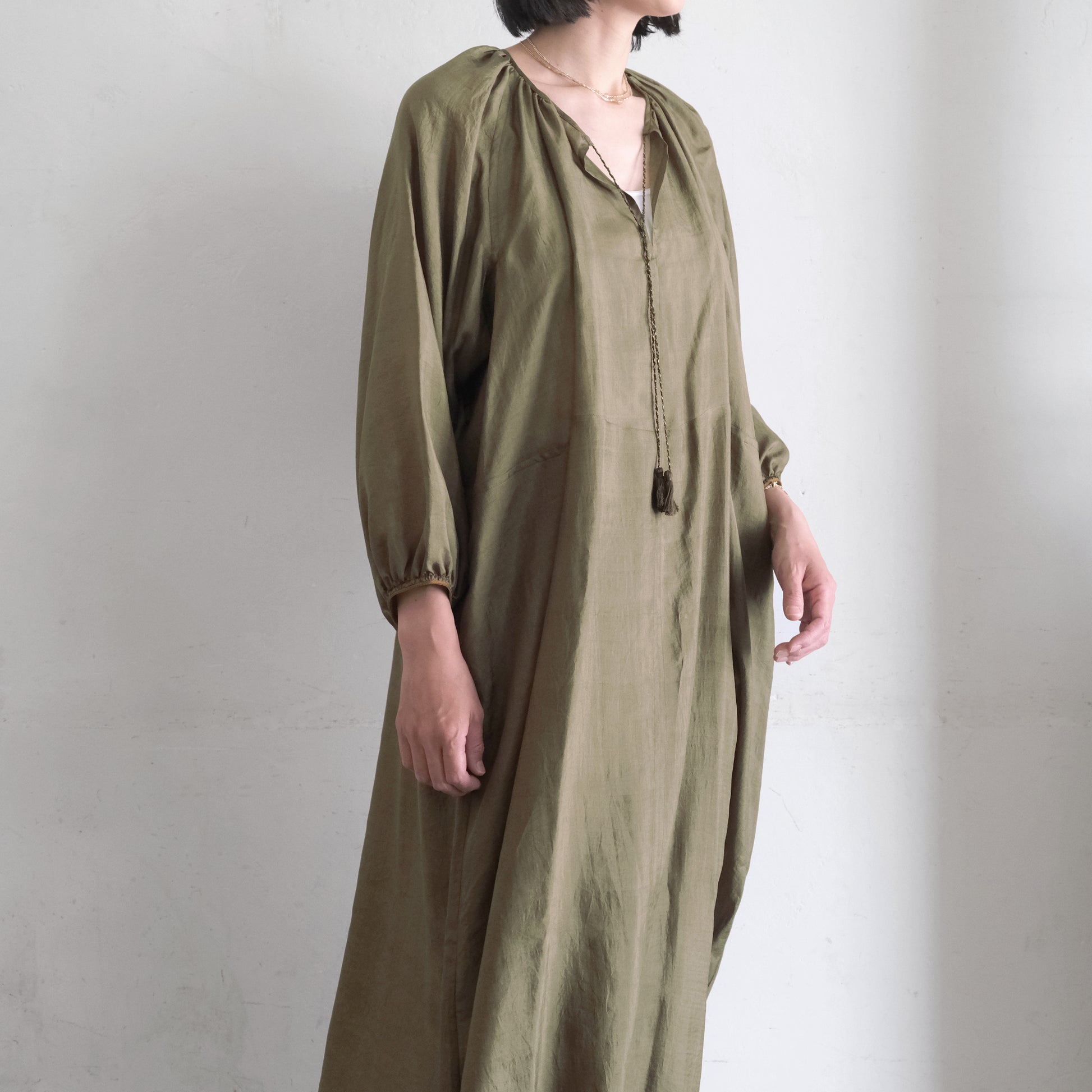 女性らしさを引き出す、ふんわりしたシルエットのドレス。動作に合わせて空気を含みさらりと揺れる余韻もきれいです。一枚で主役になるカフタンドレスは、流行に左右されない定番的な存在です。