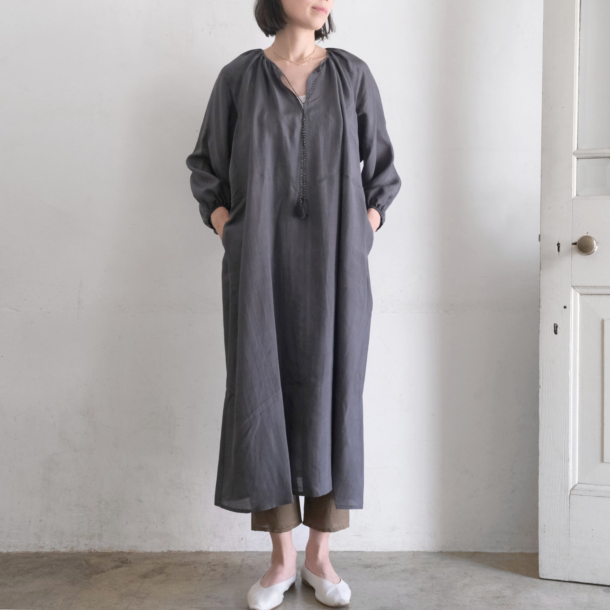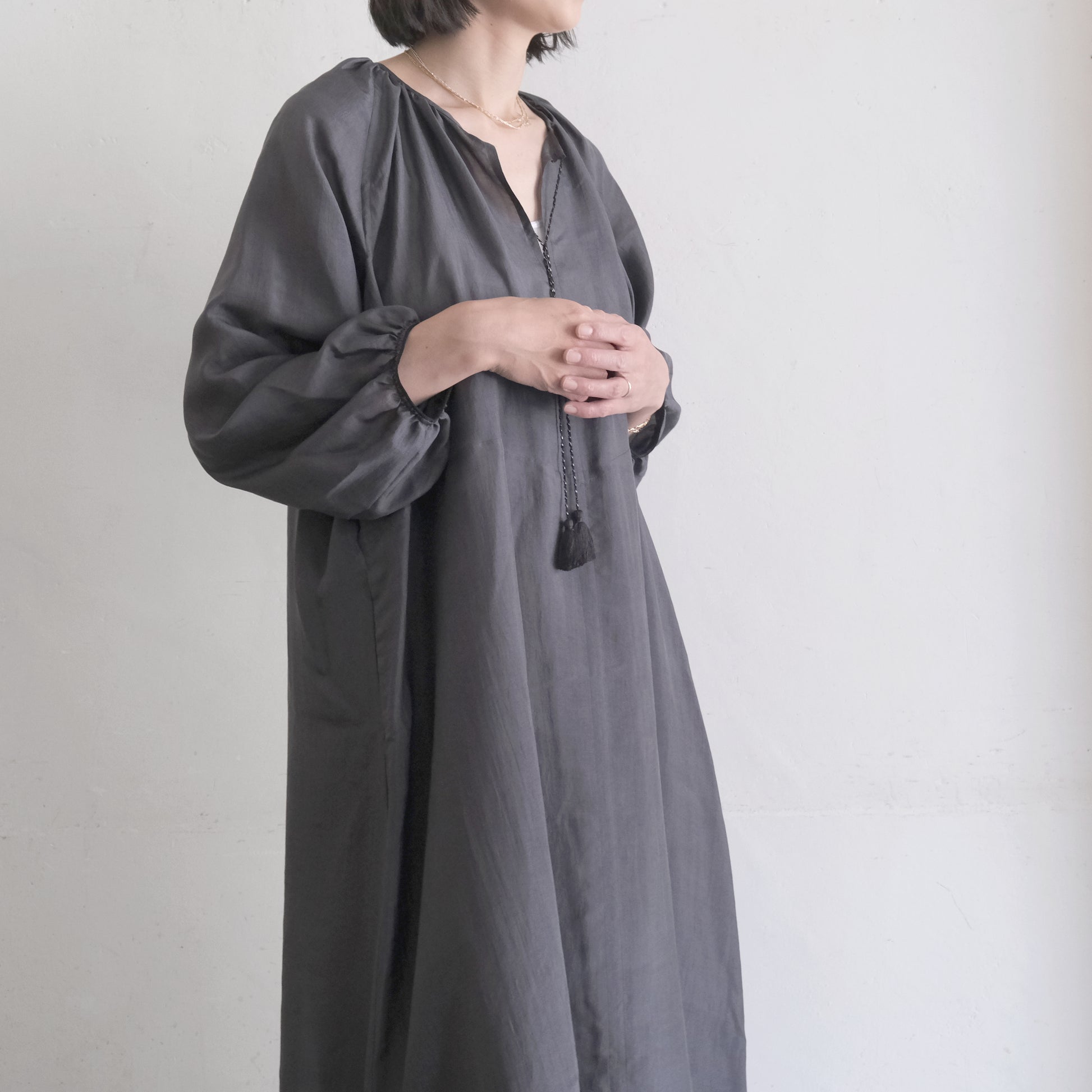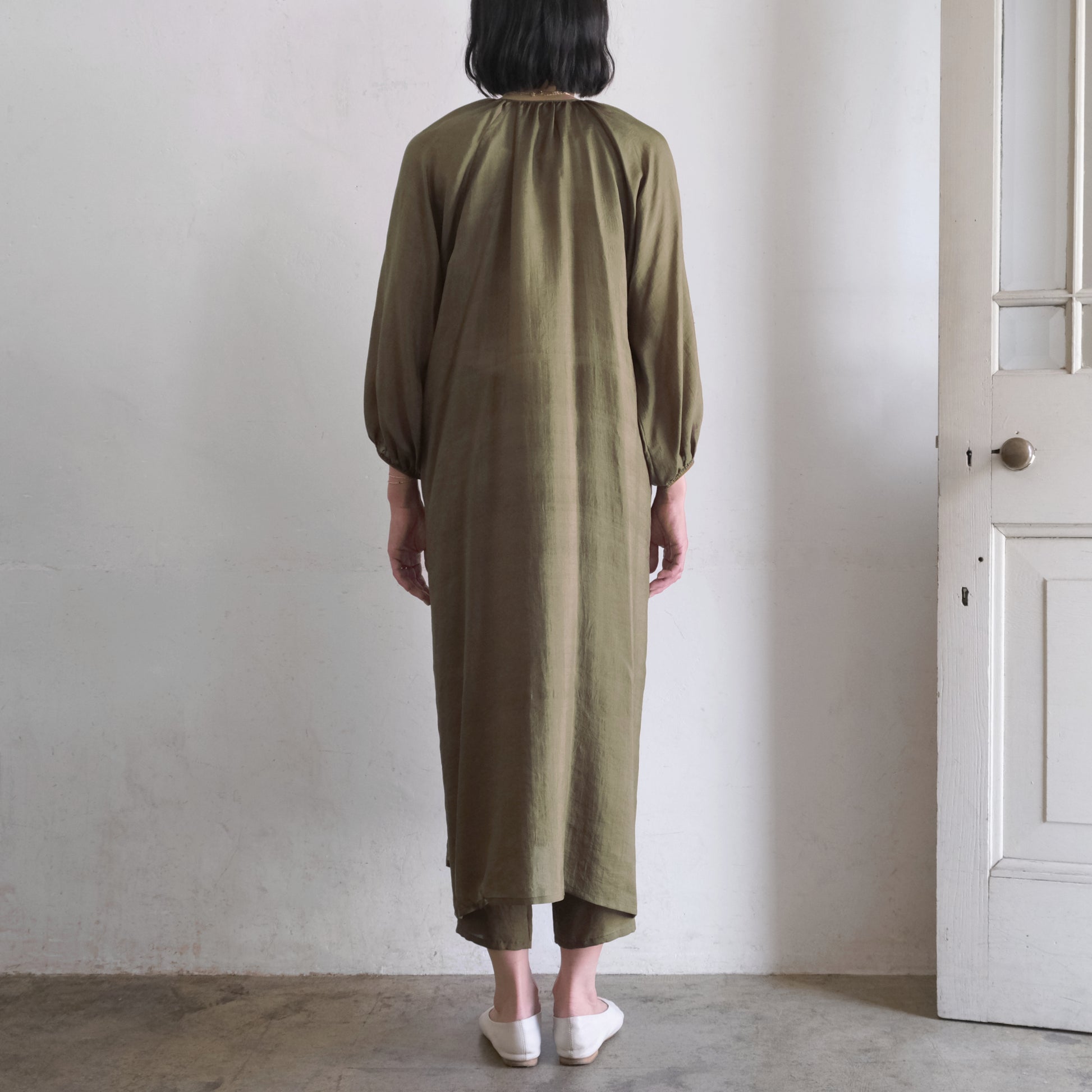 女性らしさを引き出す、ふんわりしたシルエットのドレス。動作に合わせて空気を含みさらりと揺れる余韻もきれいです。一枚で主役になるカフタンドレスは、流行に左右されない定番的な存在です。