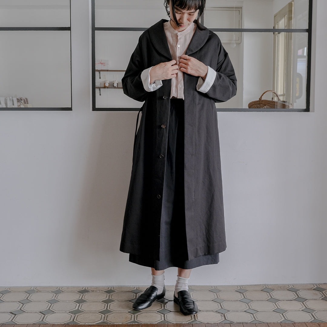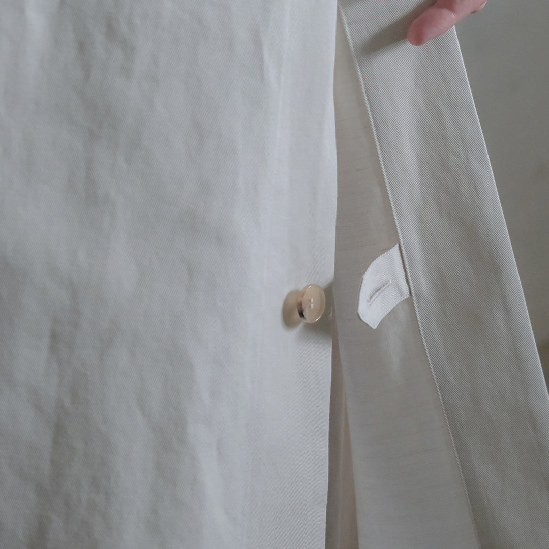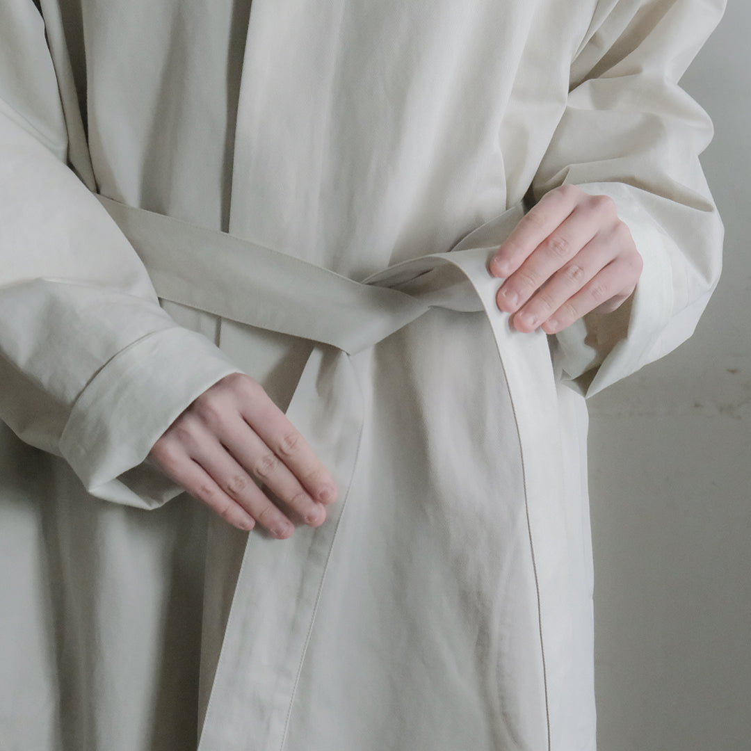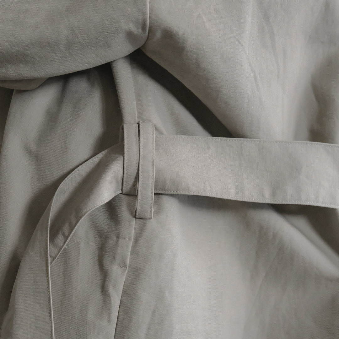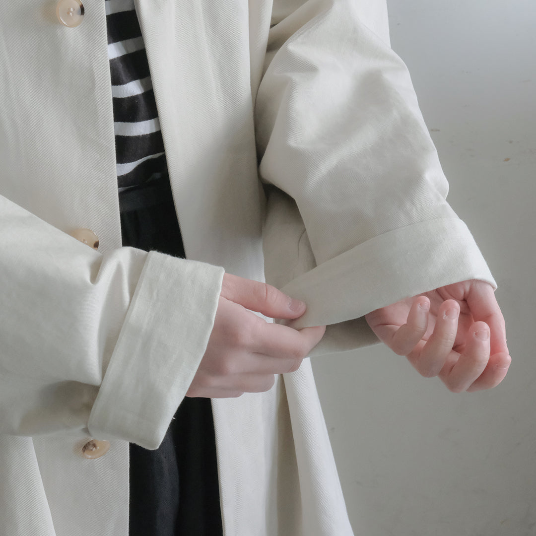 コットンの張り感とリネンの通気性により、コートとしてのきちんと感と心地よさが両立。またコットンリネンの素材感は、夏から秋、冬から春といった季節の変わり目にも重宝します。
