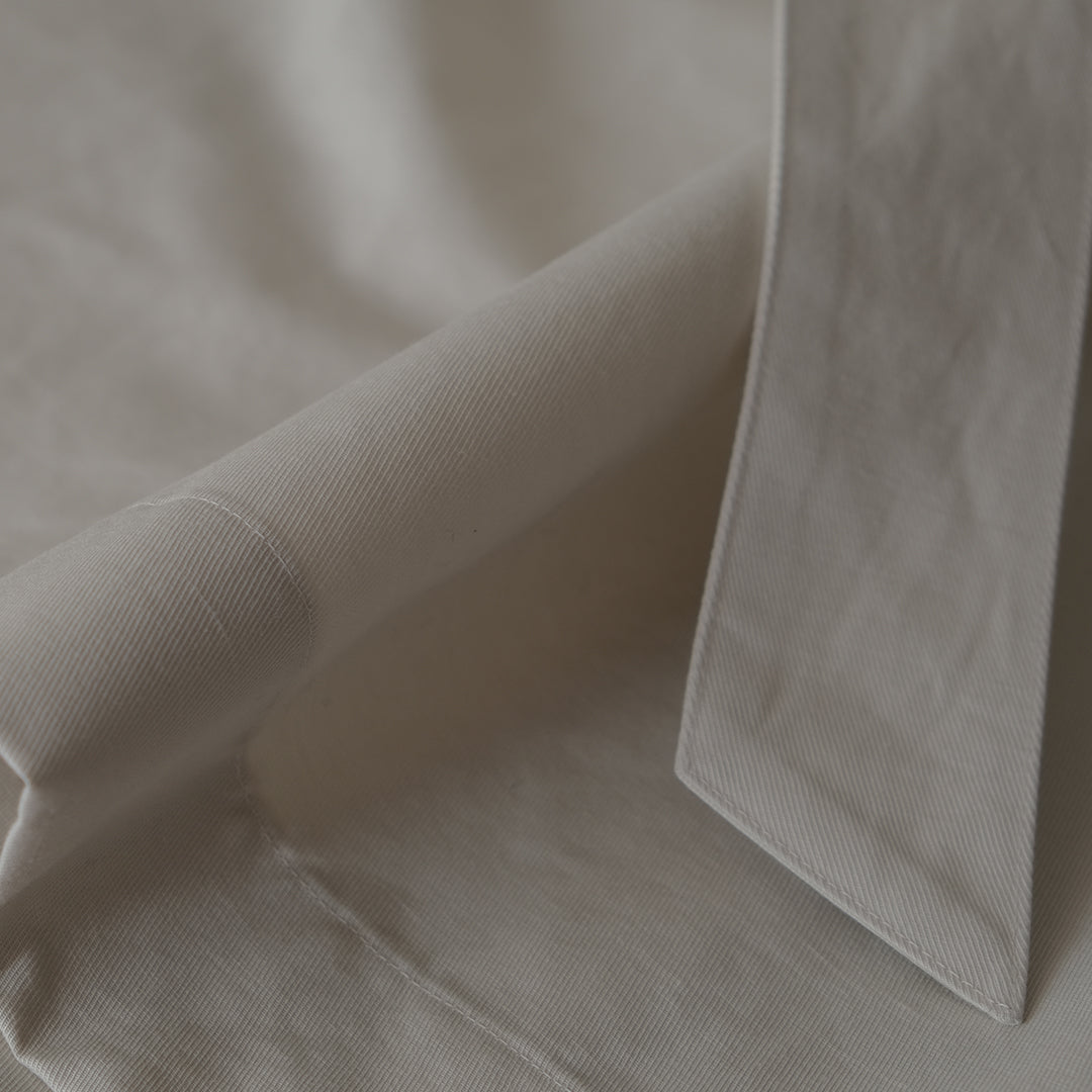 袖口の見返しにはホワイトのコットンリネンを使用し、ゆったりとした袖口のボリュームをキープ。ロールアップも楽しめるつくりです。