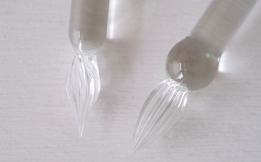 日本の耐熱ガラスメーカー「ハリオサイエンス」が手がけるガラスペン。ほどよい太さの軸のコンパクトなフォルムは手の大きさに関わらずフィットし、太すぎず、細すぎず安定感のある書き心地です。好みの握り具合で2種類からお選びください。