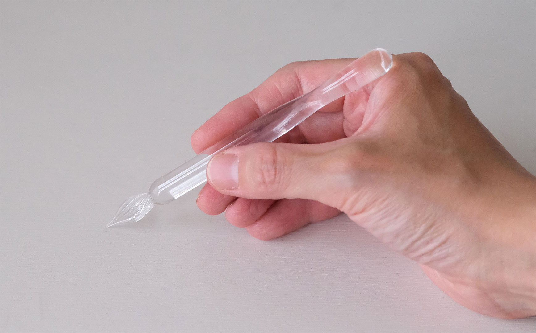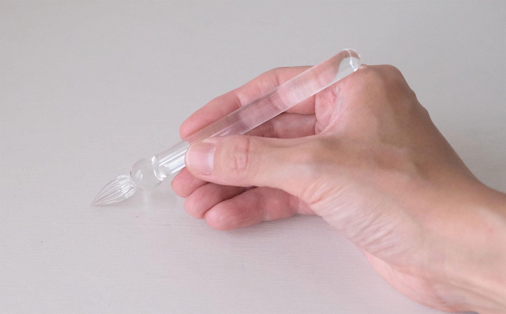 「軸がストレートなところが一番持ちやすく、普段使っている筆記具の感覚に近い気がします。ガラスペンを持っているという緊張感がなく、気軽に文字が書けそうです」