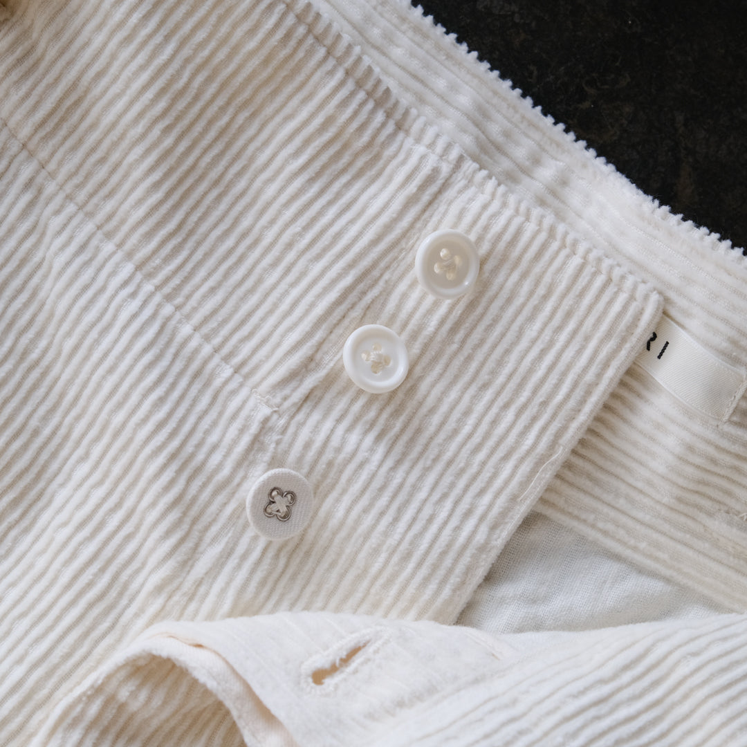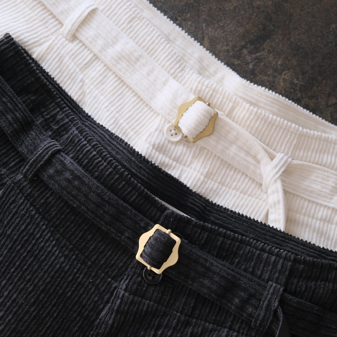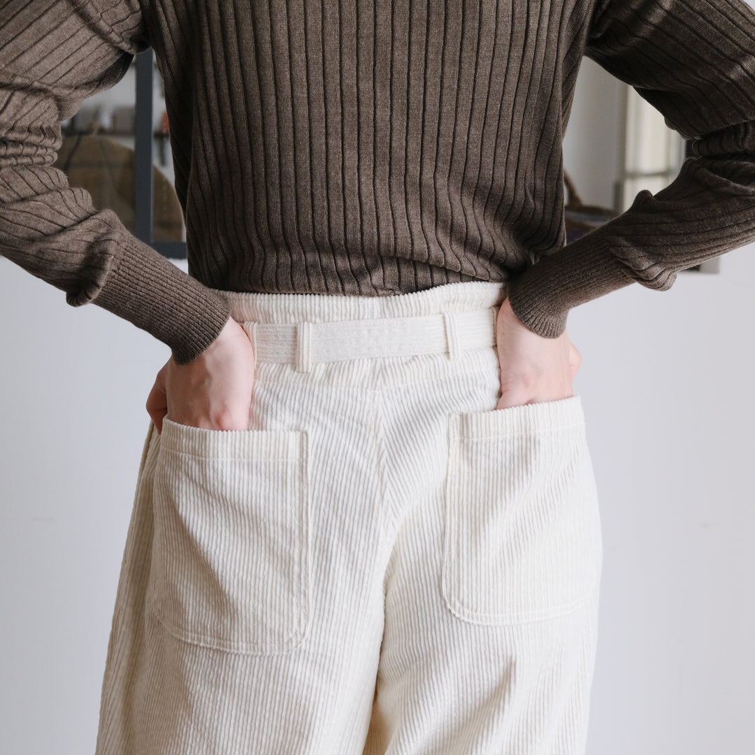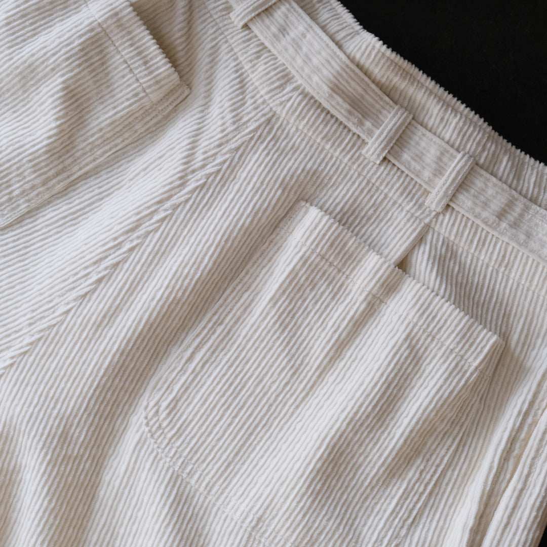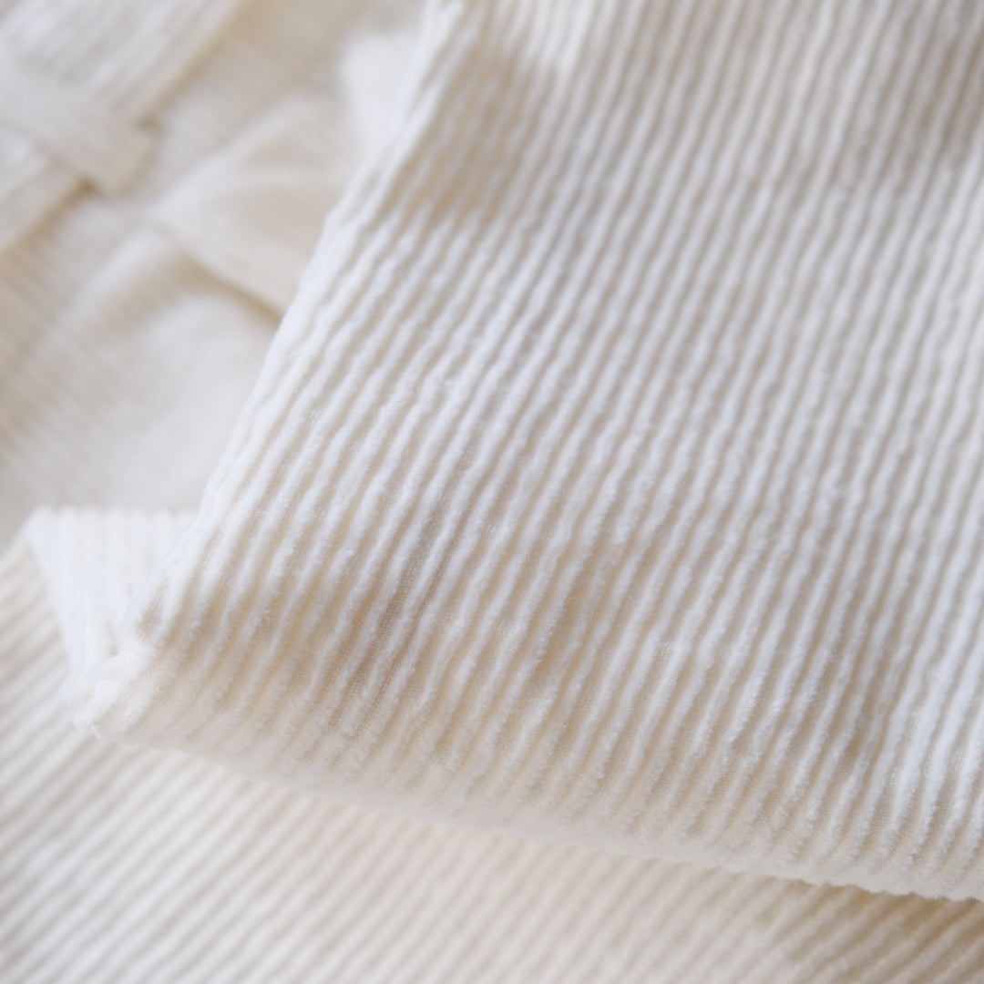 やわらかく素朴なコーディロイ生地は畝のある表面の凸凹によって縦のラインを醸し出し、生地の光沢が上品に映し出されます。