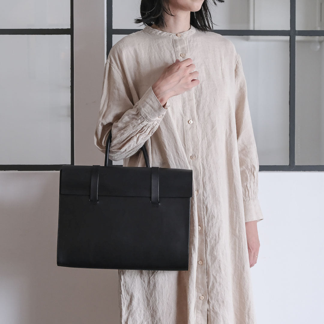 このSCORE BAGは、かつてイギリスで音楽学校の学生が楽譜を運ぶのに使われていたバッグからインスピレーションを得てつくられています。凛とした印象のバッグは性別を問わず使っていただけます。