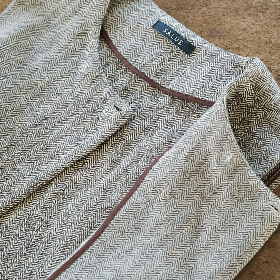 生地はノーカラージャケットなどに使用している、SALUÉオリジナルのヘリンボーン生地。